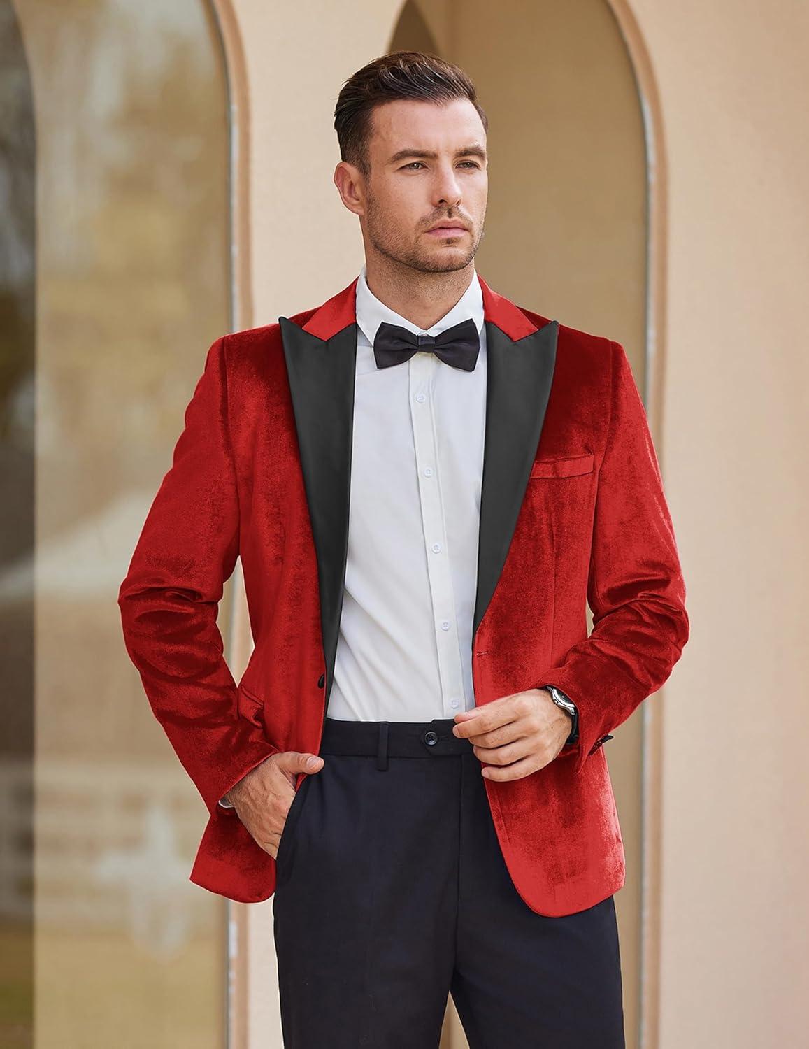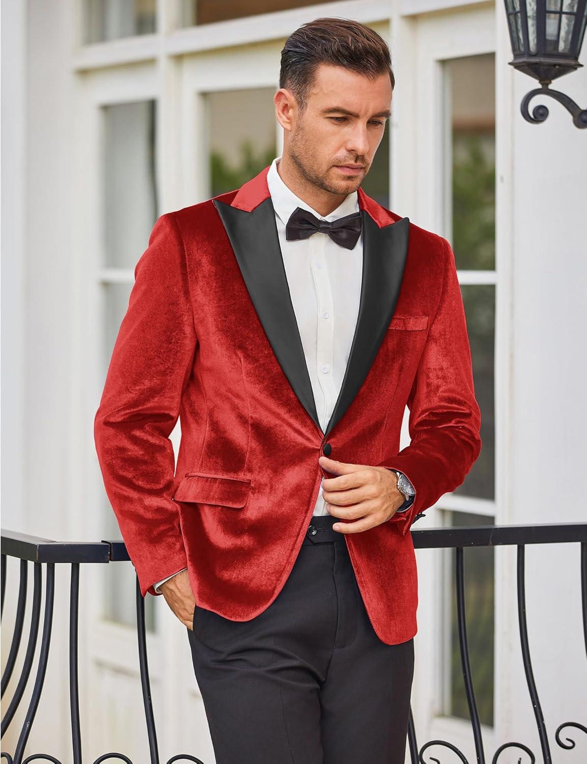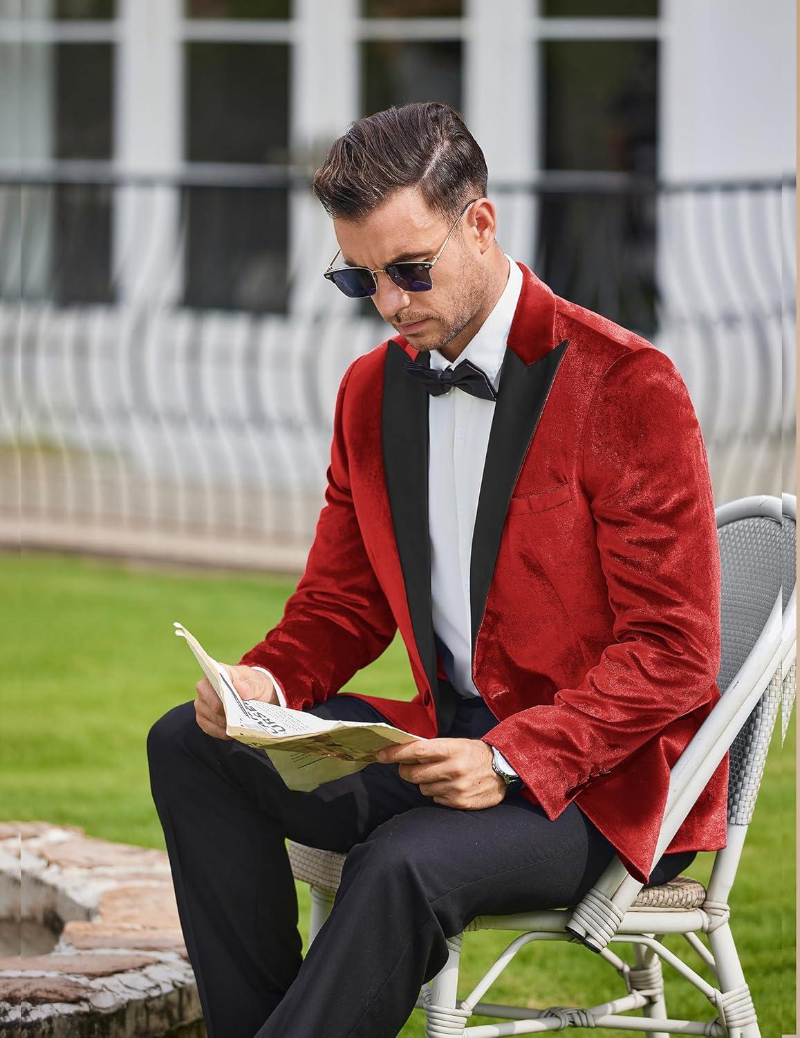 COOFANDY Mens Tuxedo Jacket Slim Fit Velvet Blazer One Button Suit Jacket for Wedding Prom Party(Red)