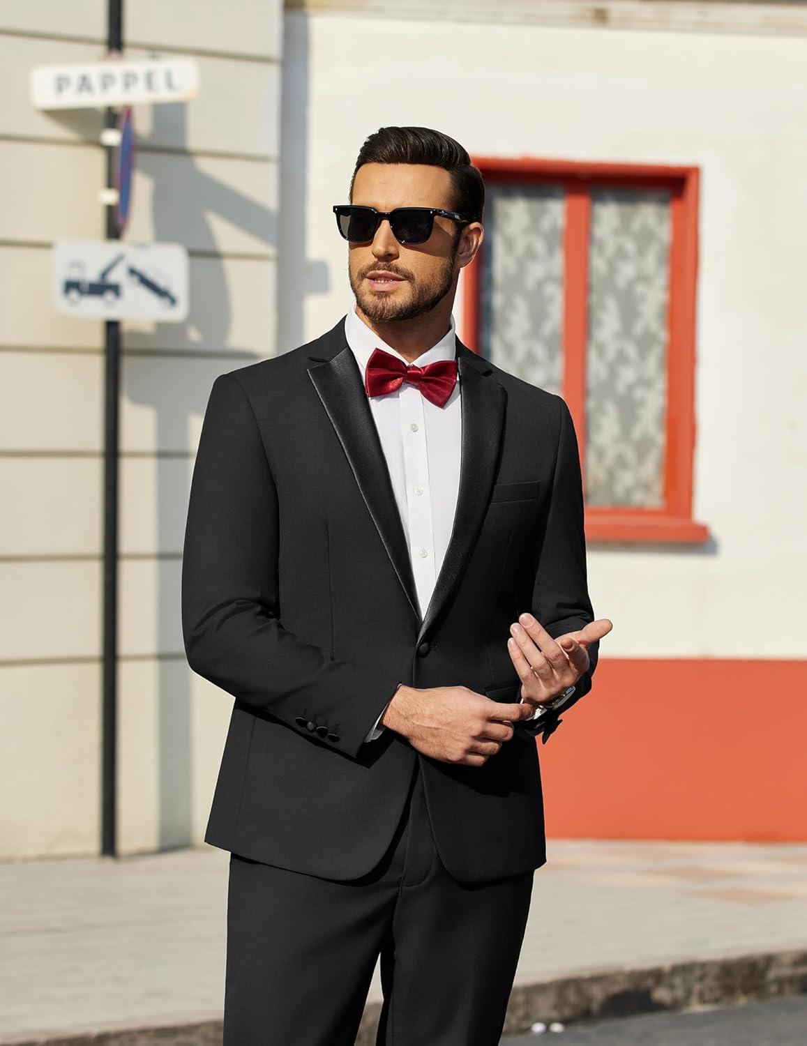 COOFANDY Mens Tuxedo Suit Set Slim Fit 2 Piece One Button Blazer Jacket Pants for Wedding,Dinner,Prom(Black)