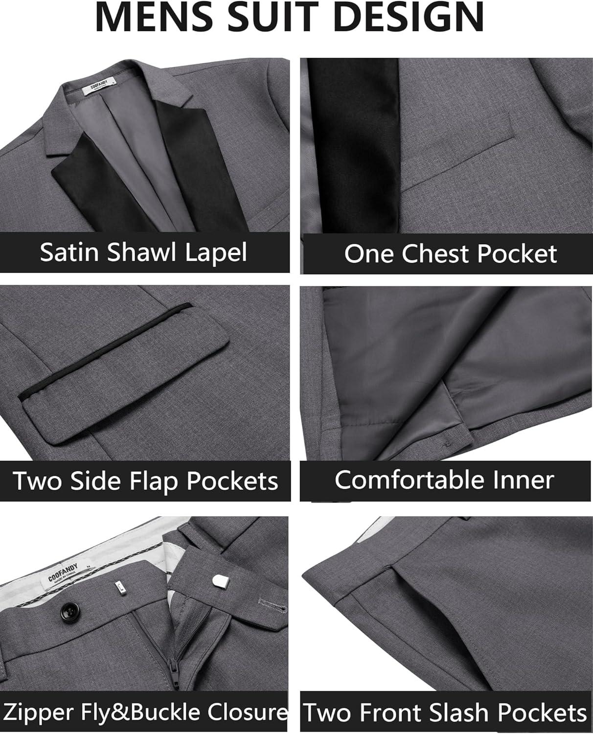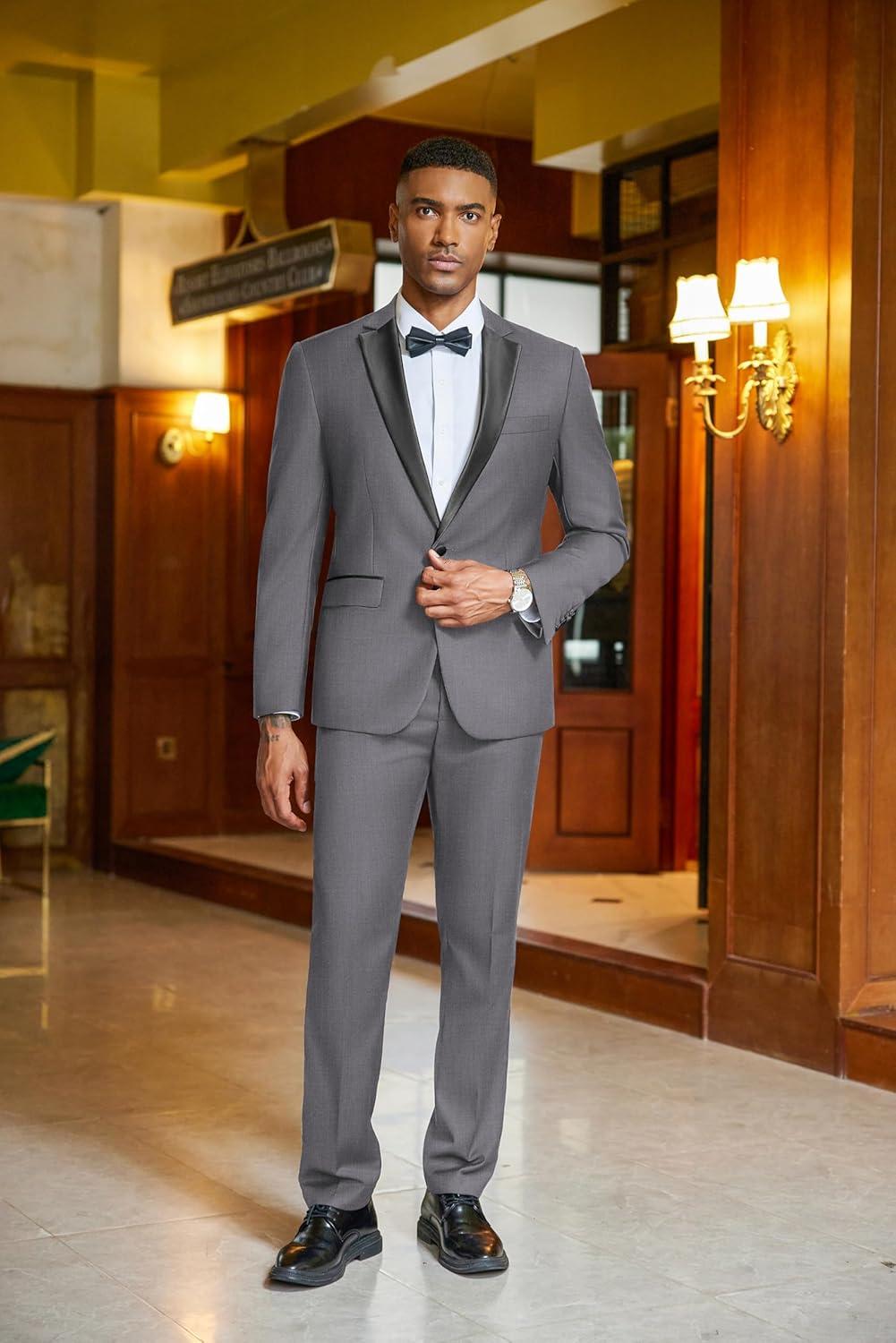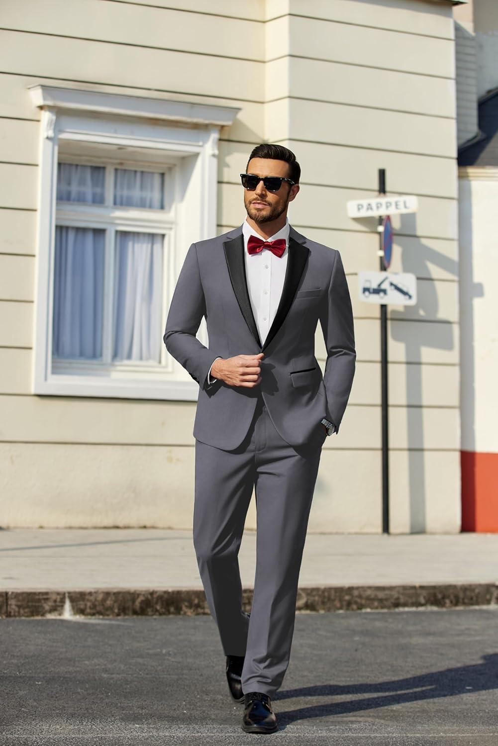 COOFANDY Mens Tuxedo Suit Set Slim Fit 2 Piece One Button Christmas Blazer Jacket Pants for Wedding,Dinner,Prom(Dark Gray)
