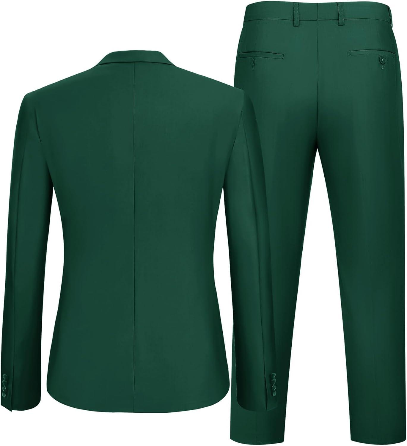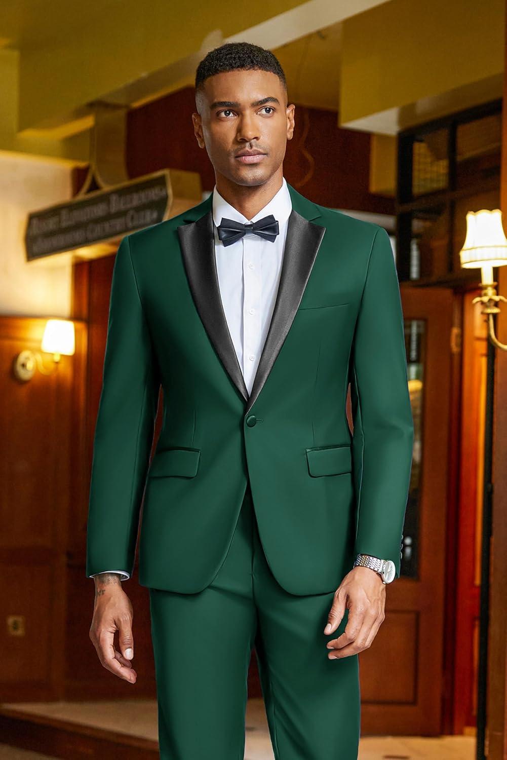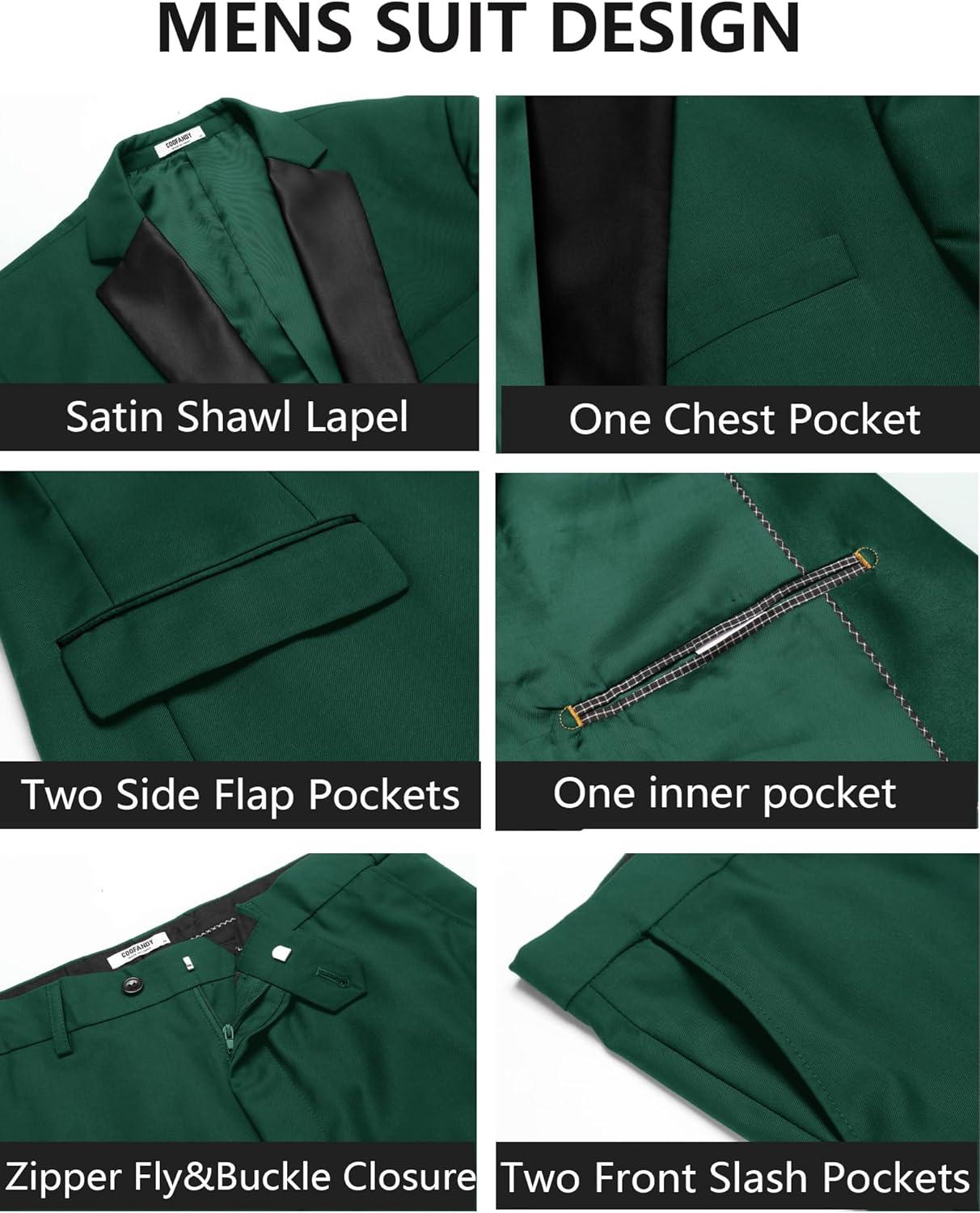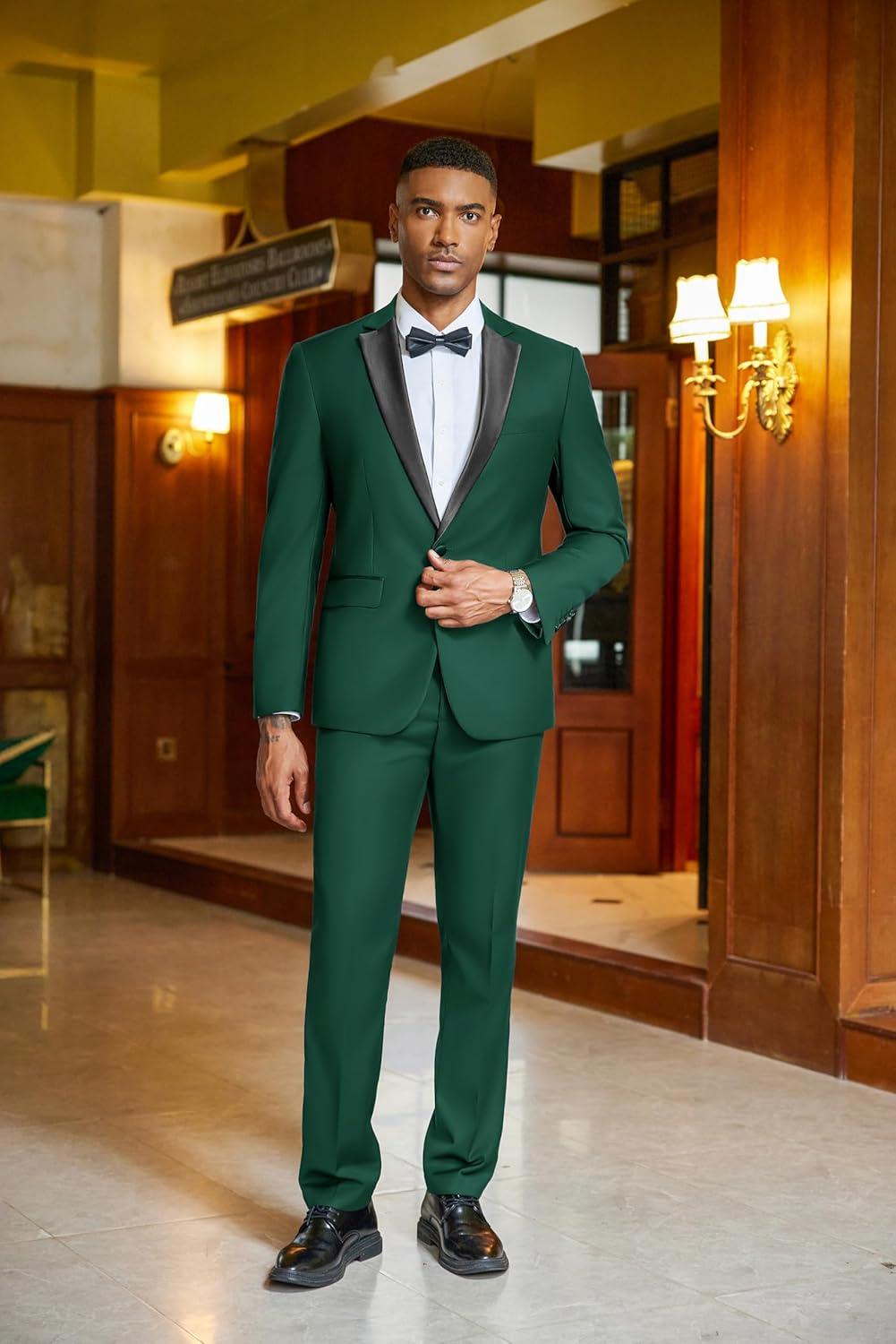 COOFANDY Mens Tuxedo Suit Set Slim Fit 2 Piece One Button Christmas Blazer Jacket Pants for Wedding,Dinner,Prom(Green)