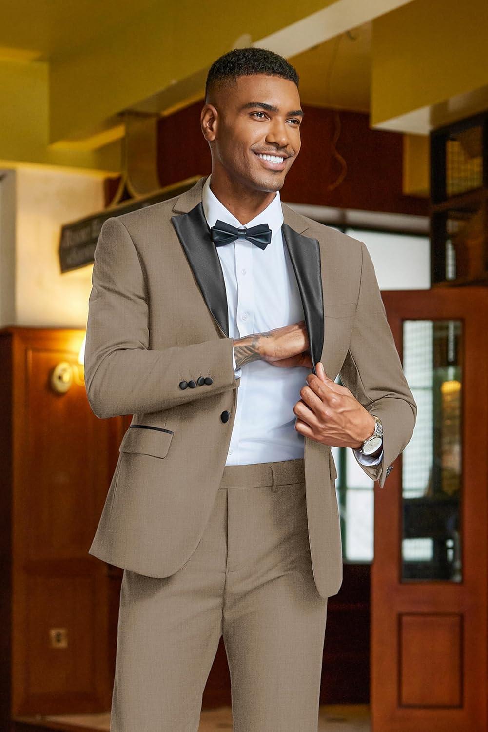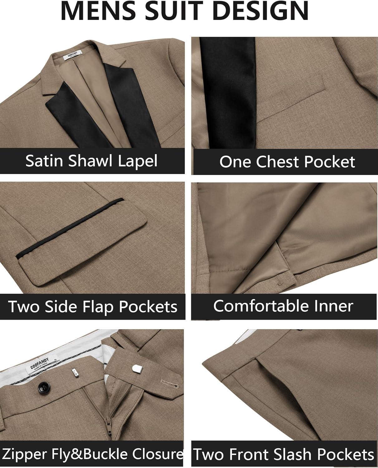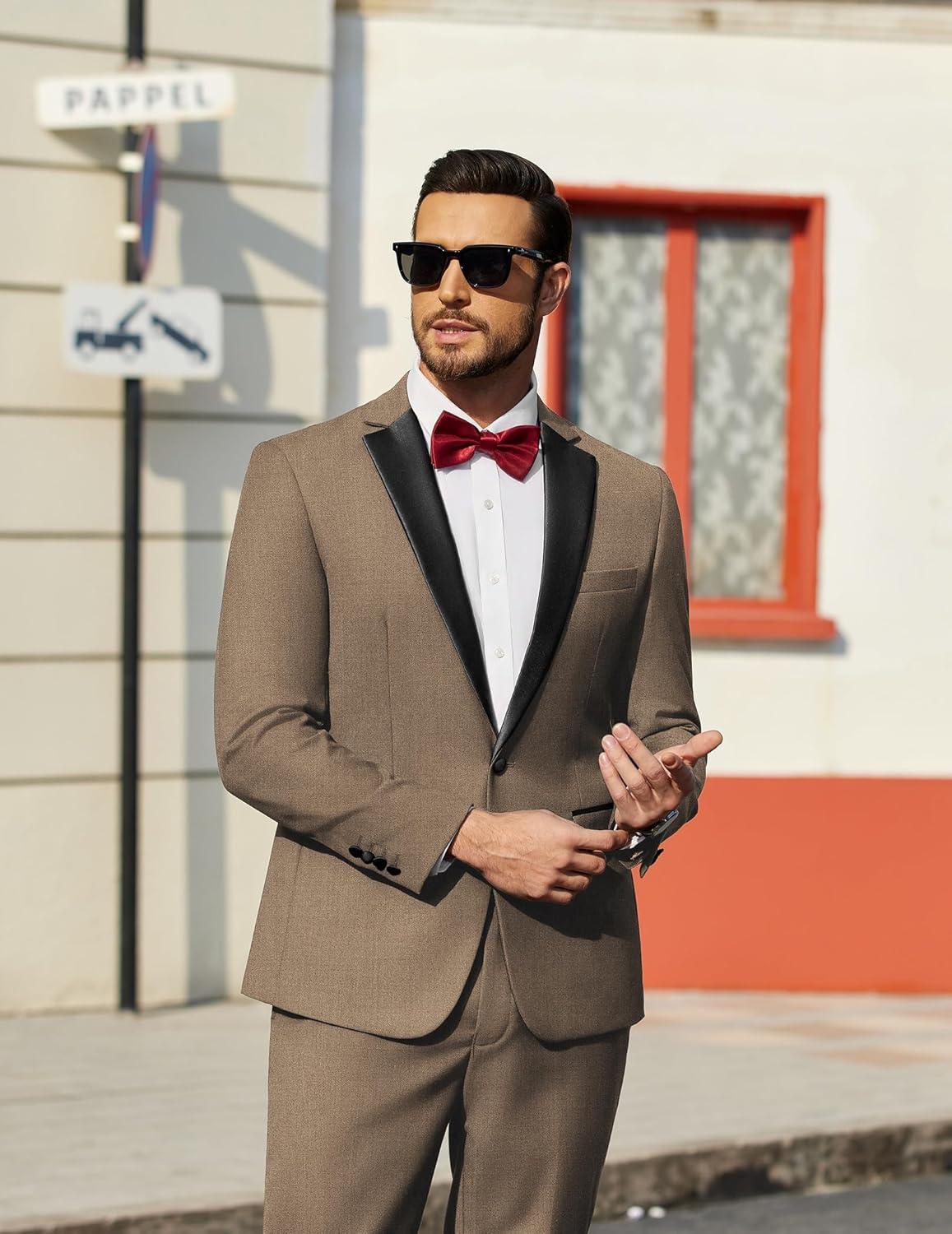 COOFANDY Mens Tuxedo Suit Set Slim Fit 2 Piece One Button Christmas Blazer Jacket Pants for Wedding,Dinner,Prom(Khaki)