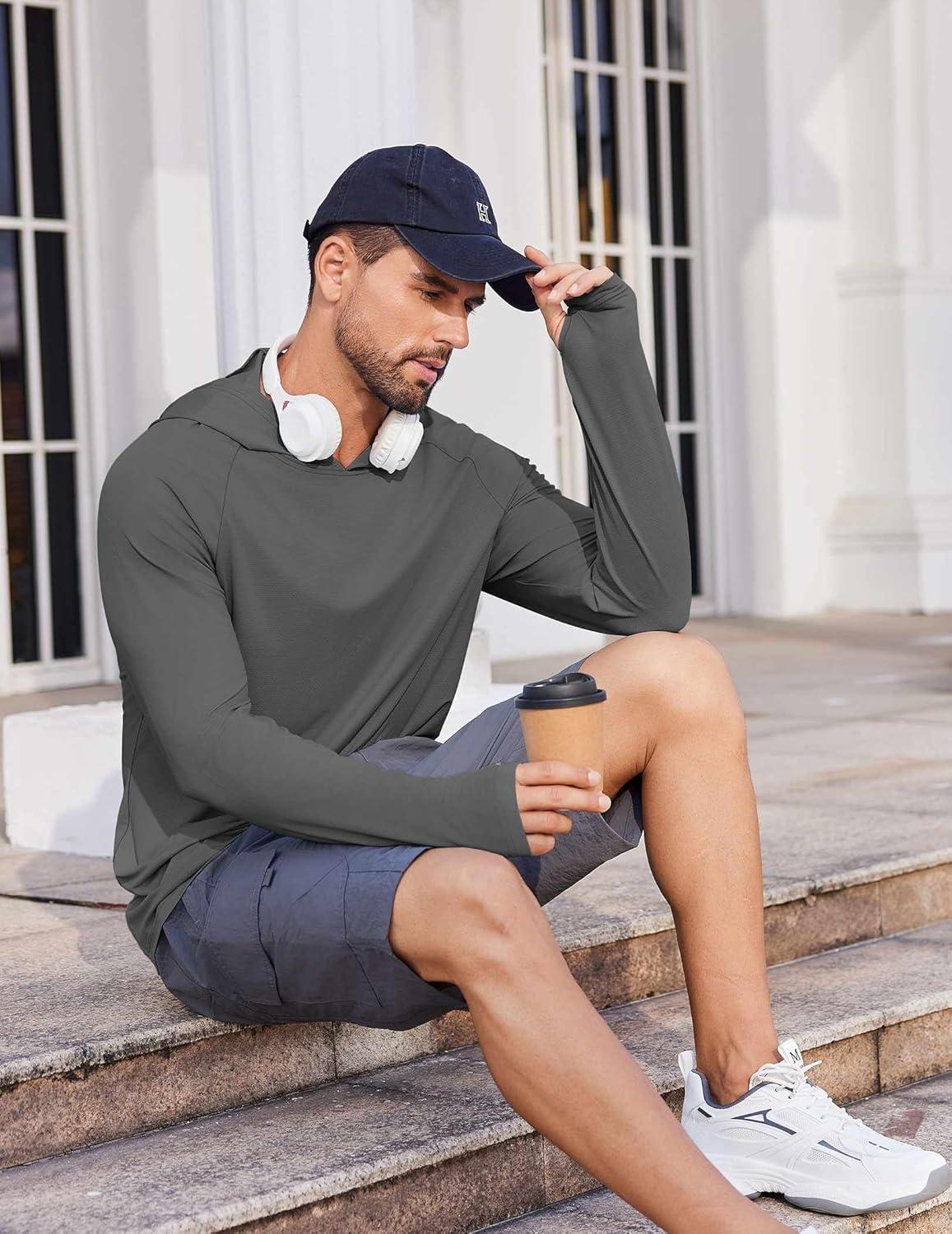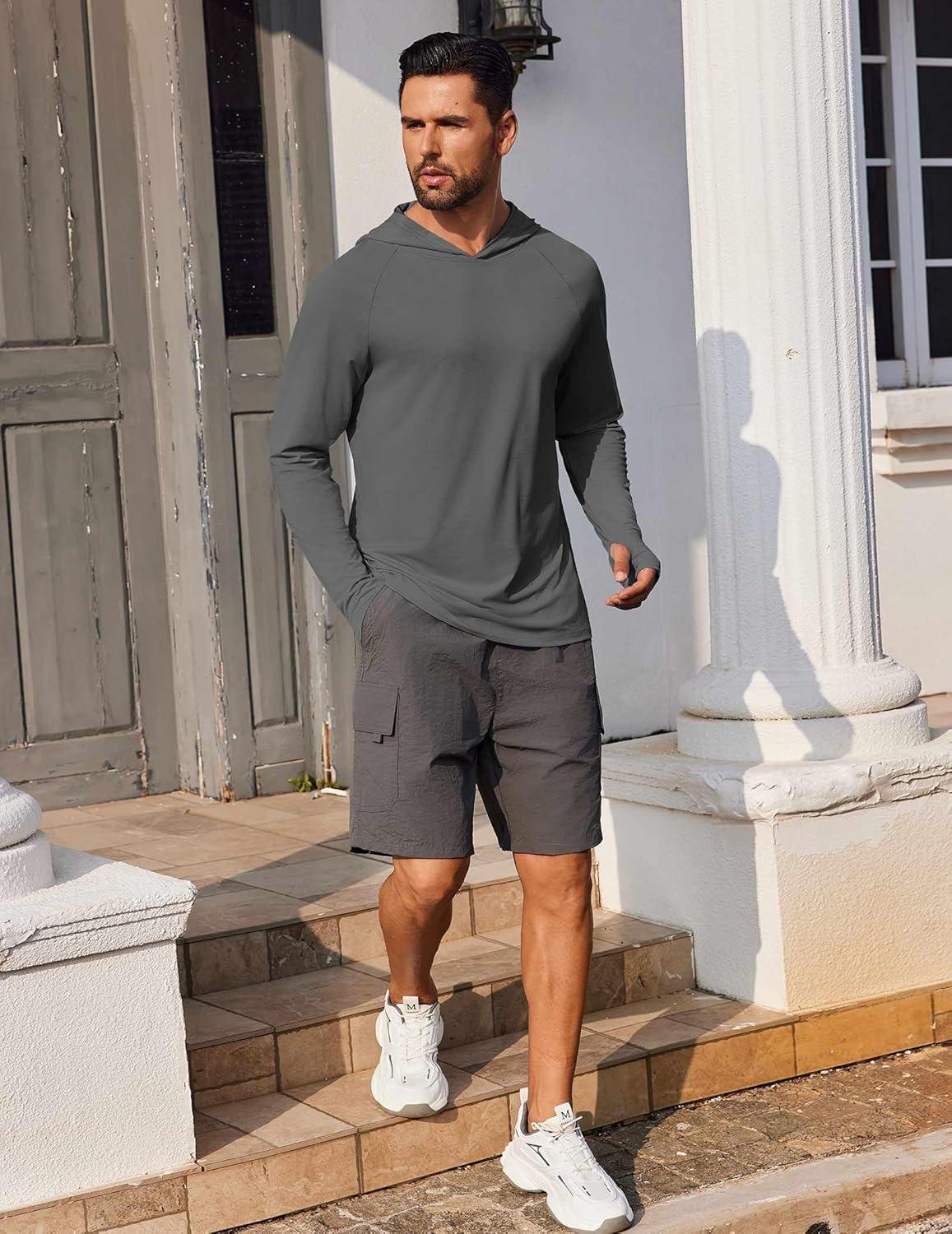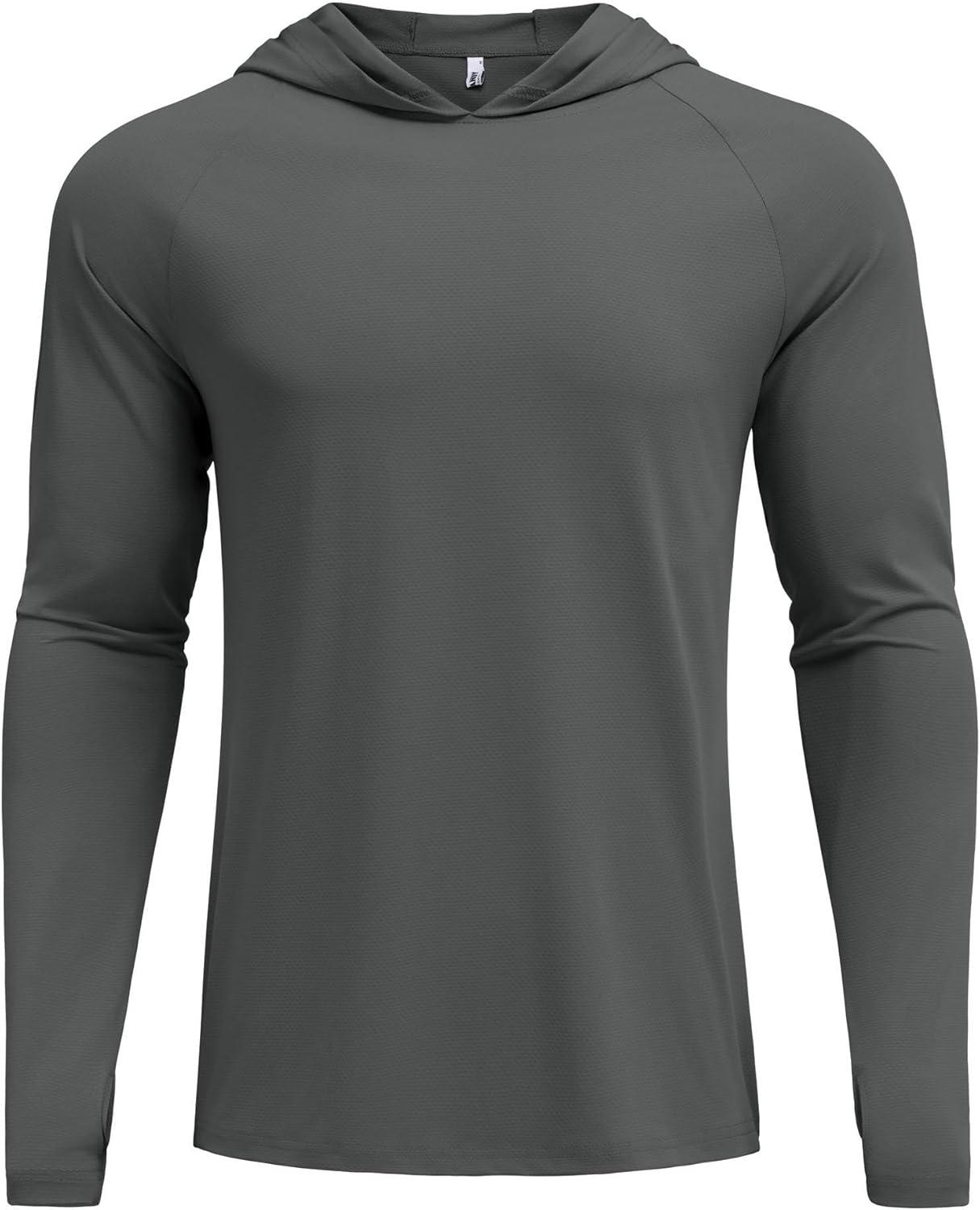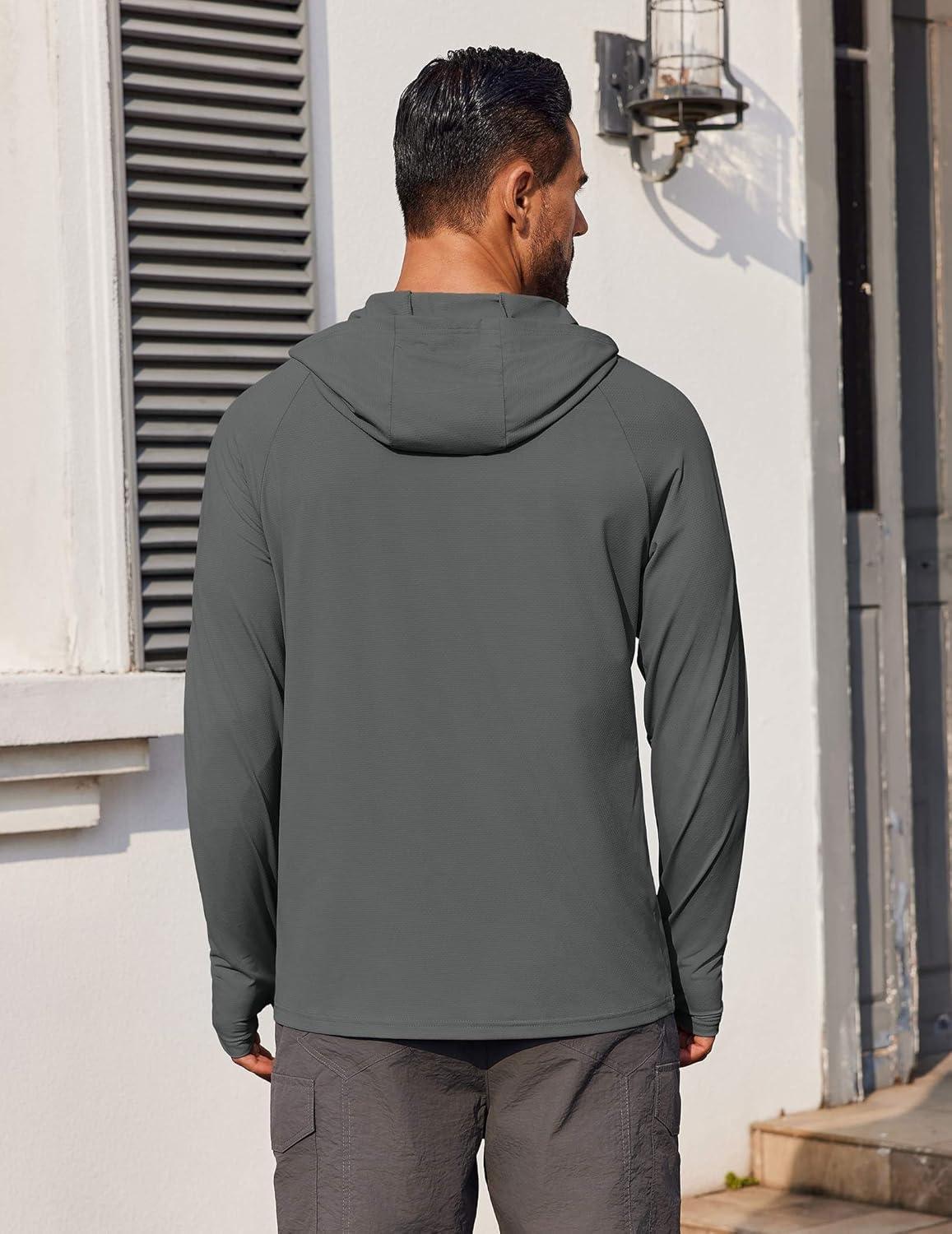 COOFANDY Mens UPF 50+ Hoodie Shirts Long Sleeve Rash Guard Sun Protection Fishing Shirts Lightweight Quick Dry Hoodies(Gray)