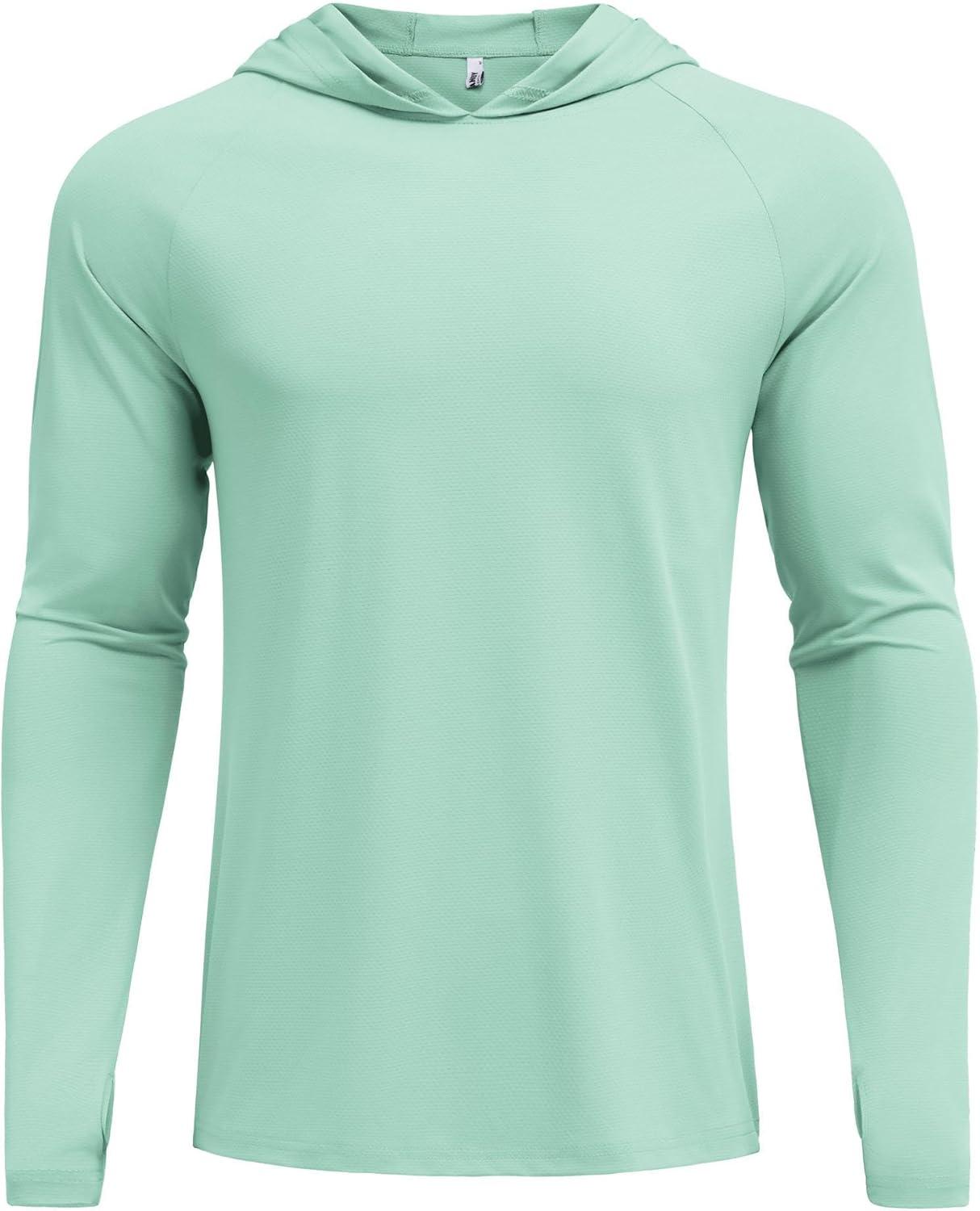 COOFANDY Mens UPF 50+ Hoodie Shirts Long Sleeve Rash Guard Sun Protection Fishing Shirts Lightweight Quick Dry Hoodies(Mint Green)