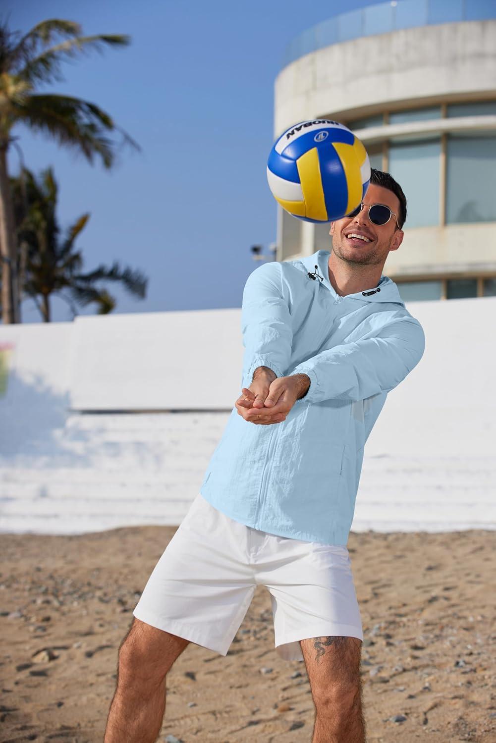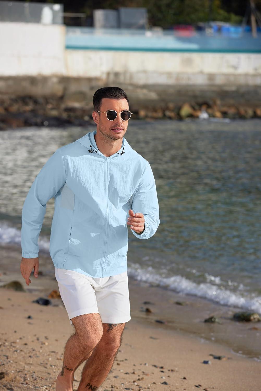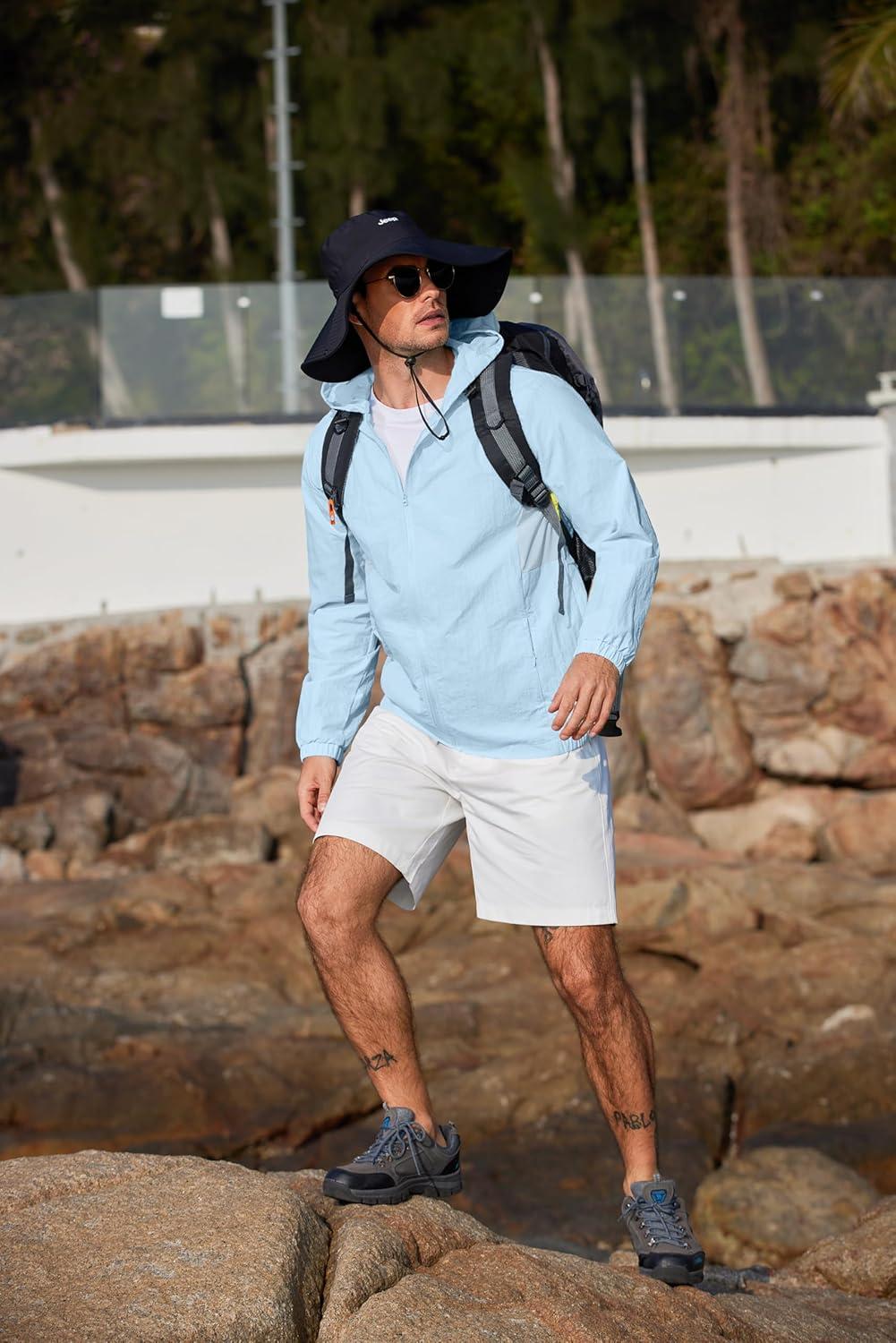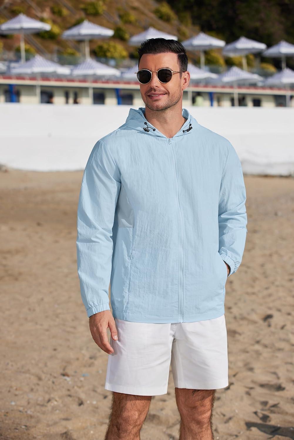 COOFANDY Men's UPF 50+ Sun Protection Hoodie Jacket Full Zip Light Long Sleeve Performance Fishing Shirts Hiking Outdoor(Light Blue)
