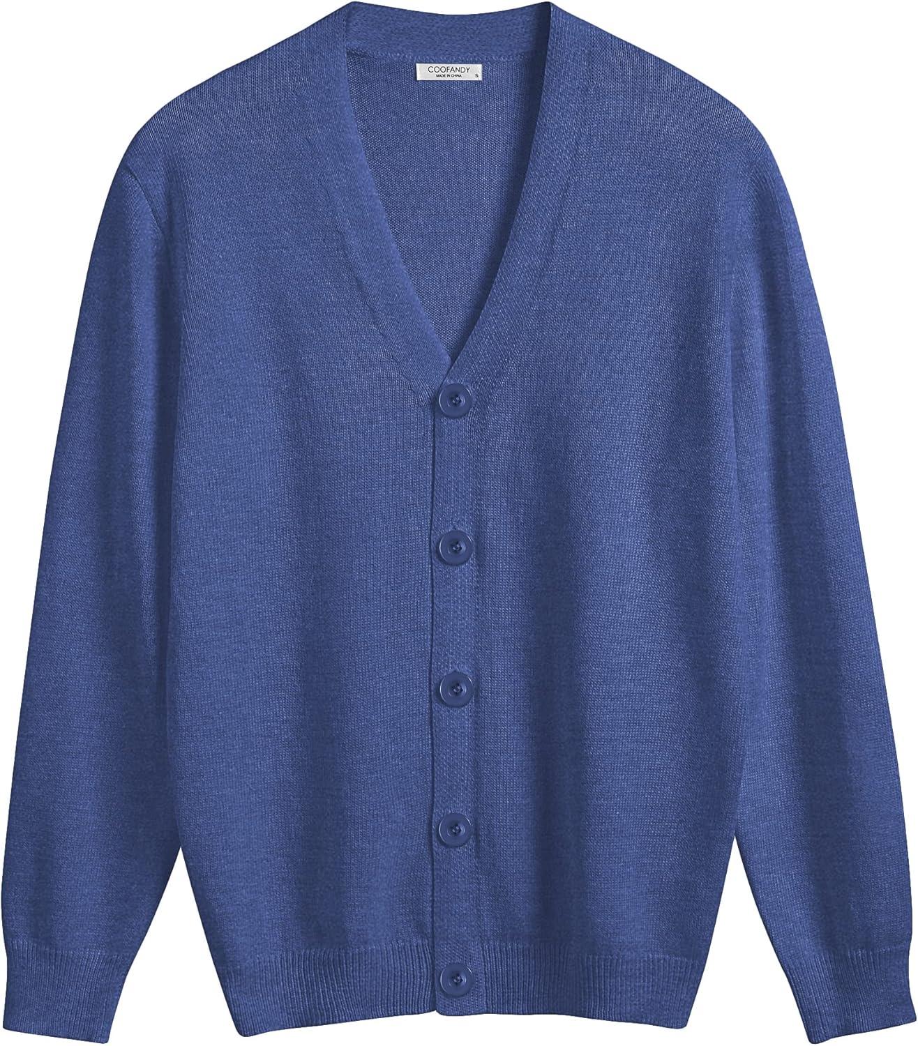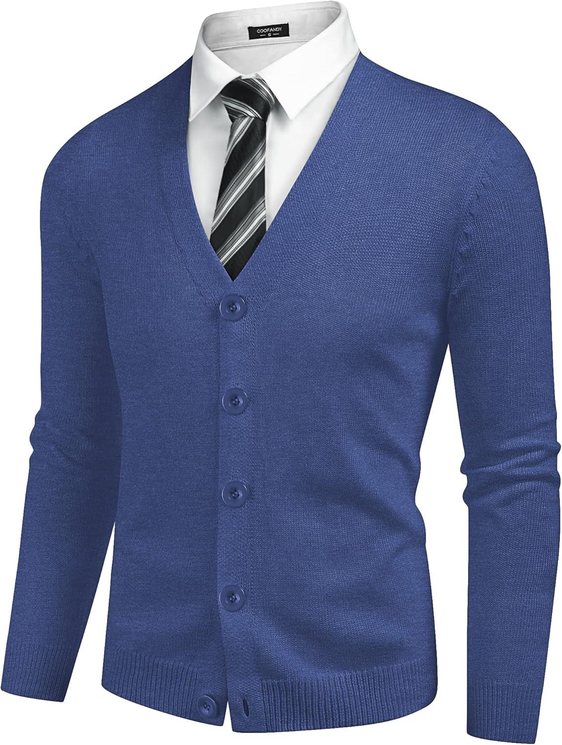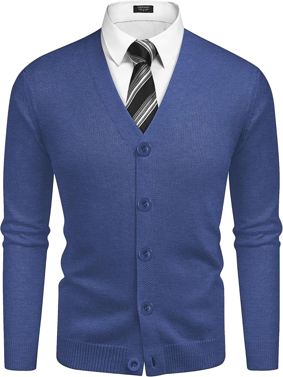 COOFANDY Men's V Neck Cardigan Sweater Casual Lightweight Button Down Knitted Cardigan Sweater(Blue)