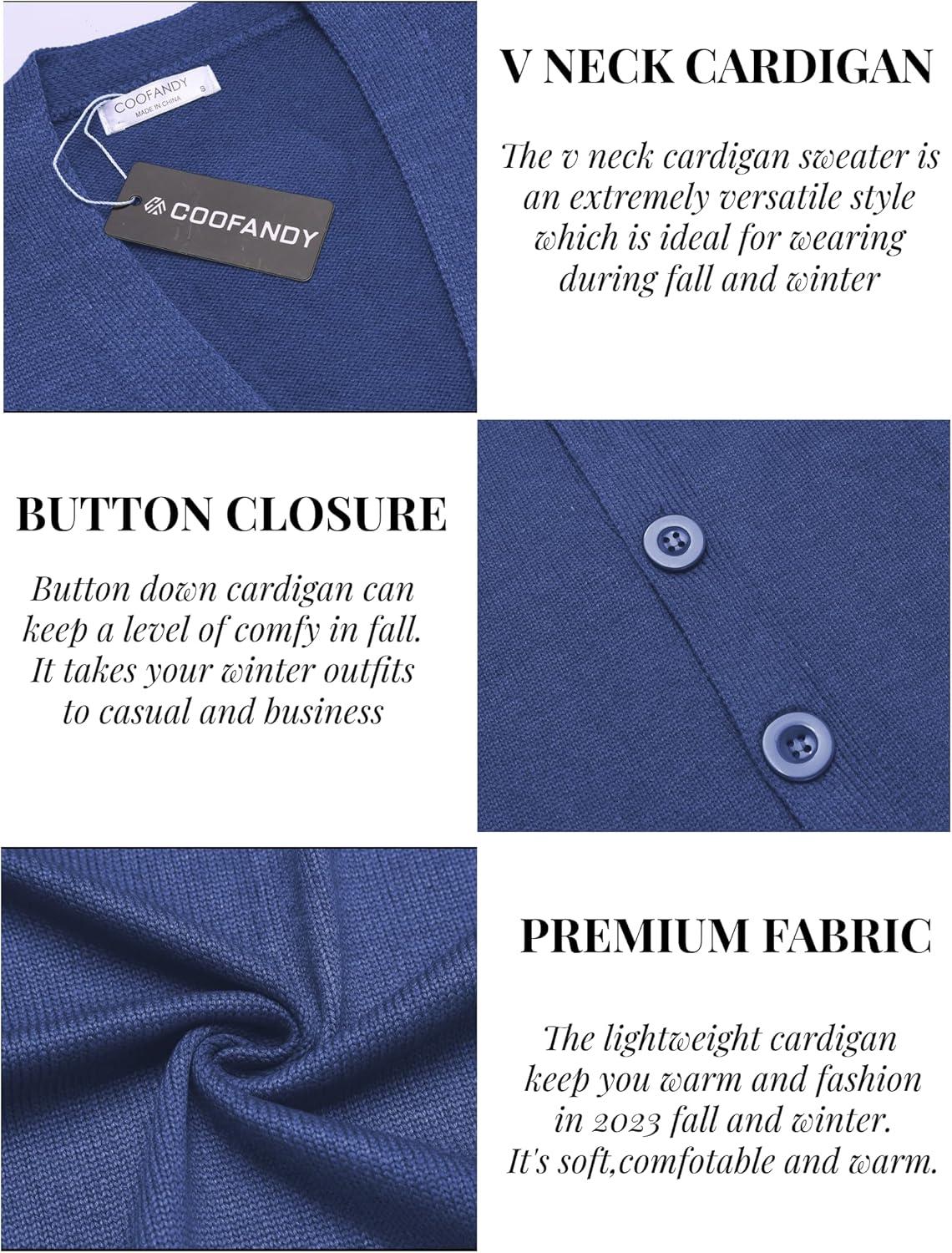 imageCOOFANDY Mens V Neck Cardigan Sweater Casual Lightweight Button Down Knitted Cardigan SweaterBlue