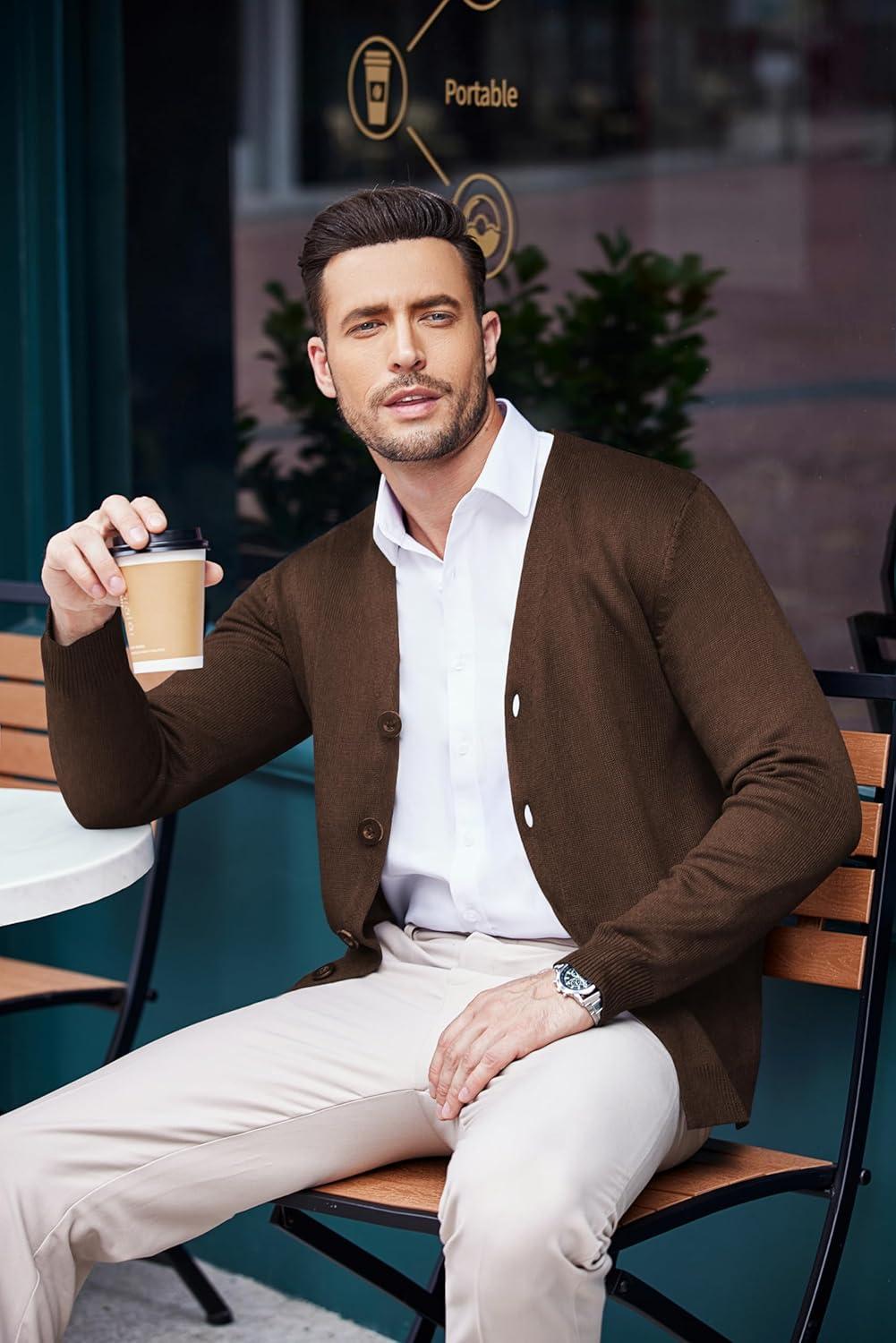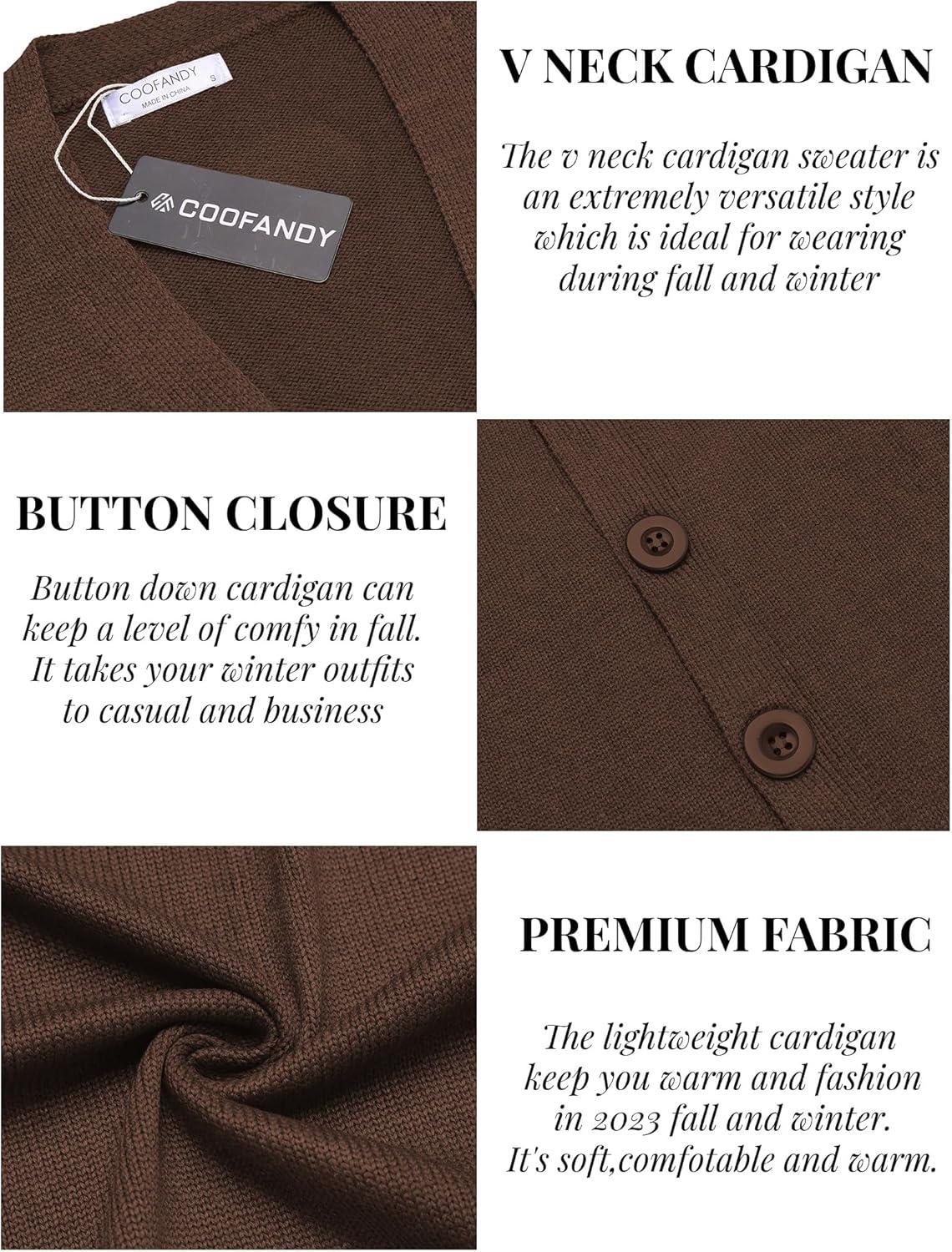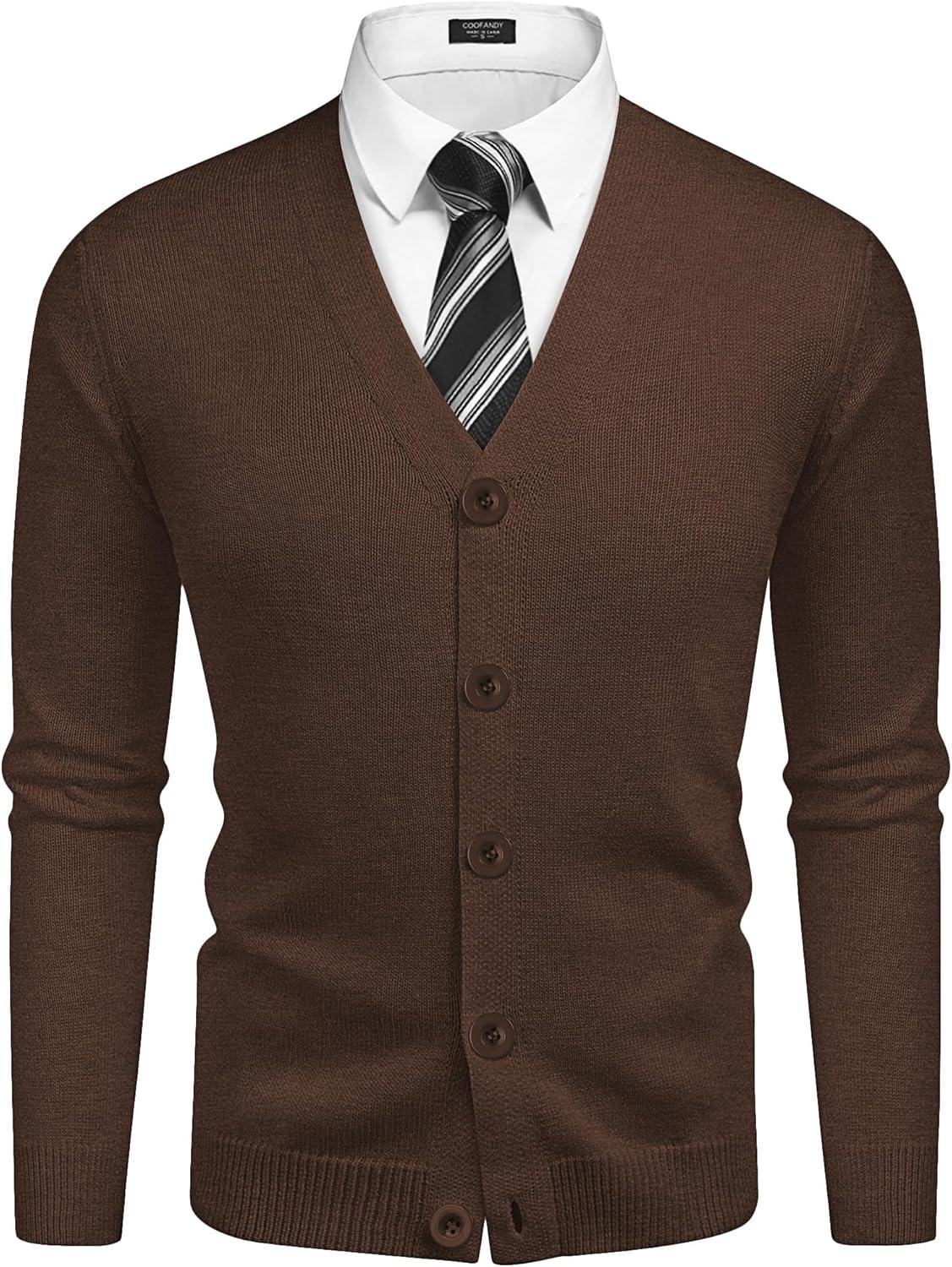 Get your hands on our exclusive COOFANDY Men’s V Neck Cardigan Sweater Casual Lightweight Button Down Knitted Cardigan Sweater(Brown) collection, now at a discounted price.