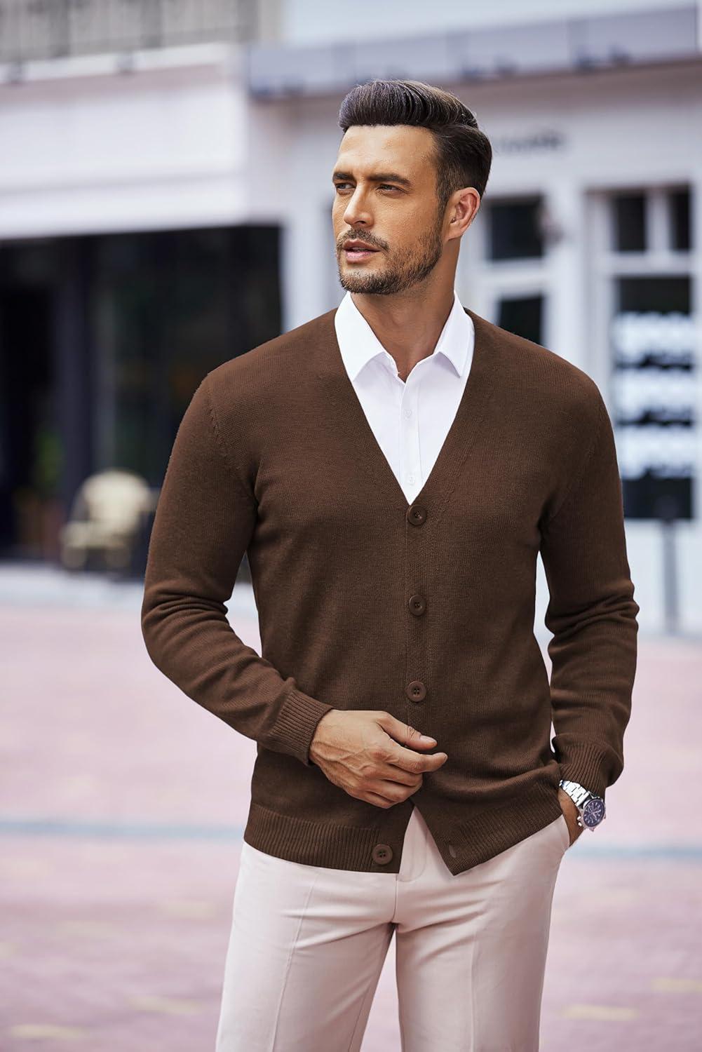 COOFANDY Men’s V Neck Cardigan Sweater Casual Lightweight Button Down Knitted Cardigan Sweater(Brown)
