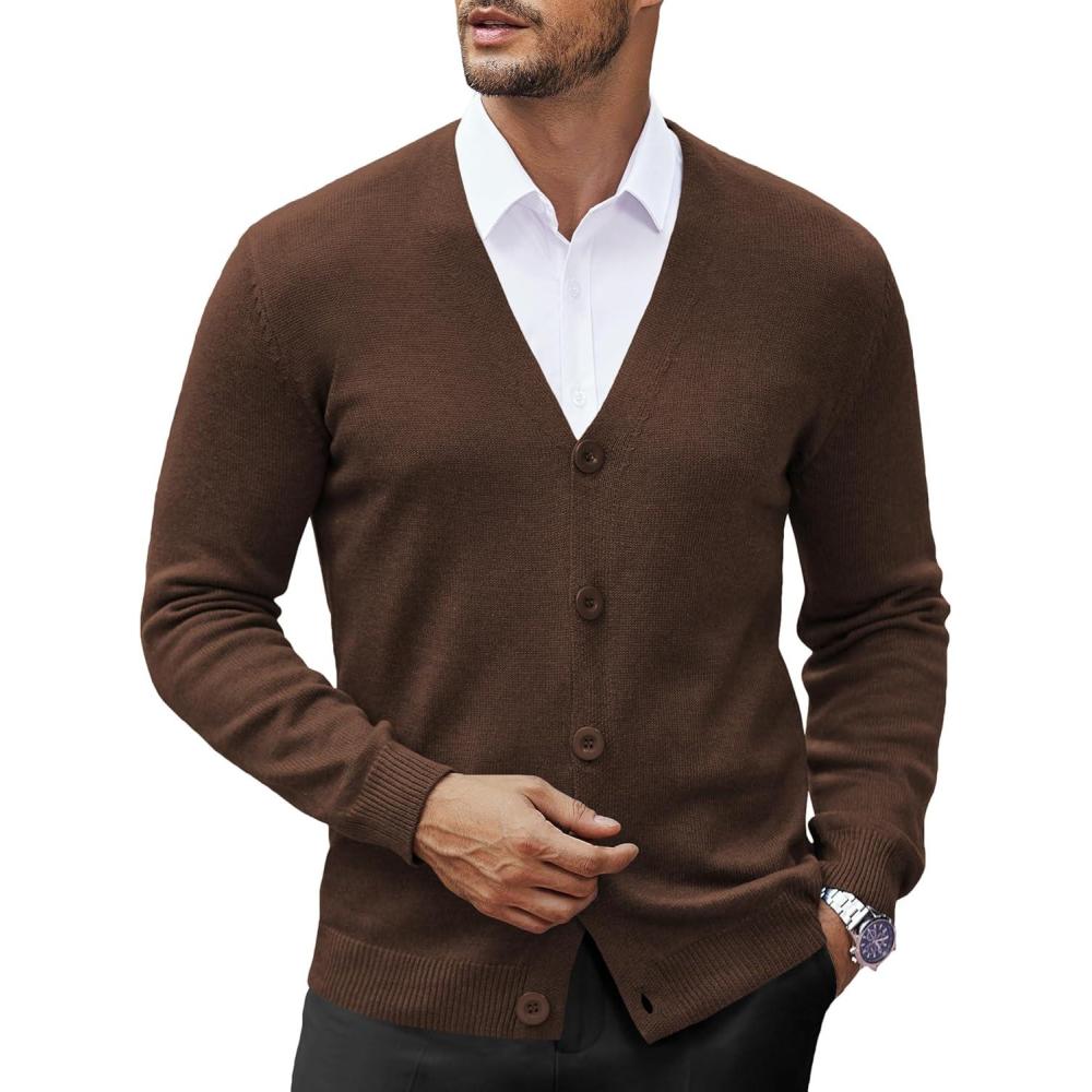 COOFANDY Men's V Neck Cardigan Sweater Casual Lightweight Button Down Knitted Cardigan Sweater(Brown)