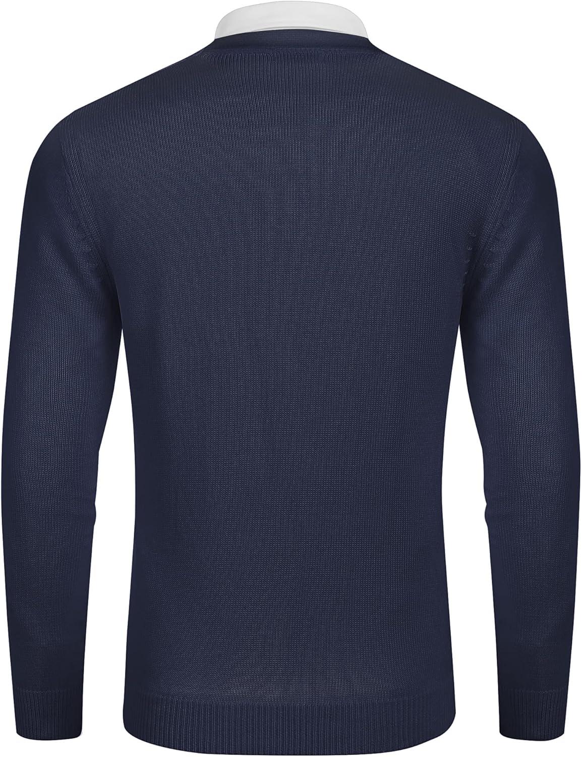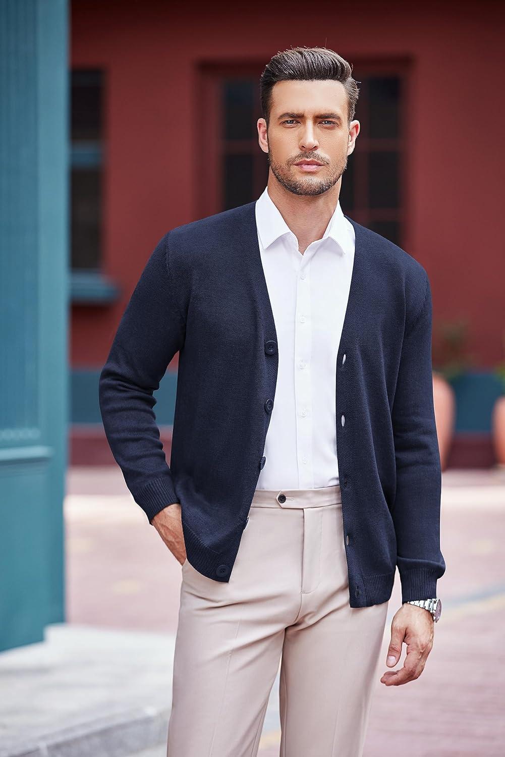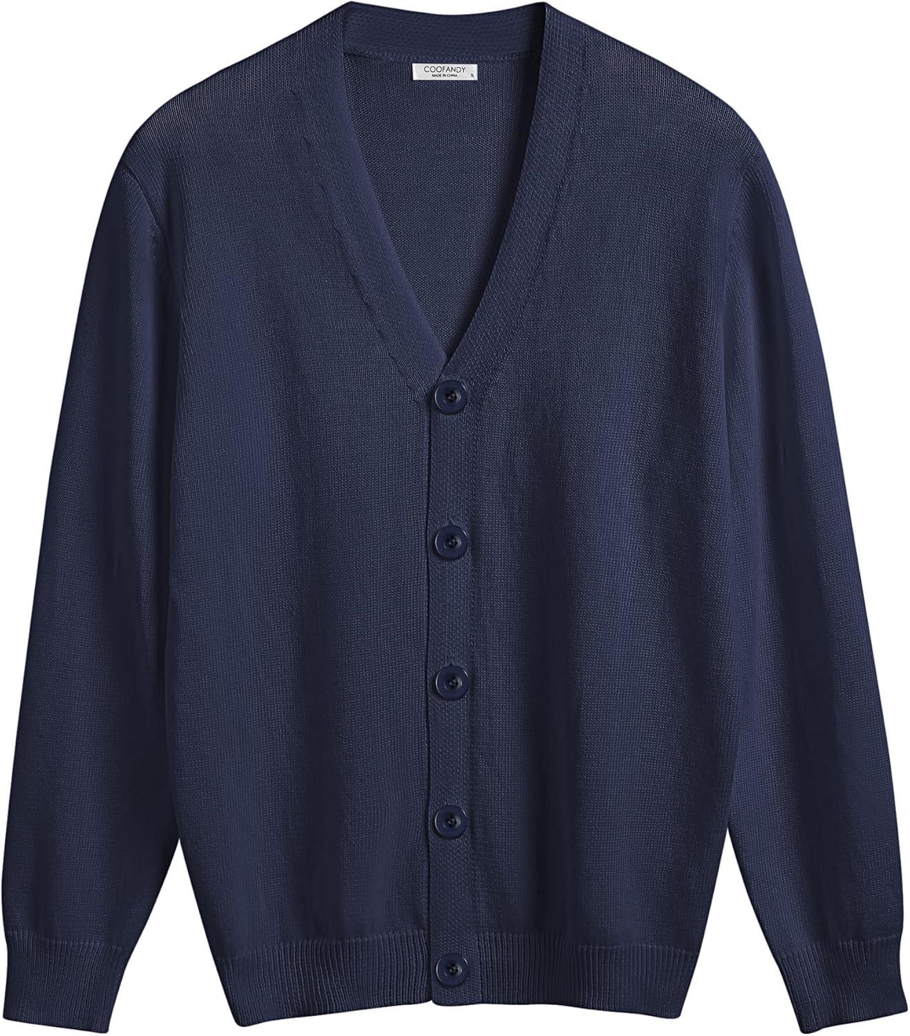 COOFANDY Men's V Neck Cardigan Sweater Casual Lightweight Button Down Knitted Cardigan Sweater(Navy Blue)