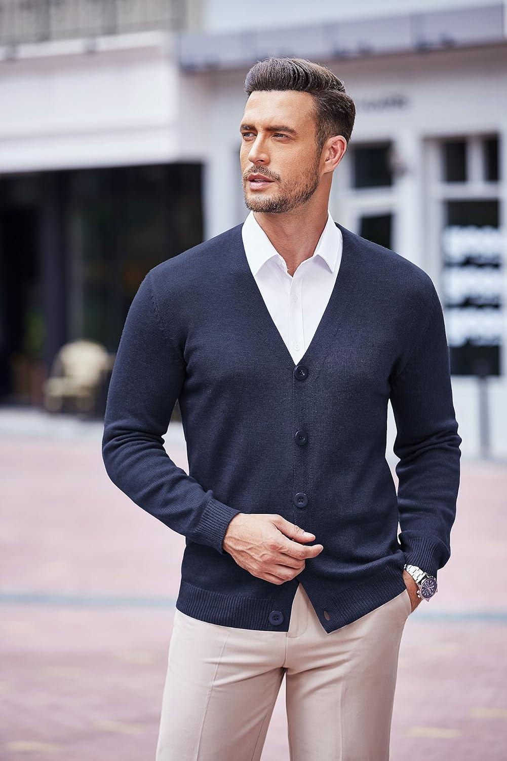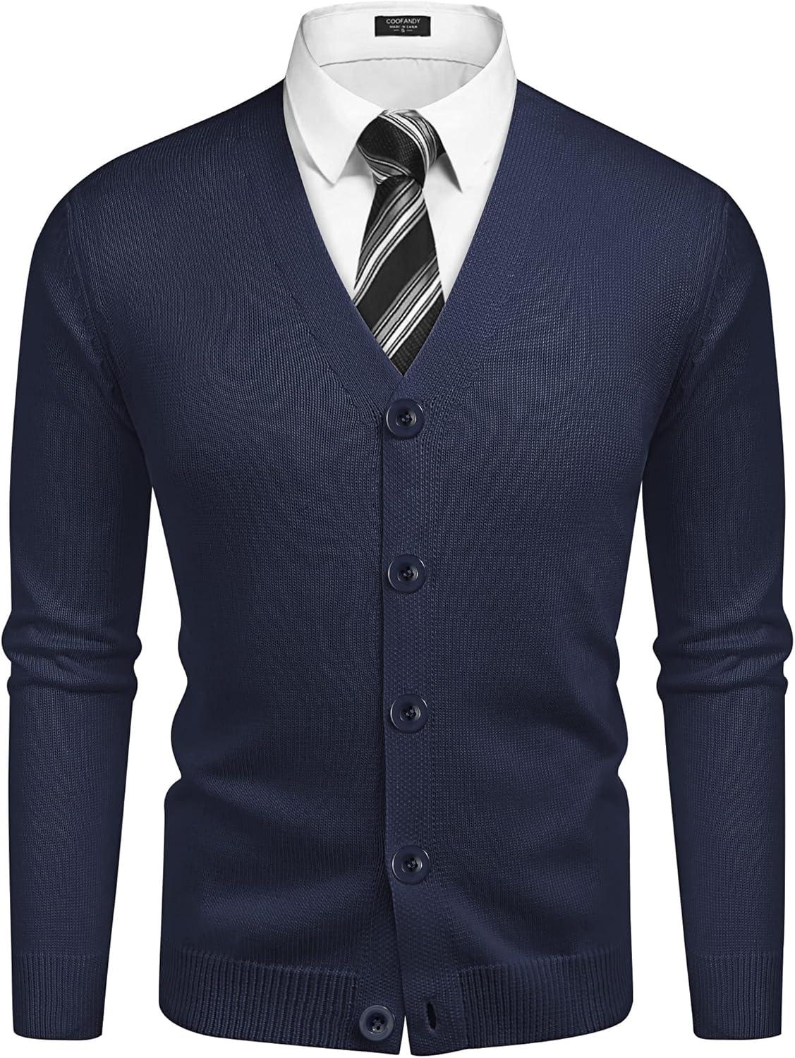 COOFANDY Men’s V Neck Cardigan Sweater Casual Lightweight Button Down Knitted Cardigan Sweater(Navy Blue)