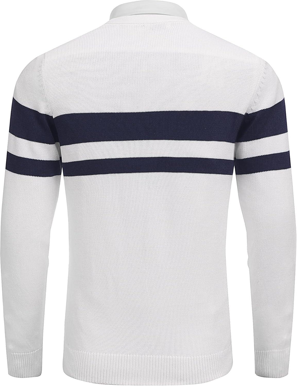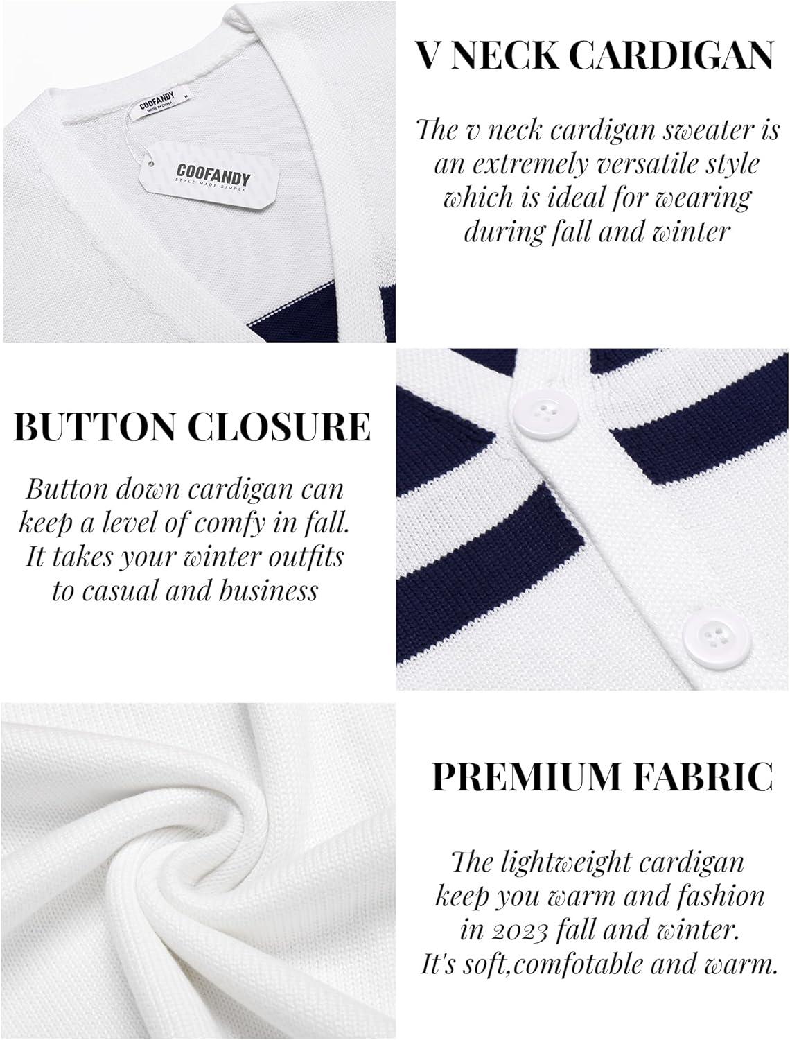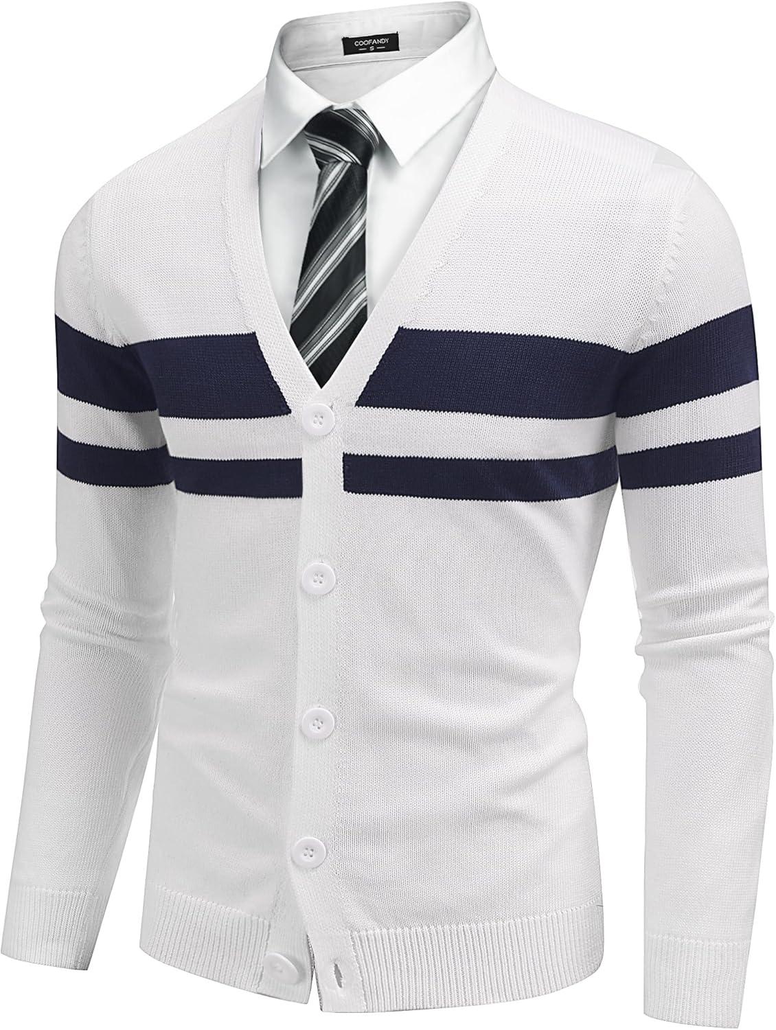 COOFANDY Men's V Neck Cardigan Sweater Casual Lightweight Button Down Knitted Cardigan Sweater(White Stripe)