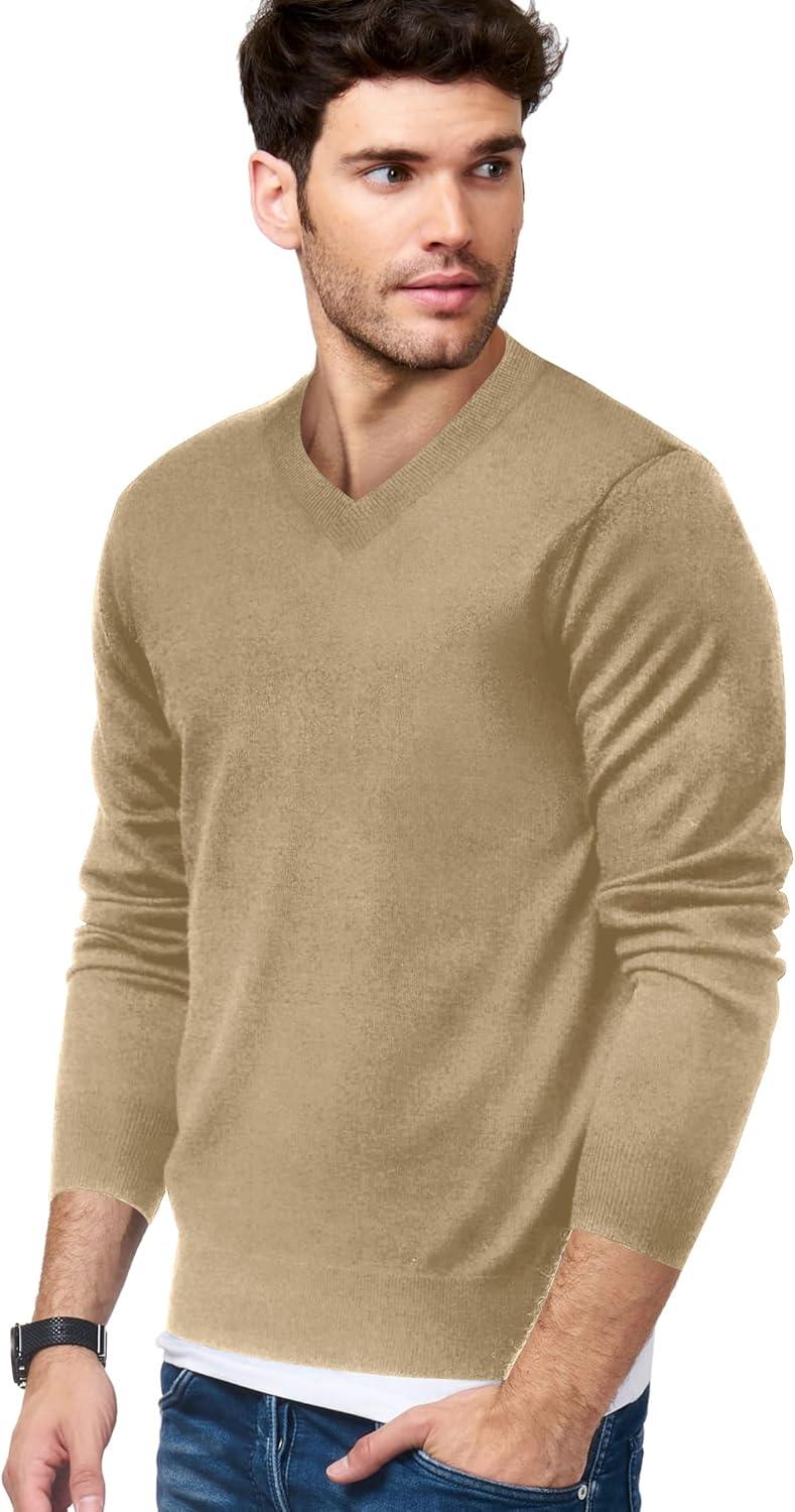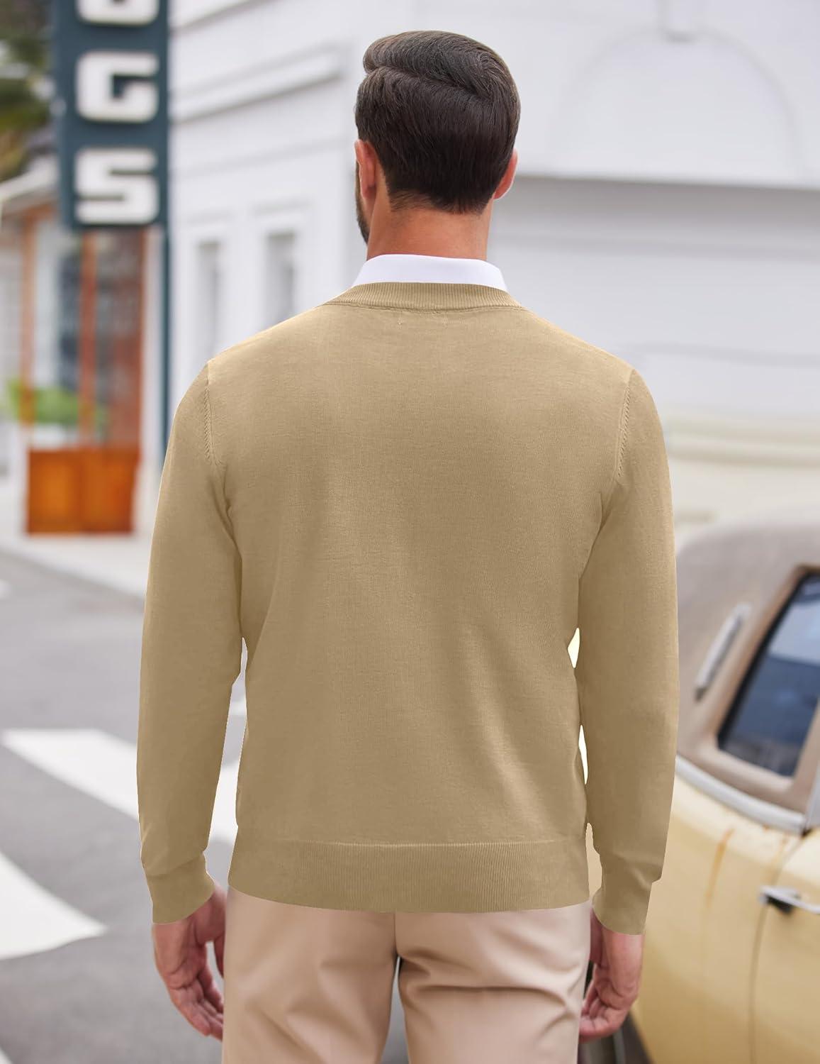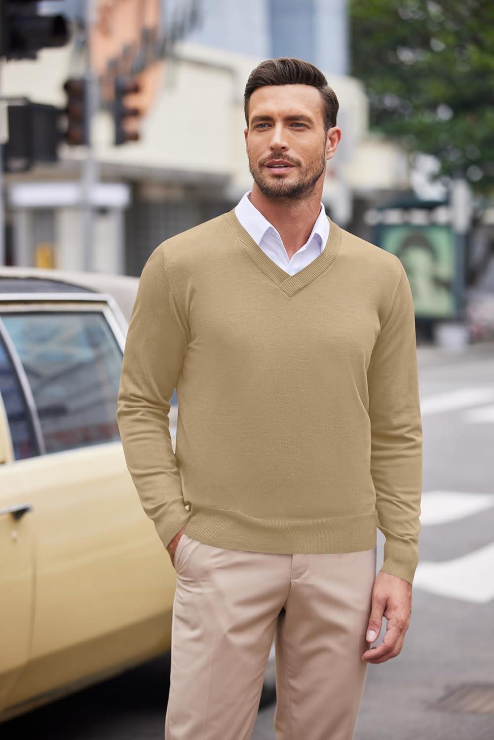 COOFANDY Mens V Neck Dress Sweater Knit Long Sleeve Slim Fit Sweaters Fashion Pullover Sweater(Cream-colored)