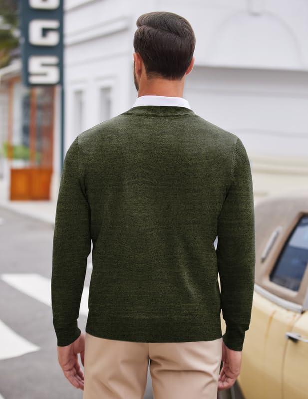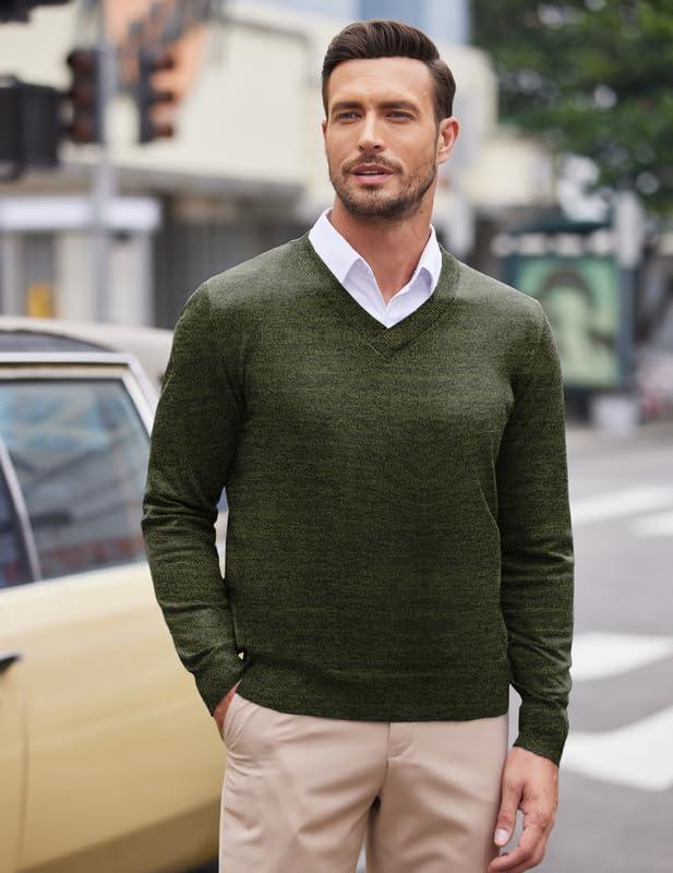 COOFANDY Mens V Neck Dress Sweater Knit Long Sleeve Slim Fit Sweaters Fashion Pullover Sweater(Deep Army Green)
