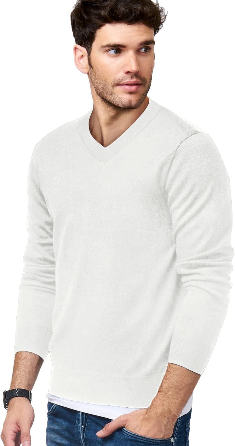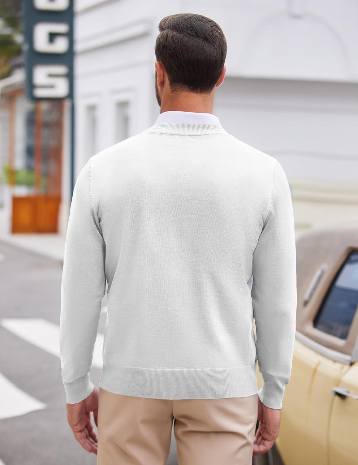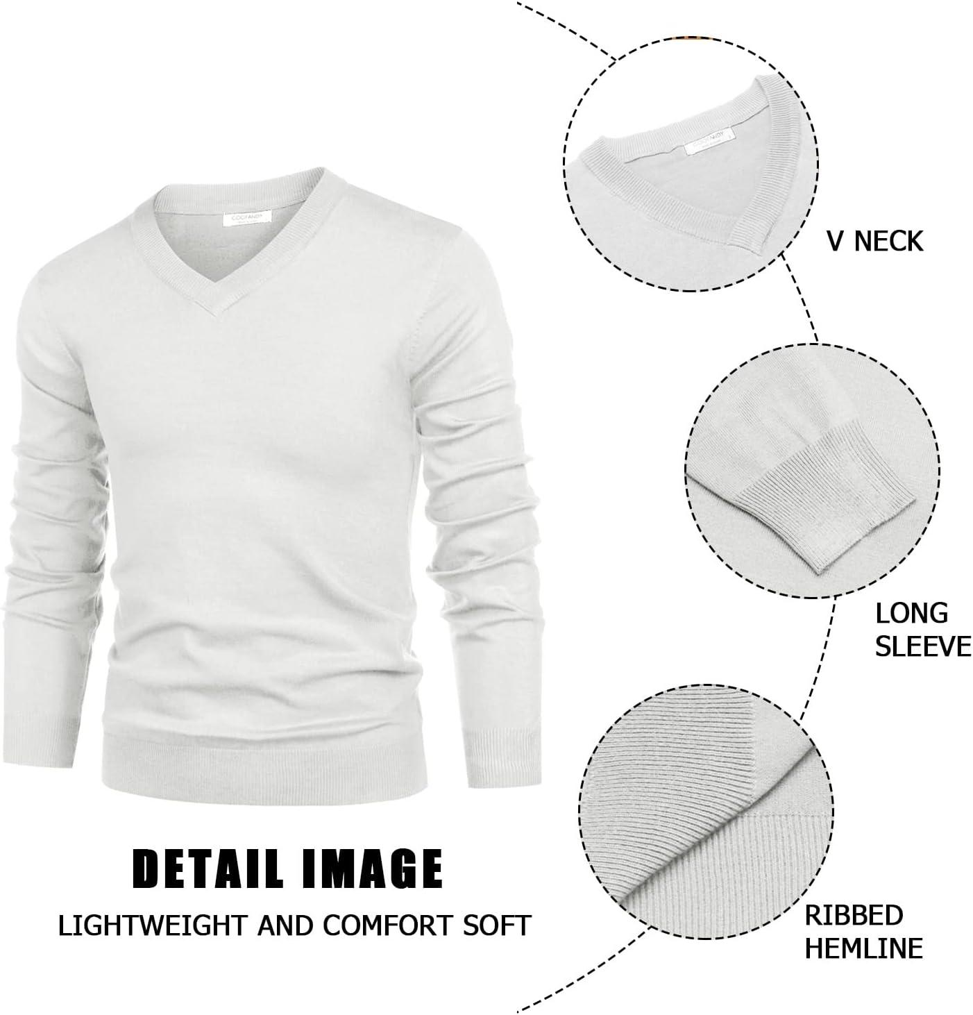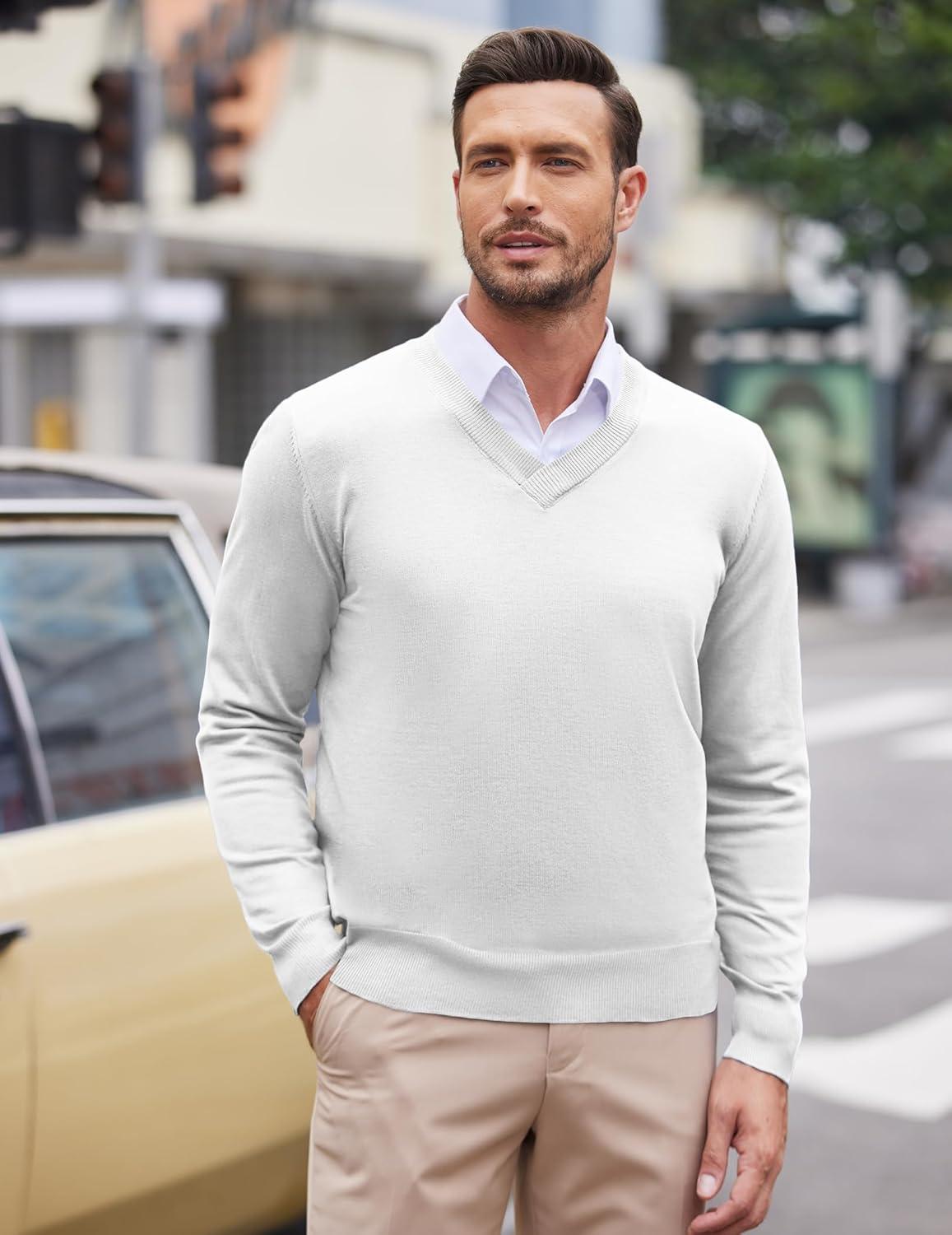 COOFANDY Mens V Neck Dress Sweater Knit Long Sleeve Slim Fit Sweaters Fashion Pullover Sweater(White)