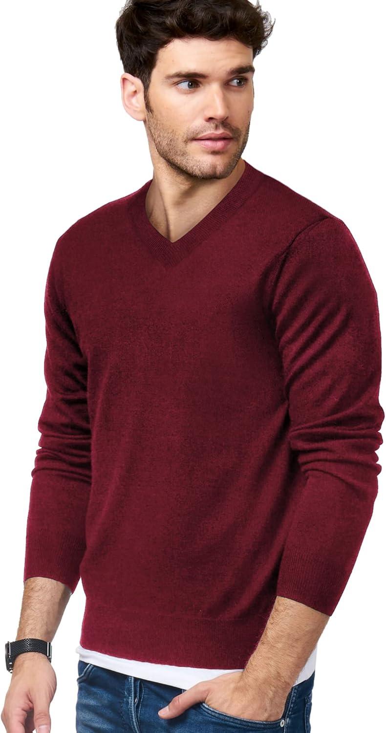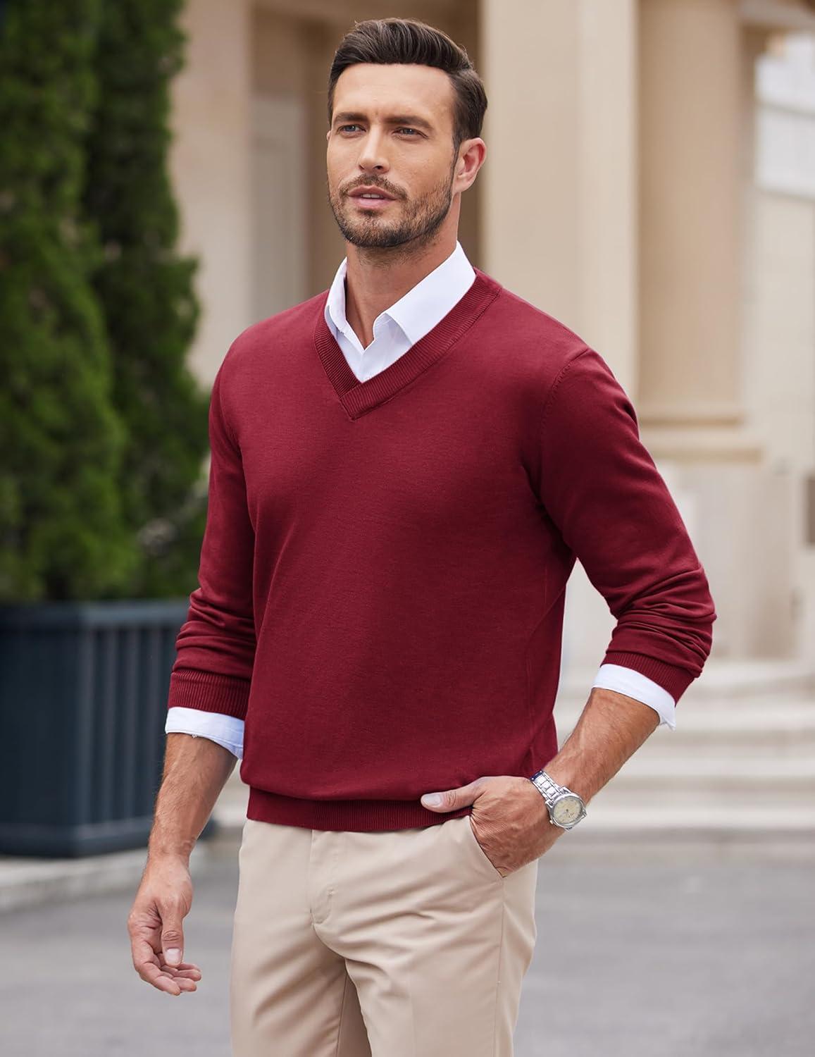 COOFANDY Mens V Neck Dress Sweater Knit Long Sleeve Slim Fit Sweaters Fashion Pullover Sweater(Wine Red)
