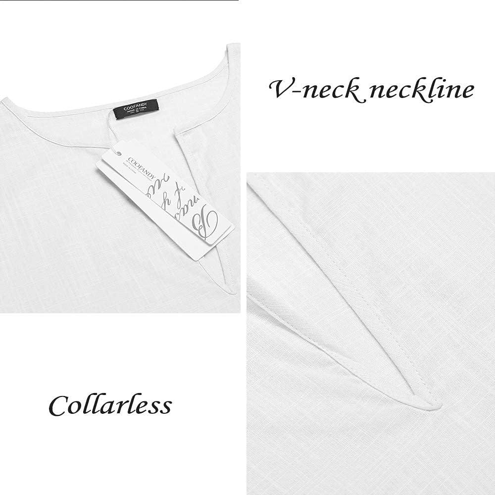 imageCOOFANDY Mens VNeck Linen Robe Short Sleeve Kaftan Thobe Long Gown Casual Shirt for Beach Summer01white