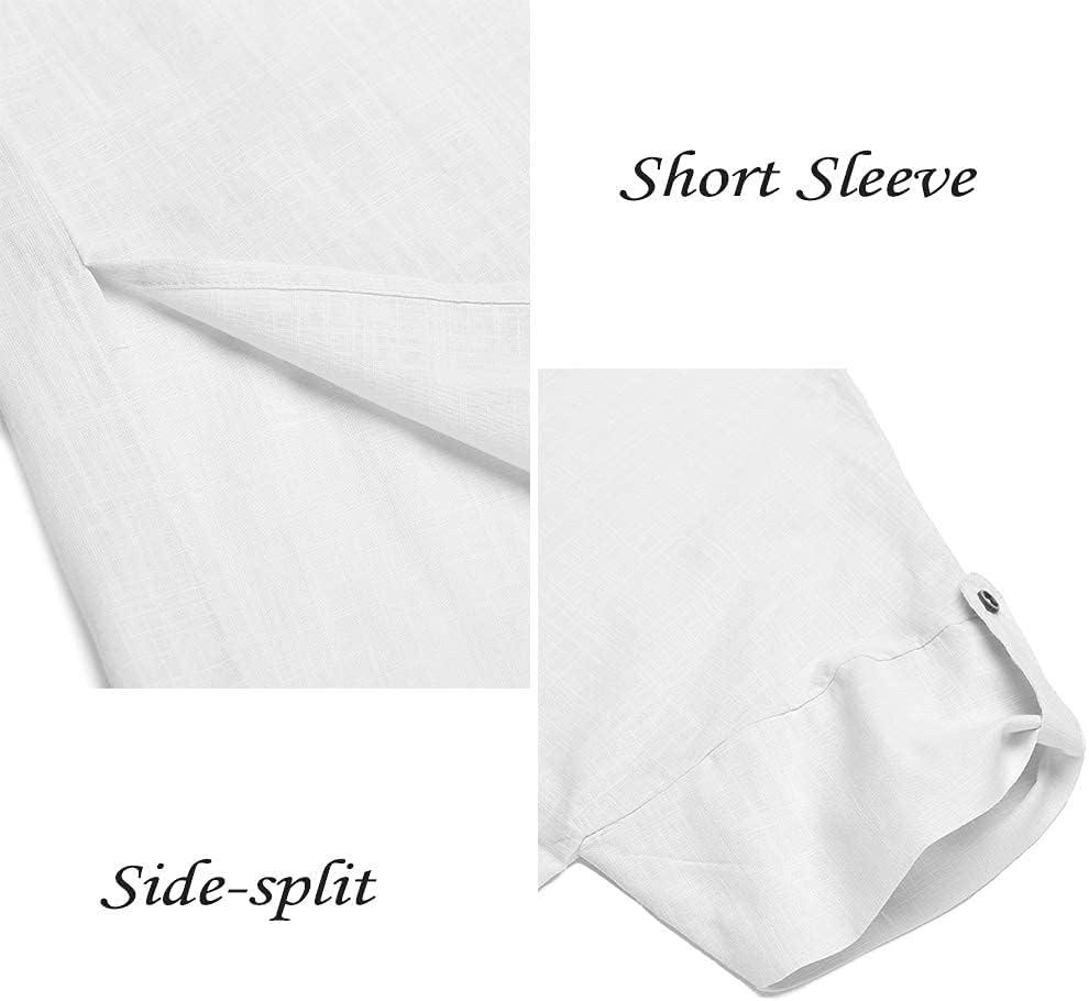 COOFANDY Men's V-Neck Linen Robe Short Sleeve Kaftan Thobe Long Gown Casual Shirt for Beach, Summer(01-white)