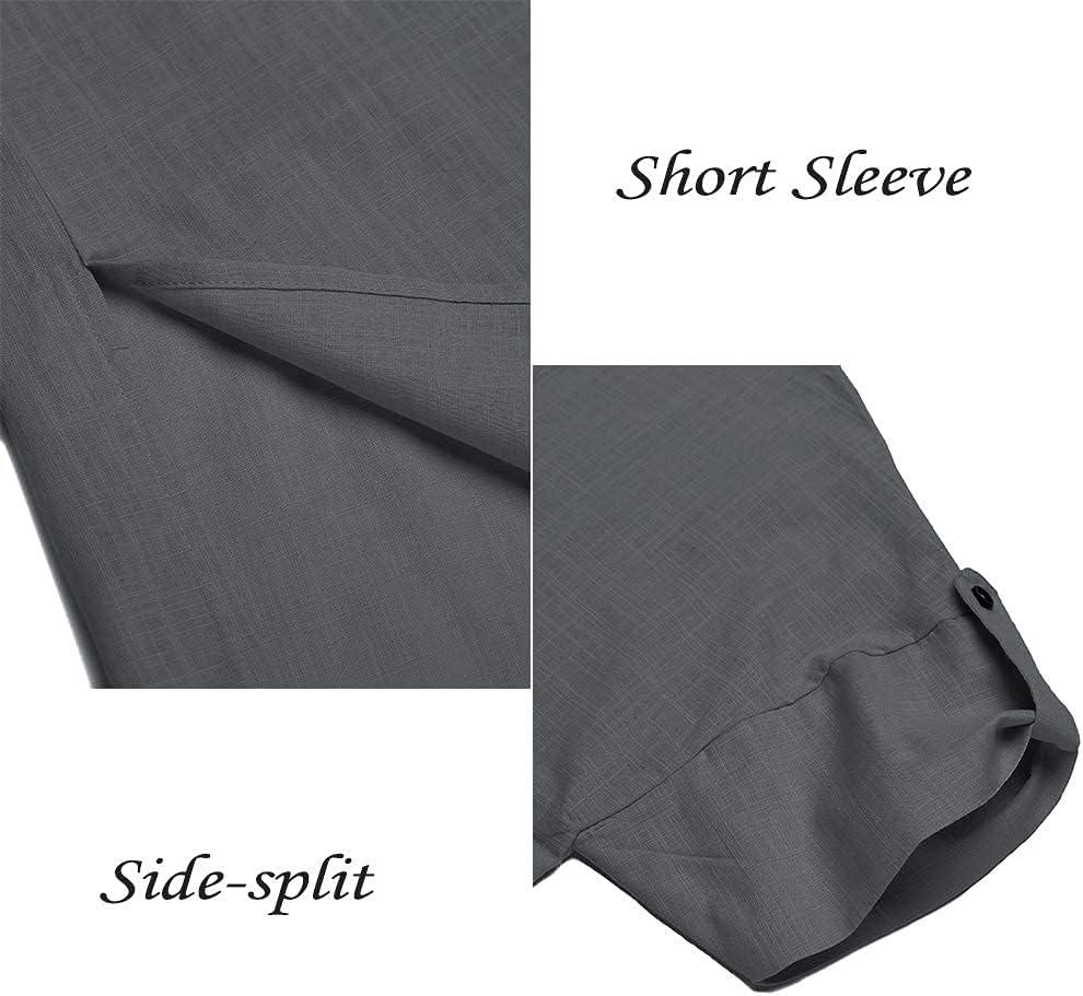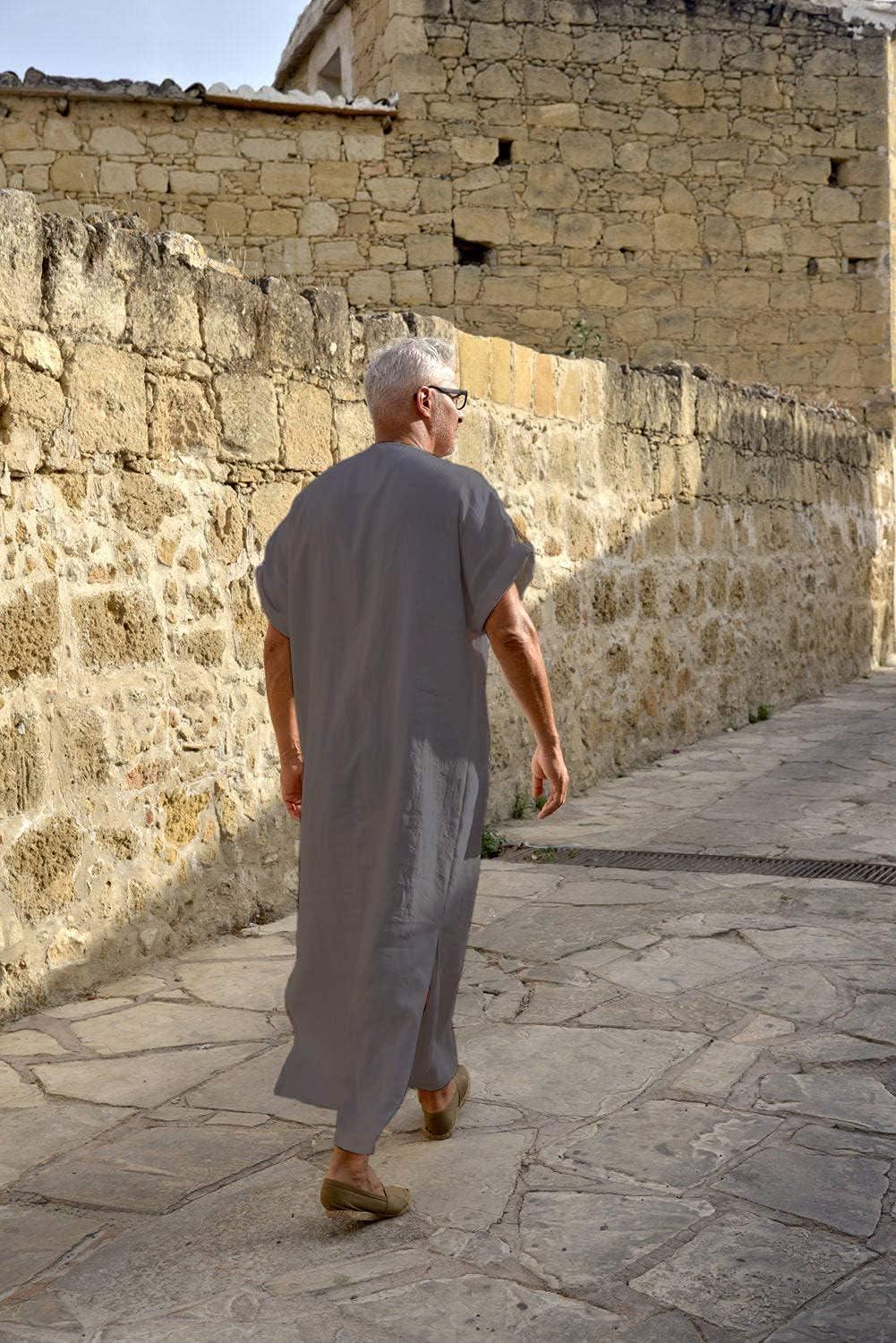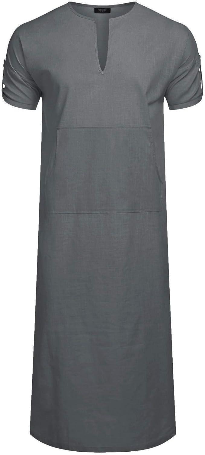 COOFANDY Men's V-Neck Linen Robe Short Sleeve Kaftan Thobe Long Gown Casual Shirt for Beach, Summer(Dark Grey)