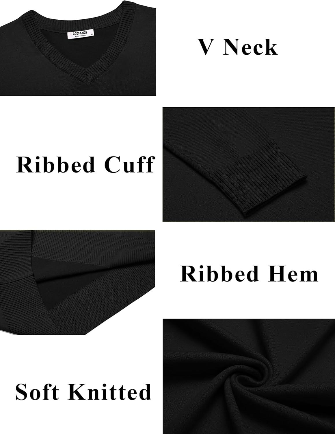COOFANDY Men's V Neck Sweater Lightweight Knitted Pullover Sweaters(Black)