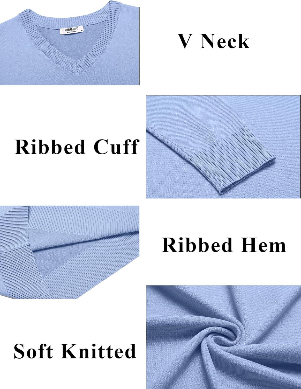 COOFANDY Men's V Neck Sweater Lightweight Knitted Pullover Sweaters(Light Blue)