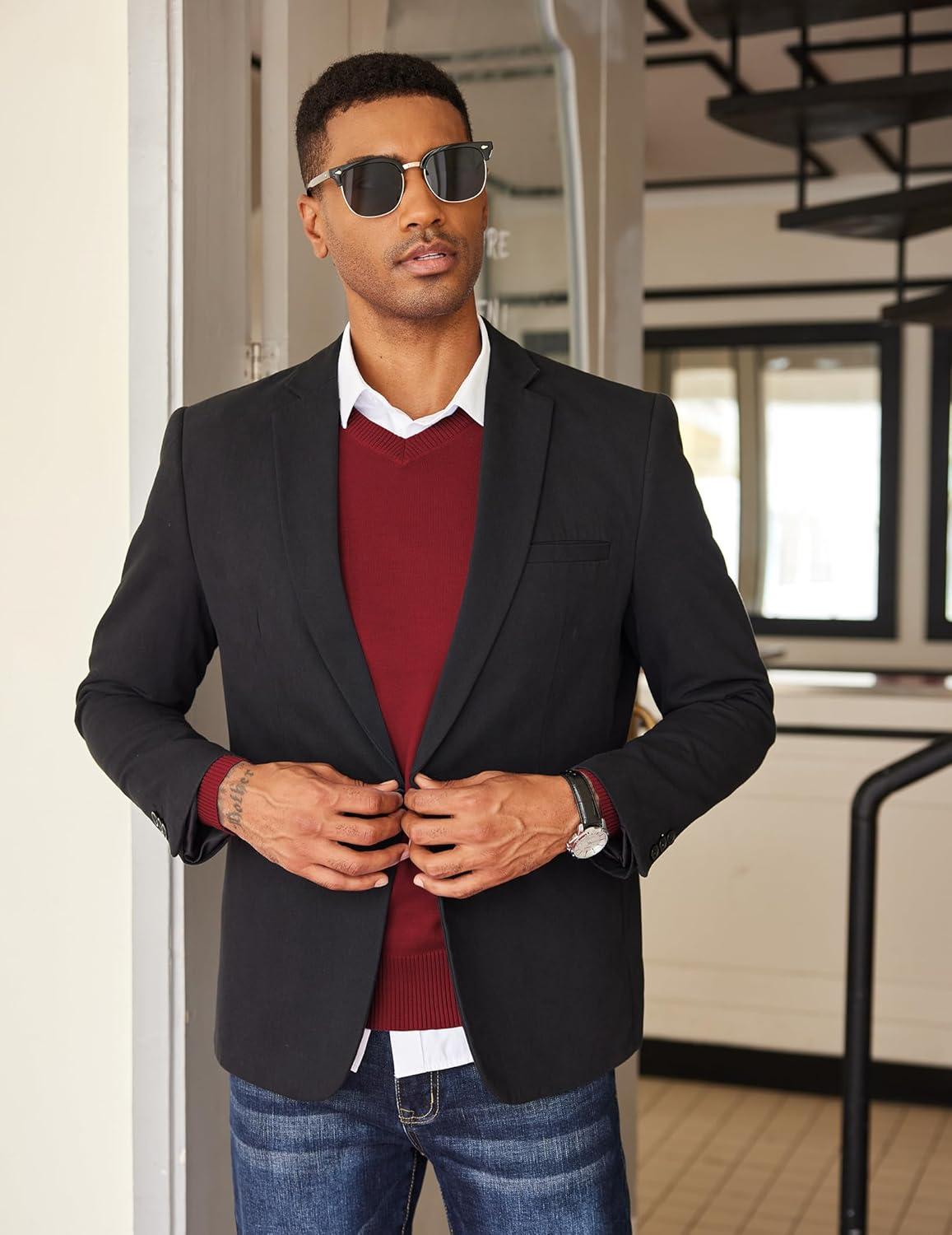 COOFANDY Men’s V Neck Sweater Lightweight Knitted Pullover Sweaters(Red)