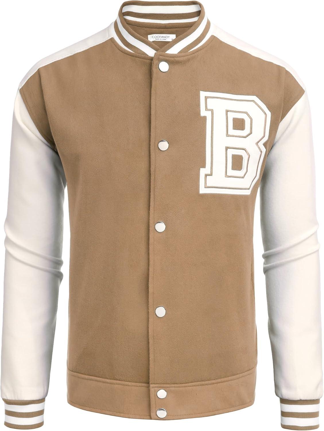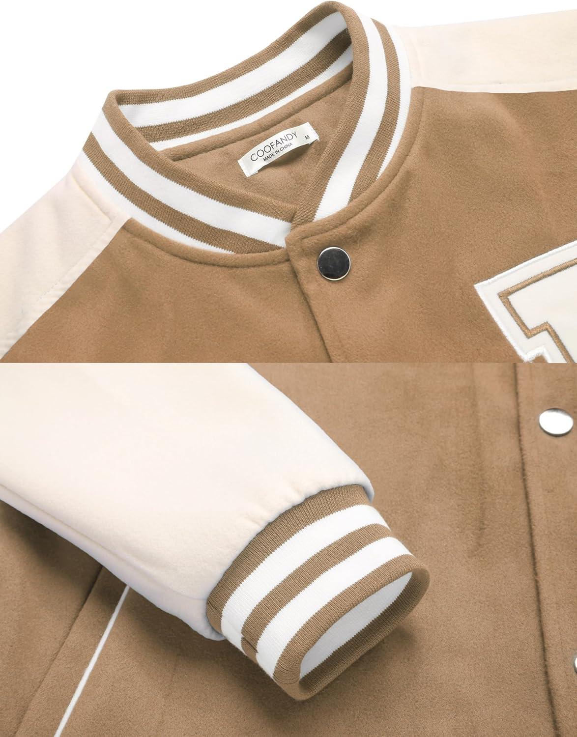 COOFANDY Men’s Varsity Jacket Wool Blend Letterman Bomber Jacket Baseball Lightweight Jacket(Khaki)