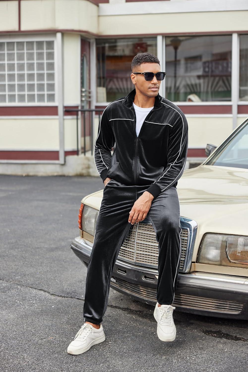 Be the first to review “COOFANDY Mens Velour Tracksuits 2 Piece Set Outfits Zip Up Sweatsuits Velvet Jacket Pants Set(Black)”