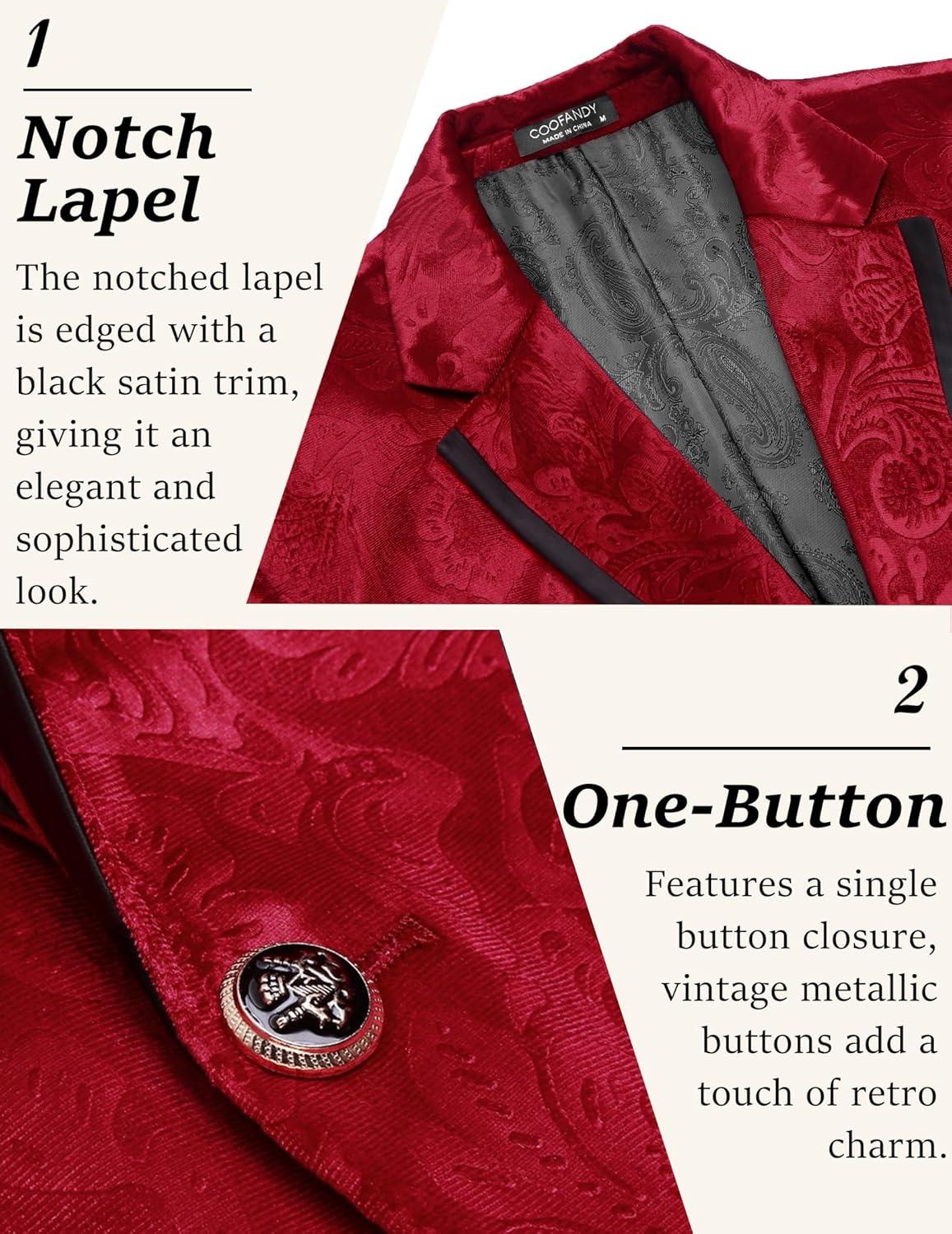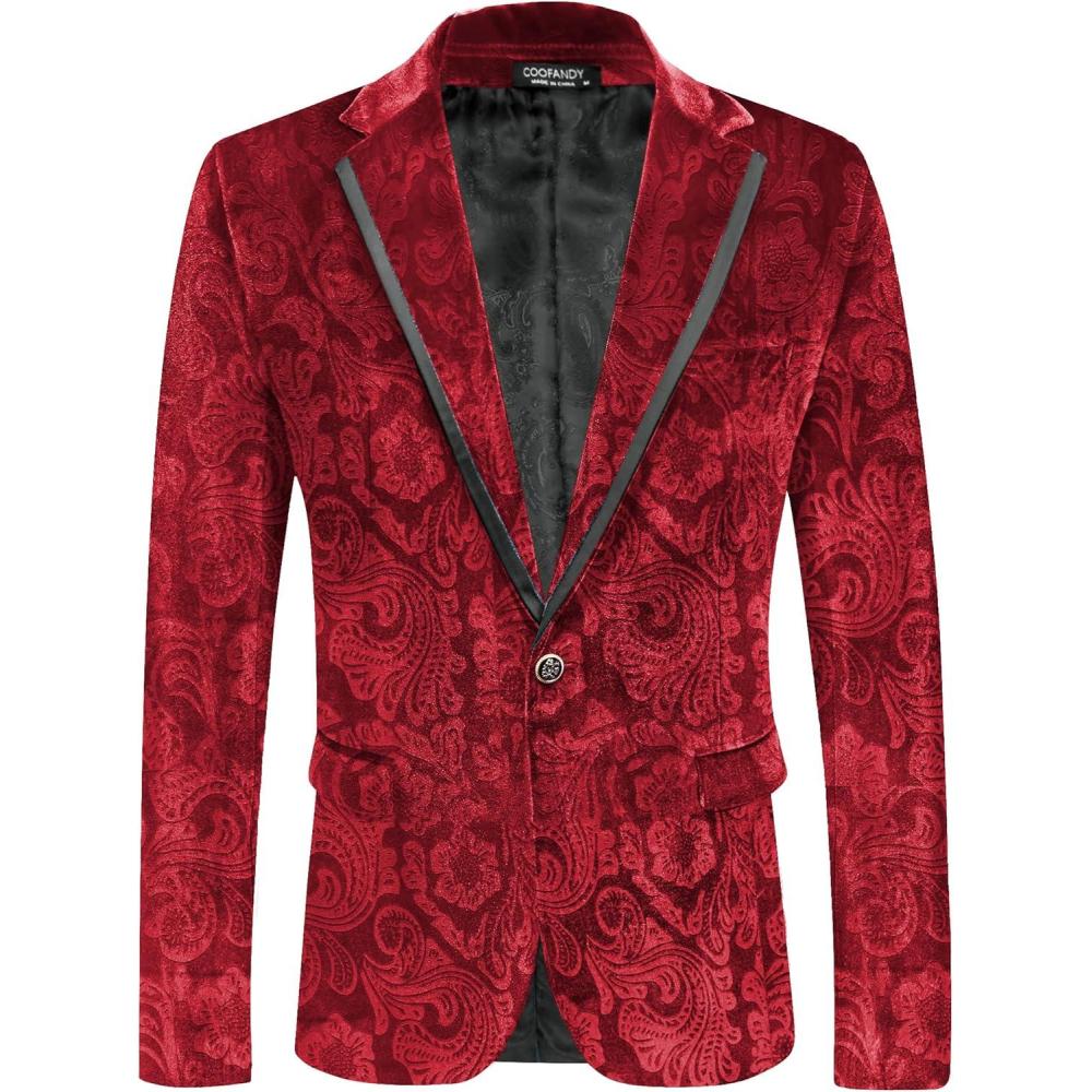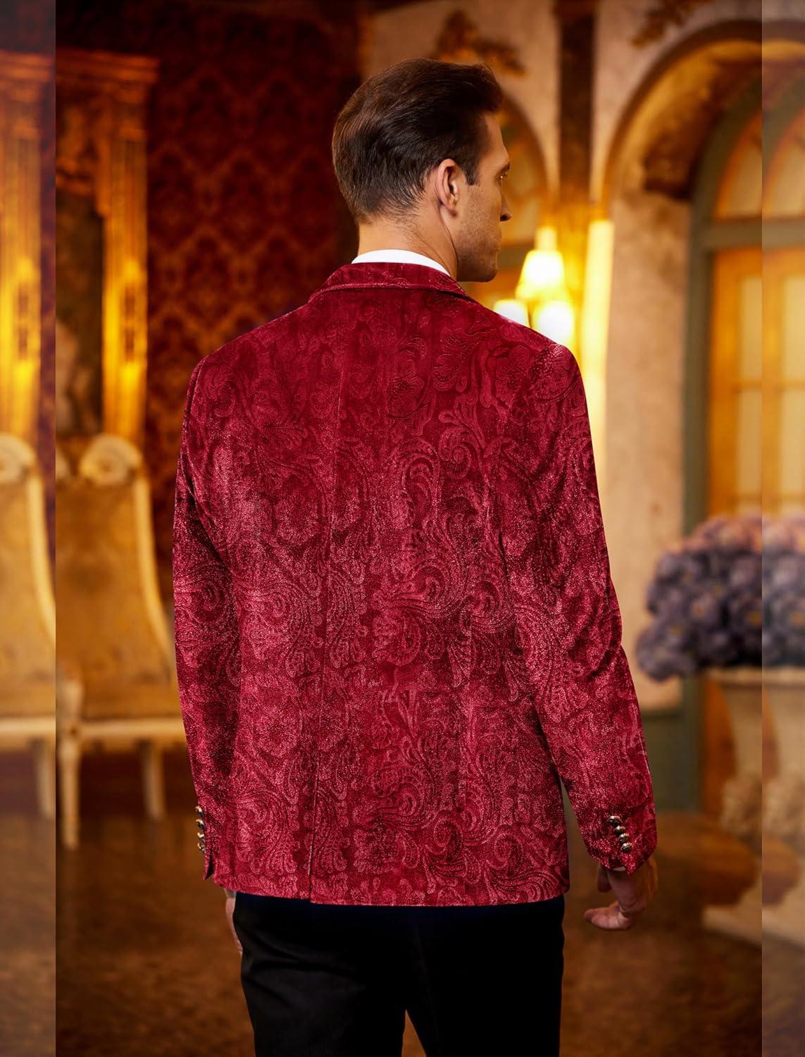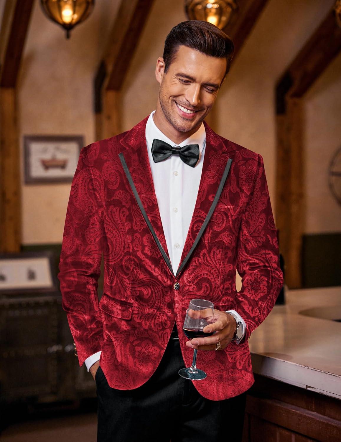 COOFANDY Men's Velvet Blazer Notched Lapel One Button Velour Tuxedo Jacket for Prom Wedding Party Dinner(Red Floral)