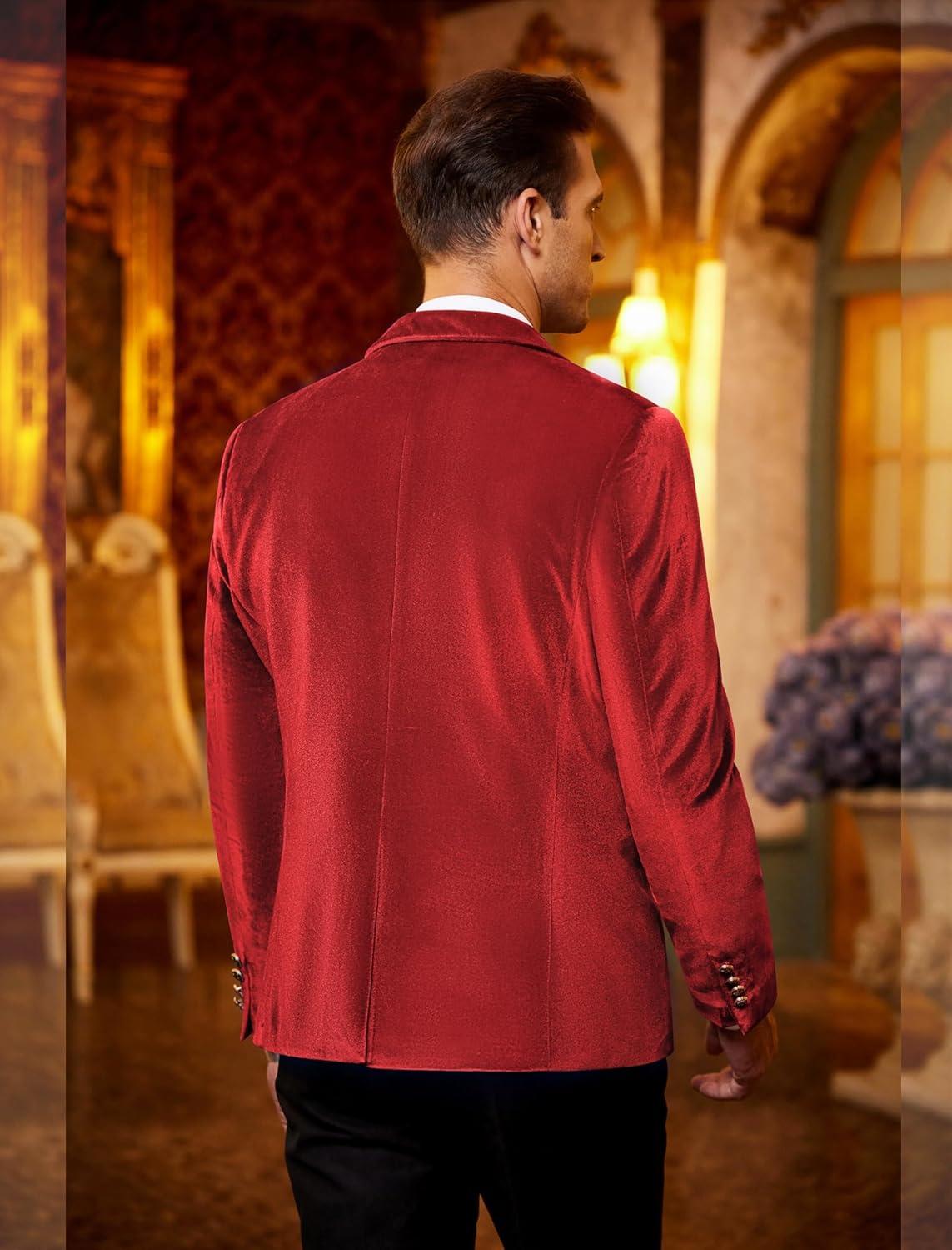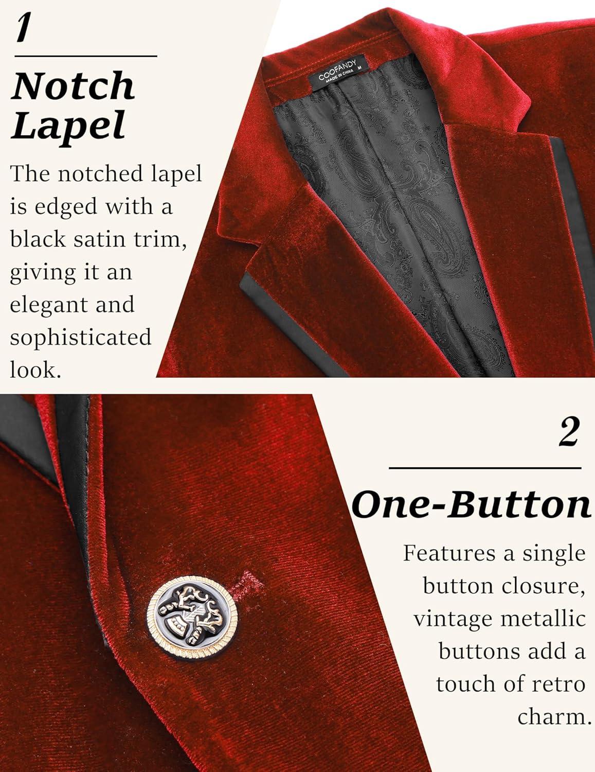 COOFANDY Men's Velvet Blazer Notched Lapel One Button Velour Tuxedo Jacket for Prom Wedding Party Dinner(Red)