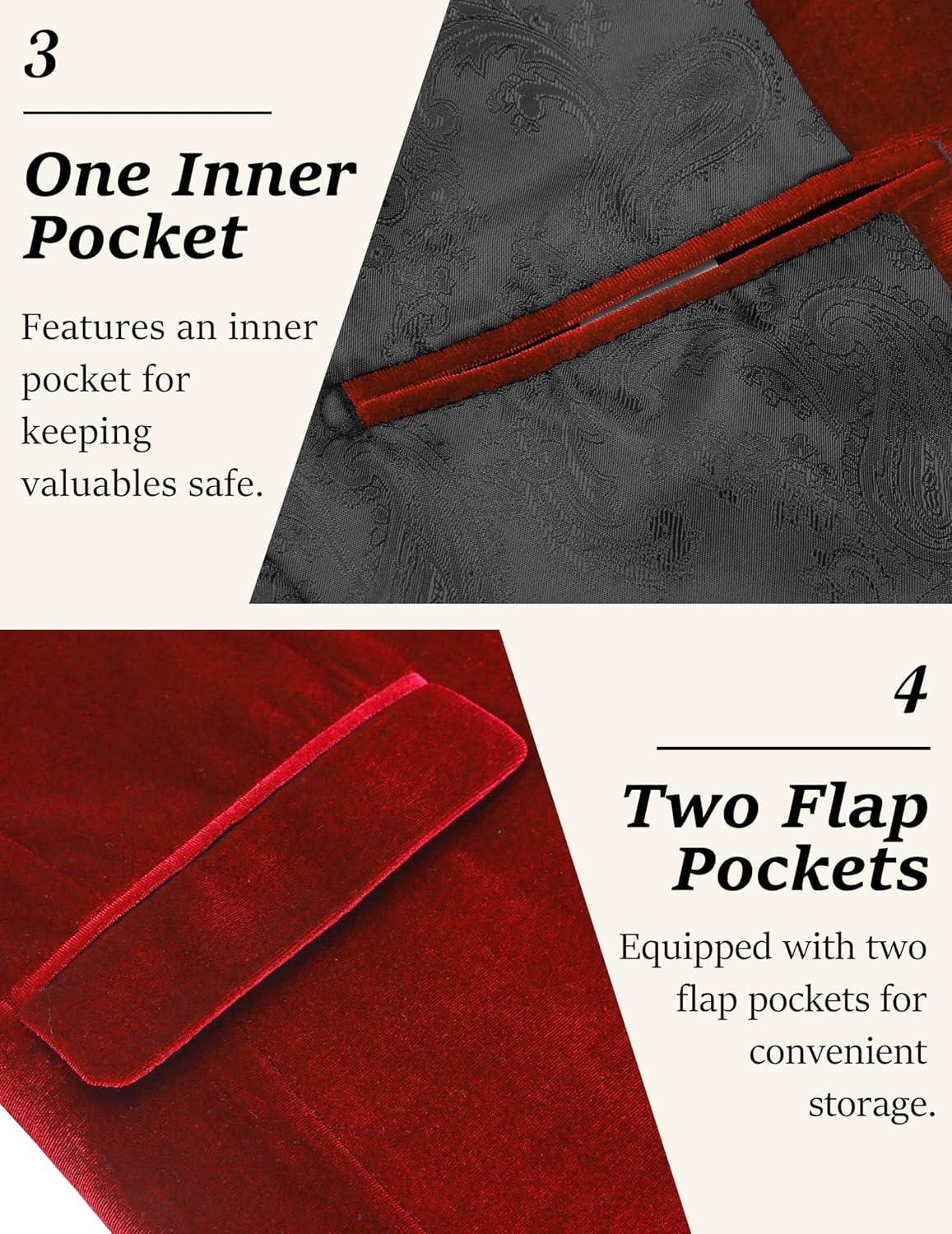 imageCOOFANDY Mens Velvet Blazer Notched Lapel One Button Velour Tuxedo Jacket for Prom Wedding Party DinnerRed