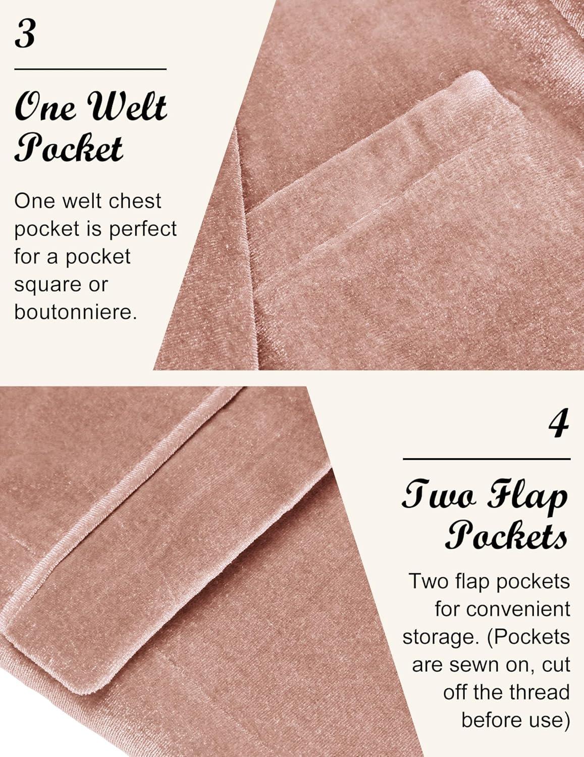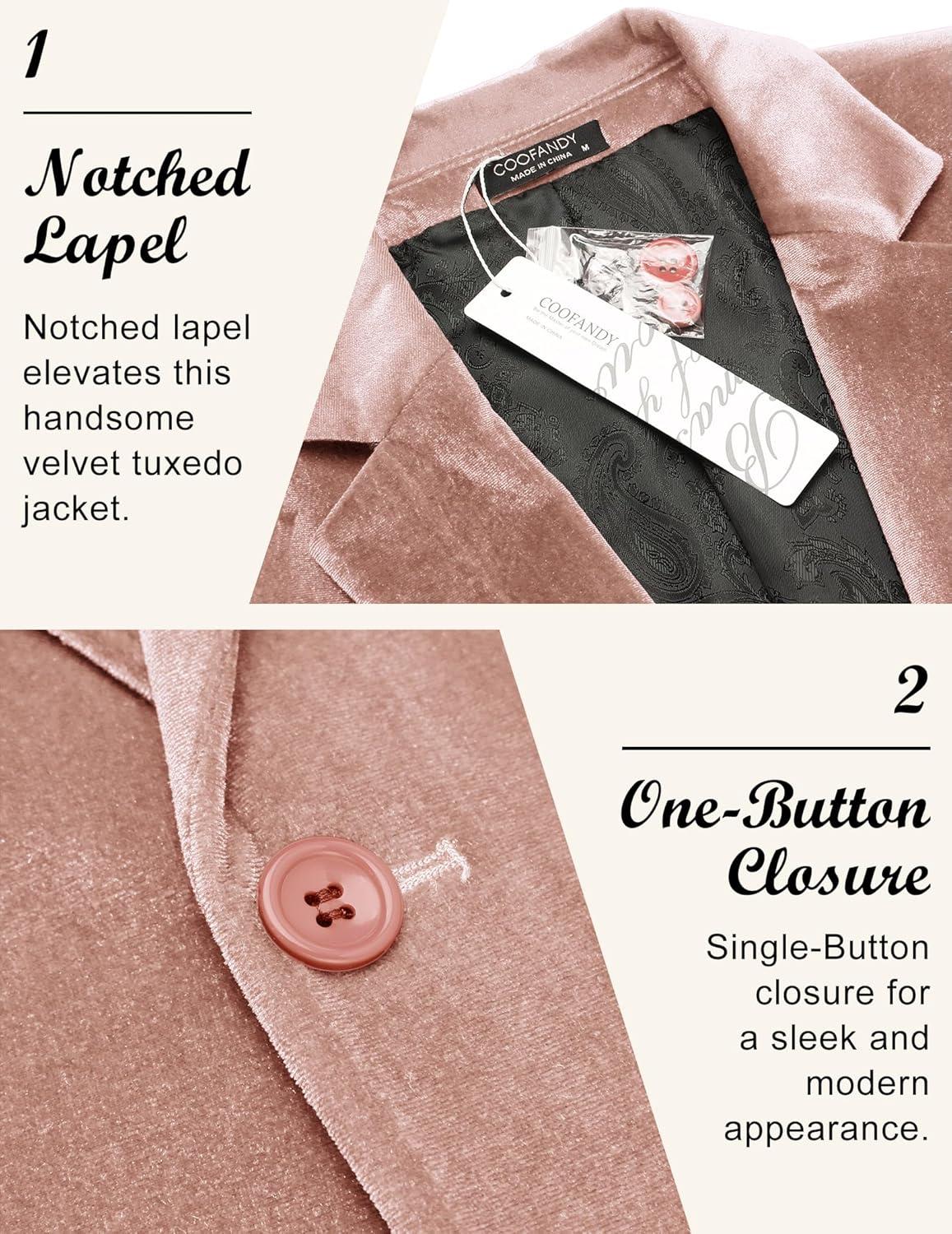 COOFANDY Men's Velvet Blazer Notched Lapel Velour Suit Jacket One Button Tuxedo Jackets for Wedding Prom Party Dinner(Beige Pink)