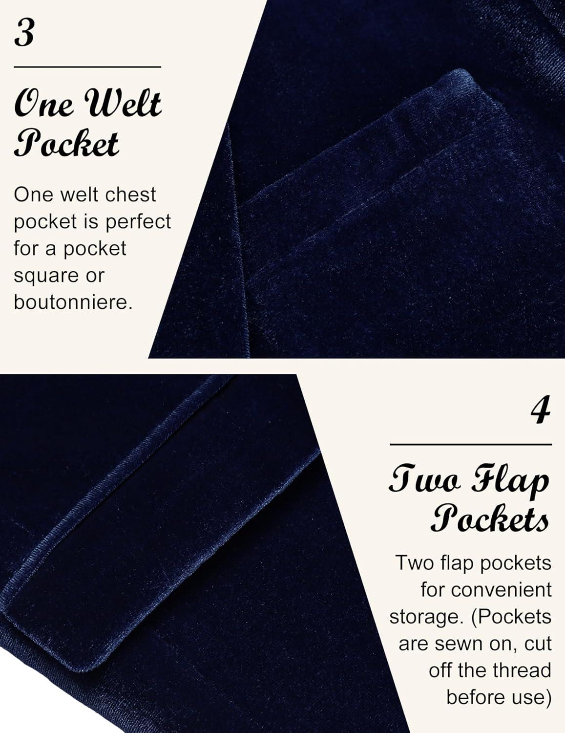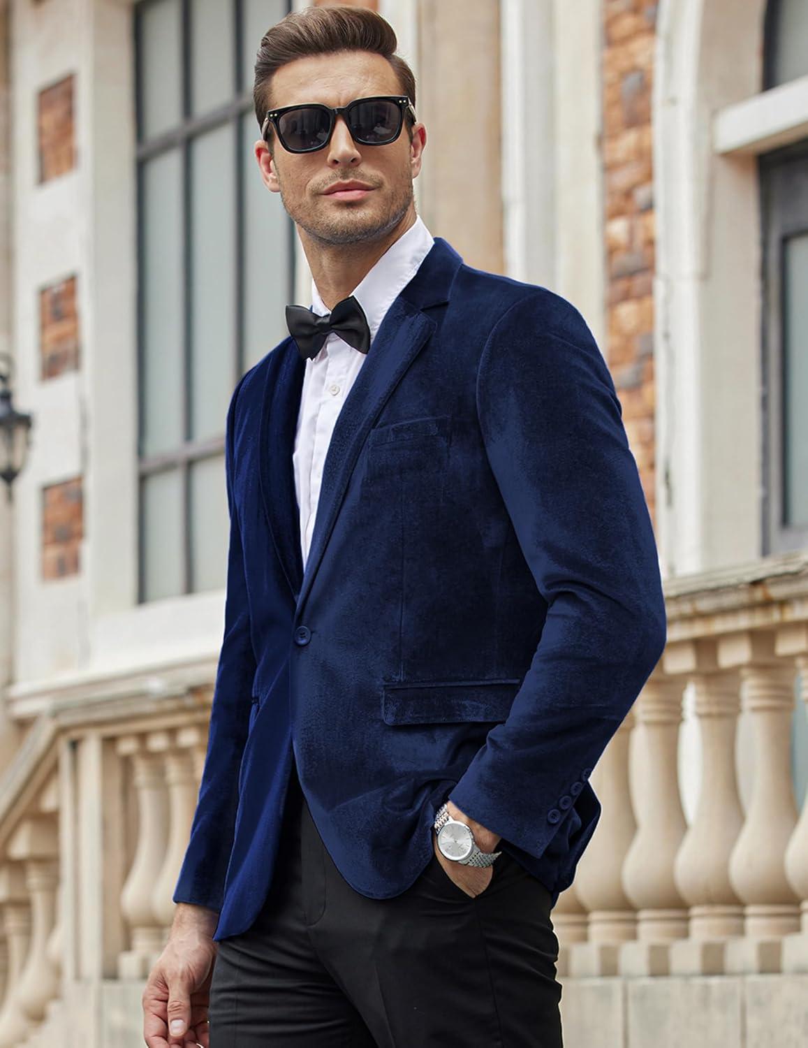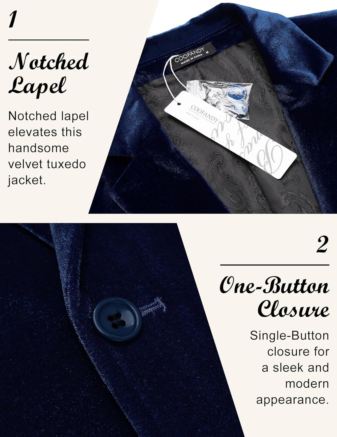 COOFANDY Men's Velvet Blazer Notched Lapel Velour Suit Jacket One Button Tuxedo Jackets for Wedding Prom Party Dinner(Dark Blue)