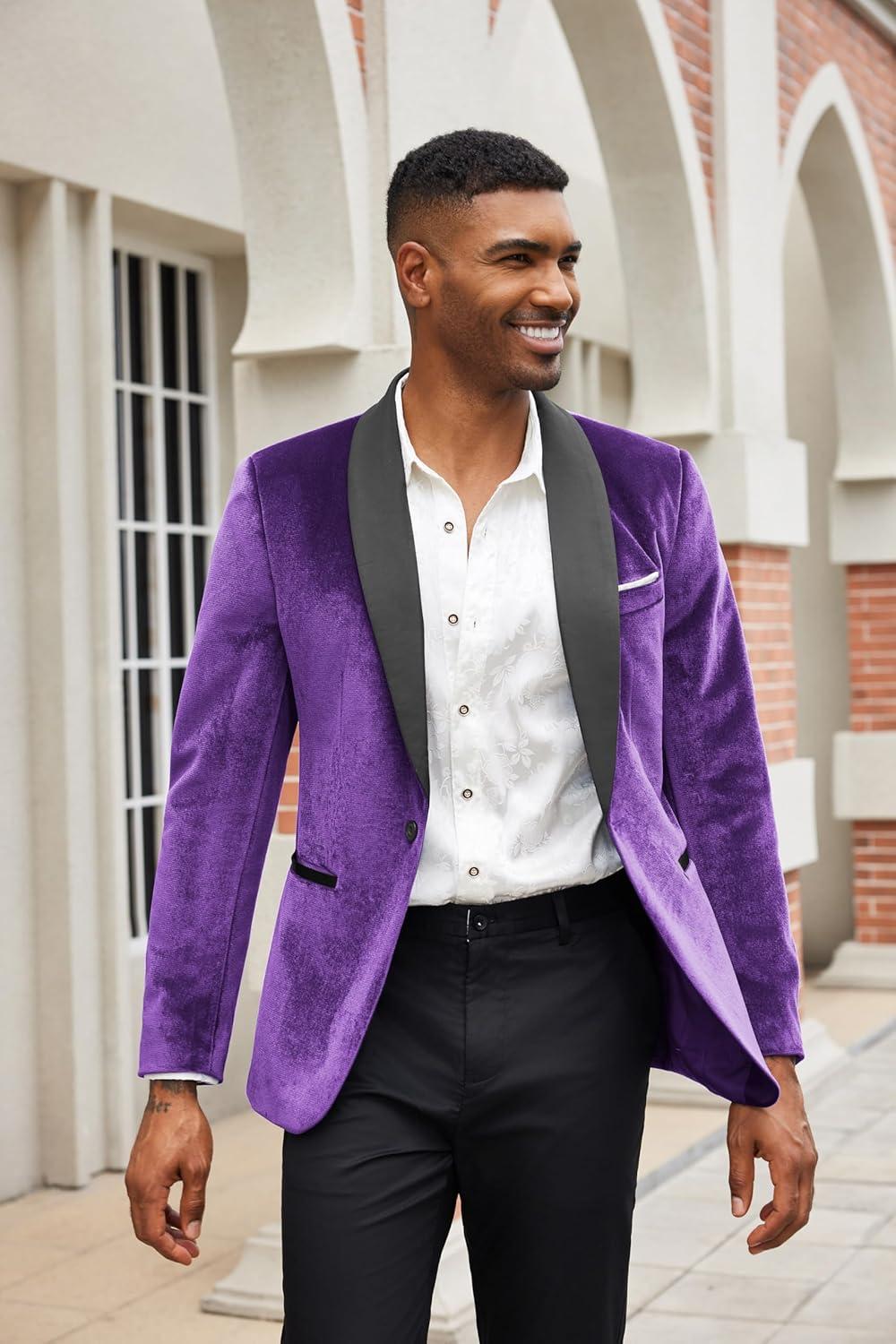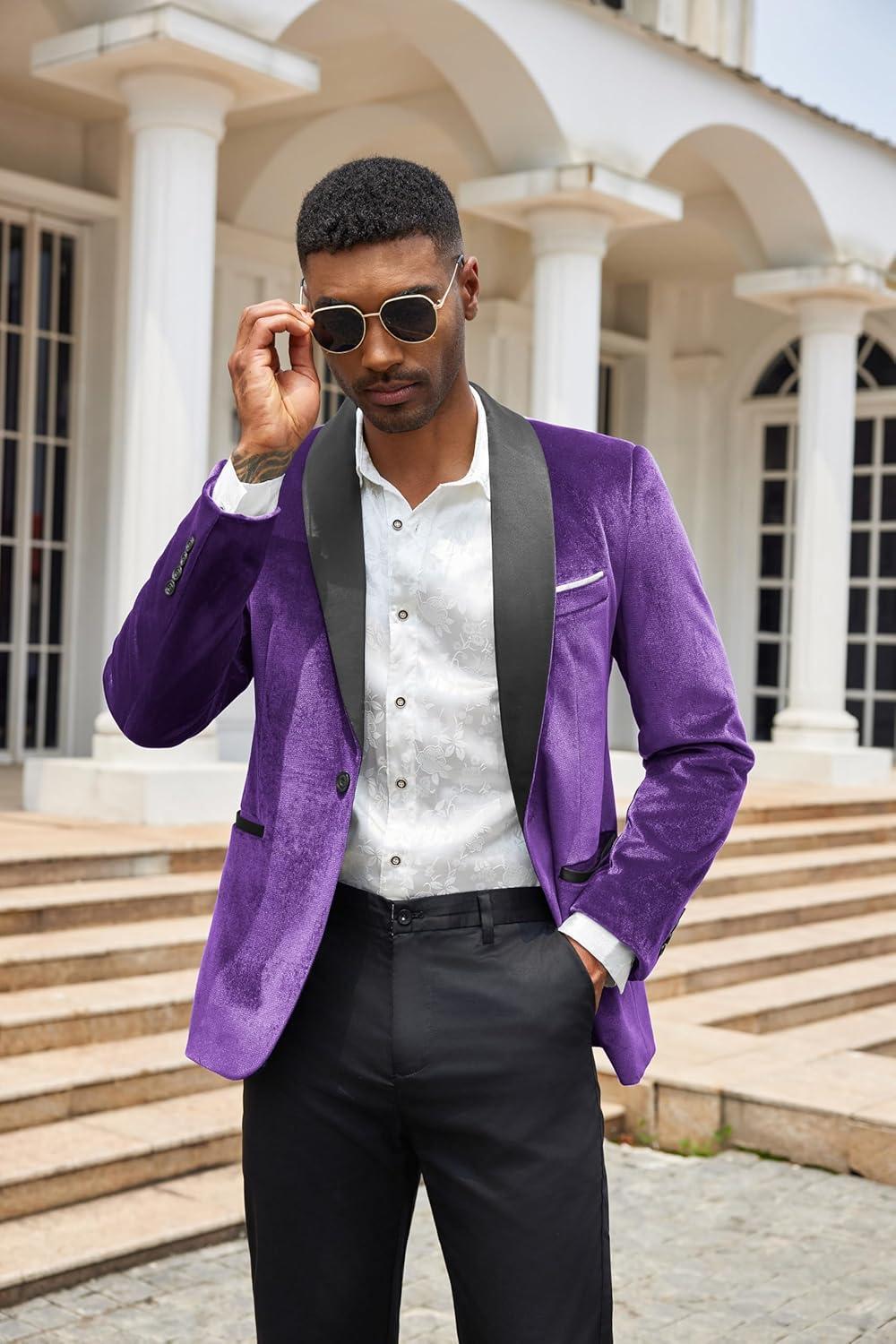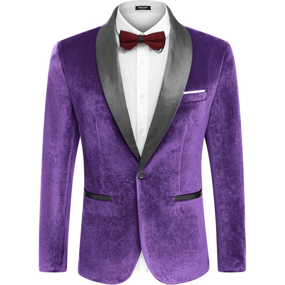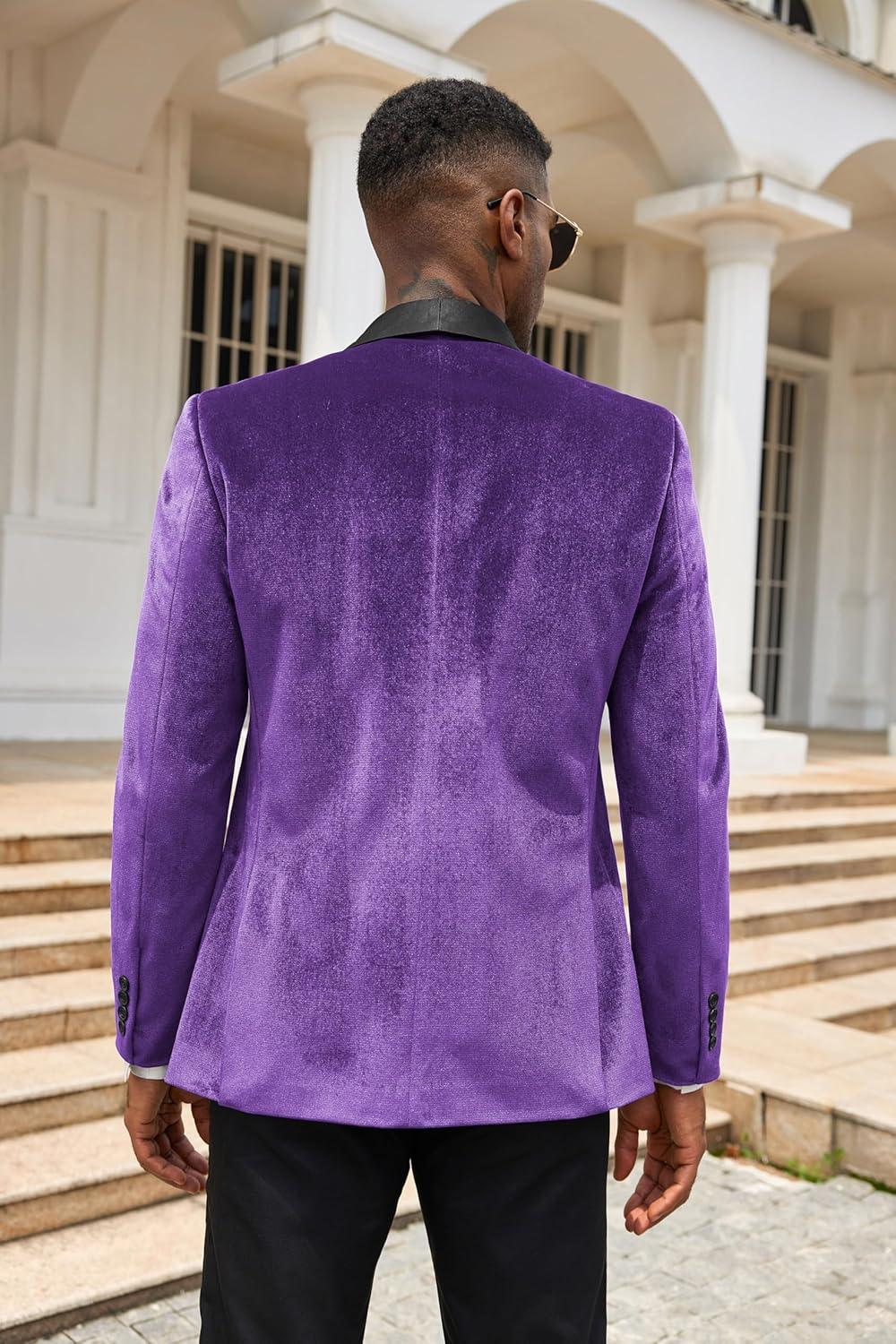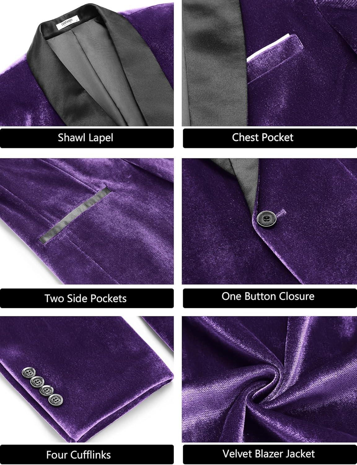 COOFANDY Men's Velvet Tuxedo One Button Jacket Dinner Prom Wedding Blazer Jacket(Purple)