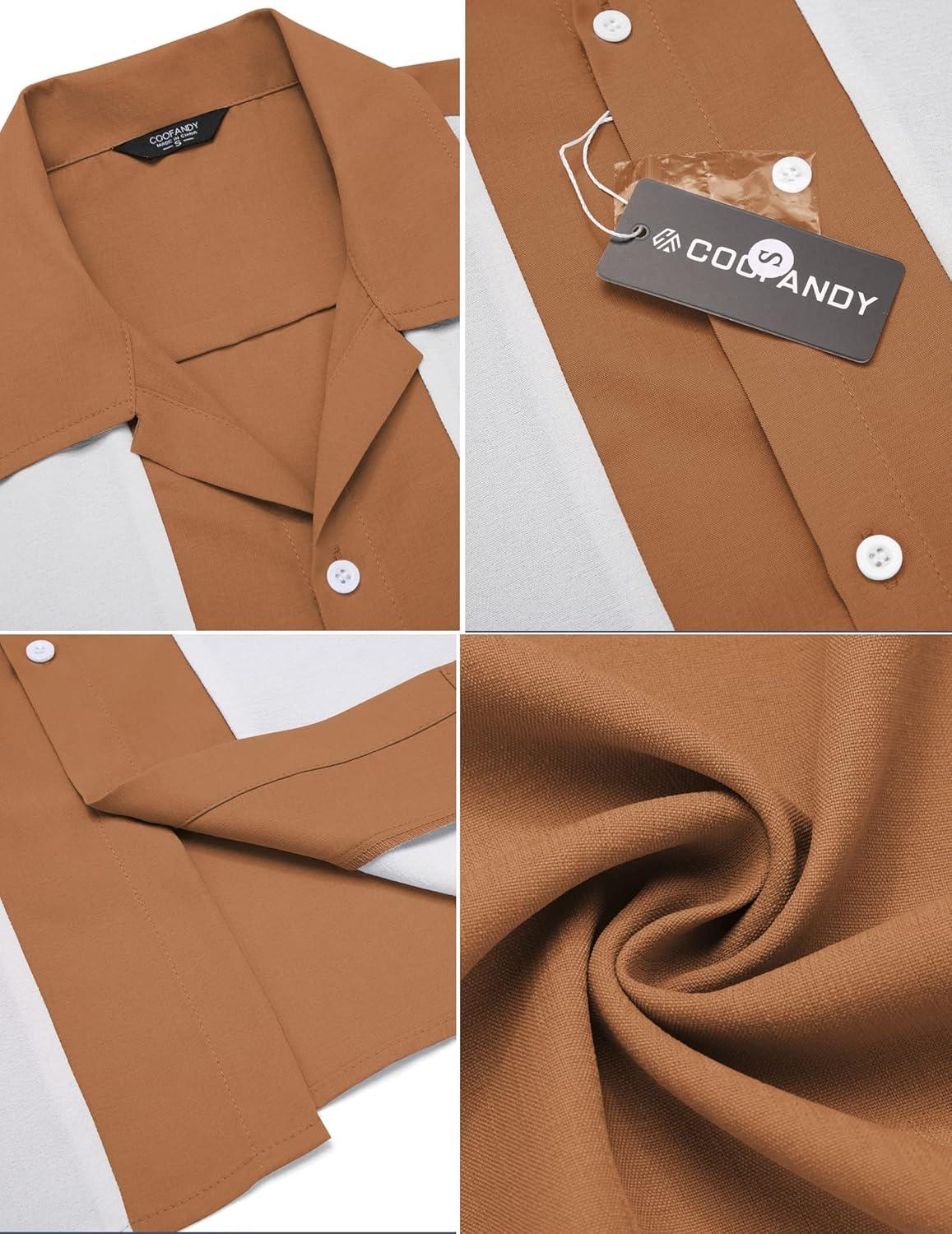 COOFANDY Men’s Vintage Bowling Shirt Short Sleeve Button Down Summer Cuba Beach Shirts(Brown White)