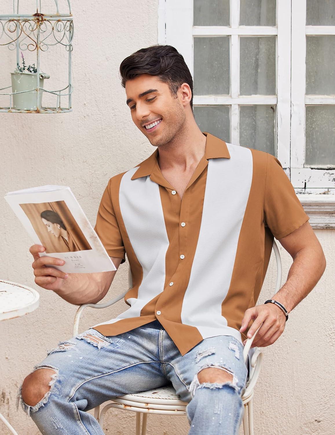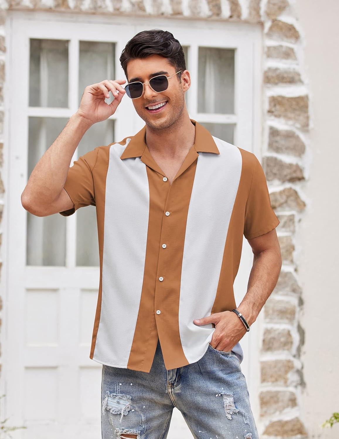 COOFANDY Men's Vintage Bowling Shirt 1950s Retro Short Sleeve Button Down Summer Beach Shirts