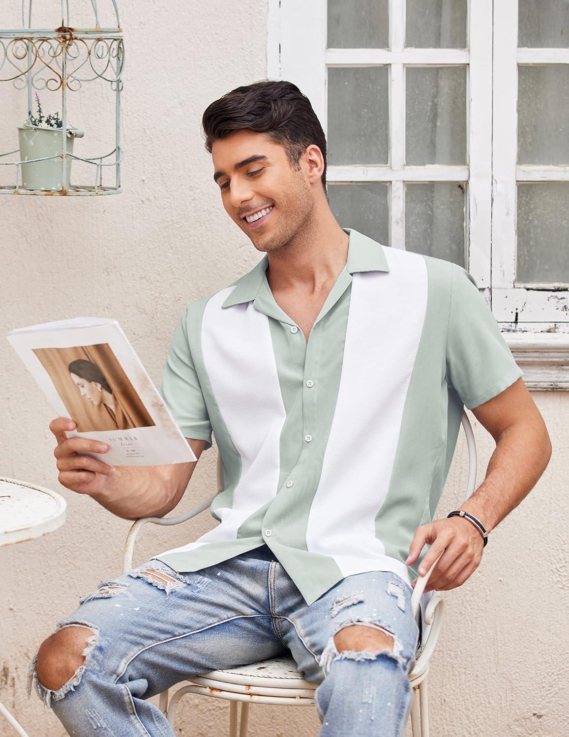 COOFANDY Men's Vintage Bowling Shirt 1950s Retro Short Sleeve Button Down Summer Beach Shirts