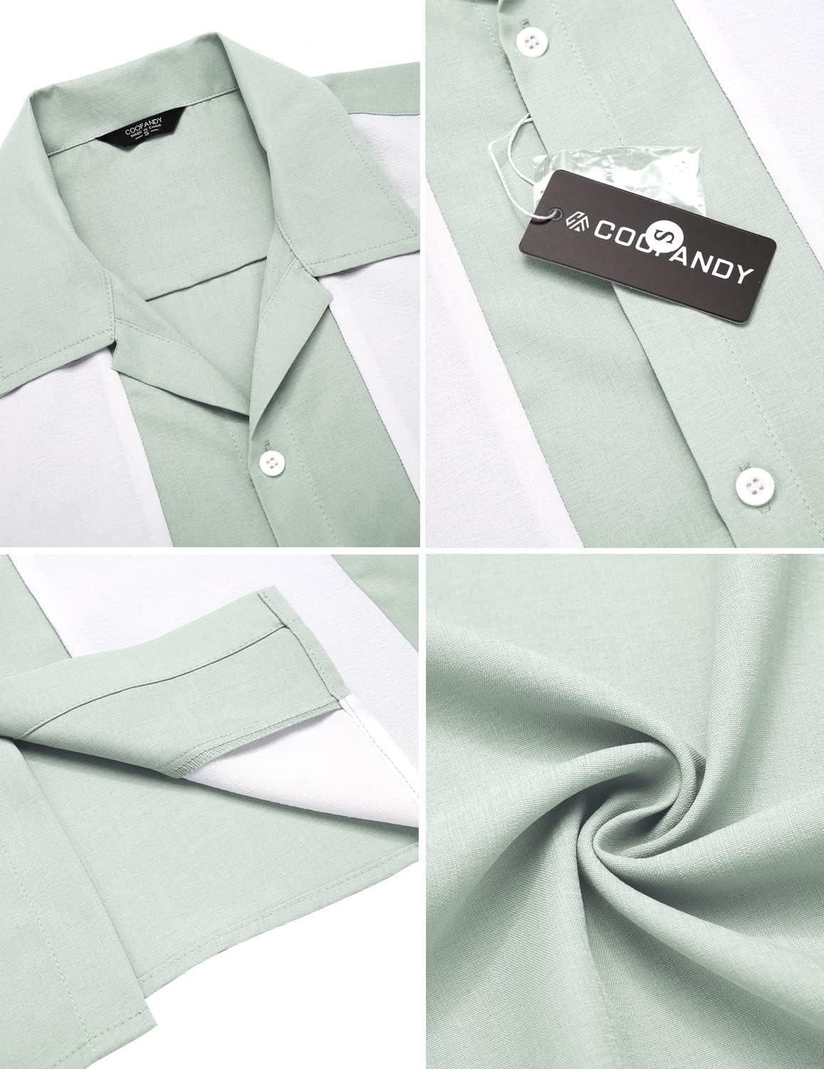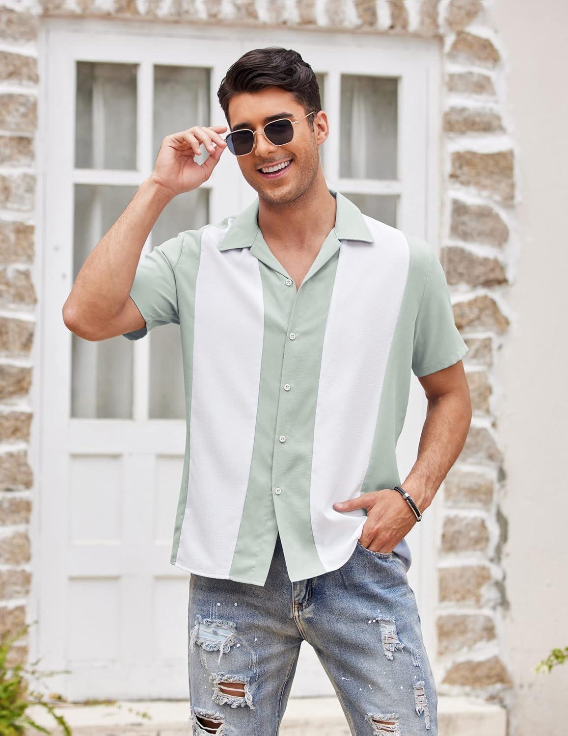 imageCOOFANDY Mens Vintage Bowling Shirt Short Sleeve Button Down Summer Cuba Beach ShirtsGreen White