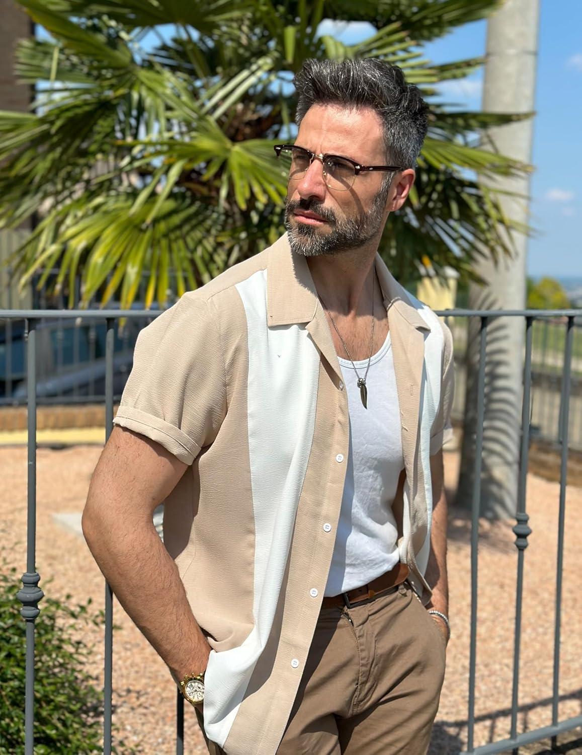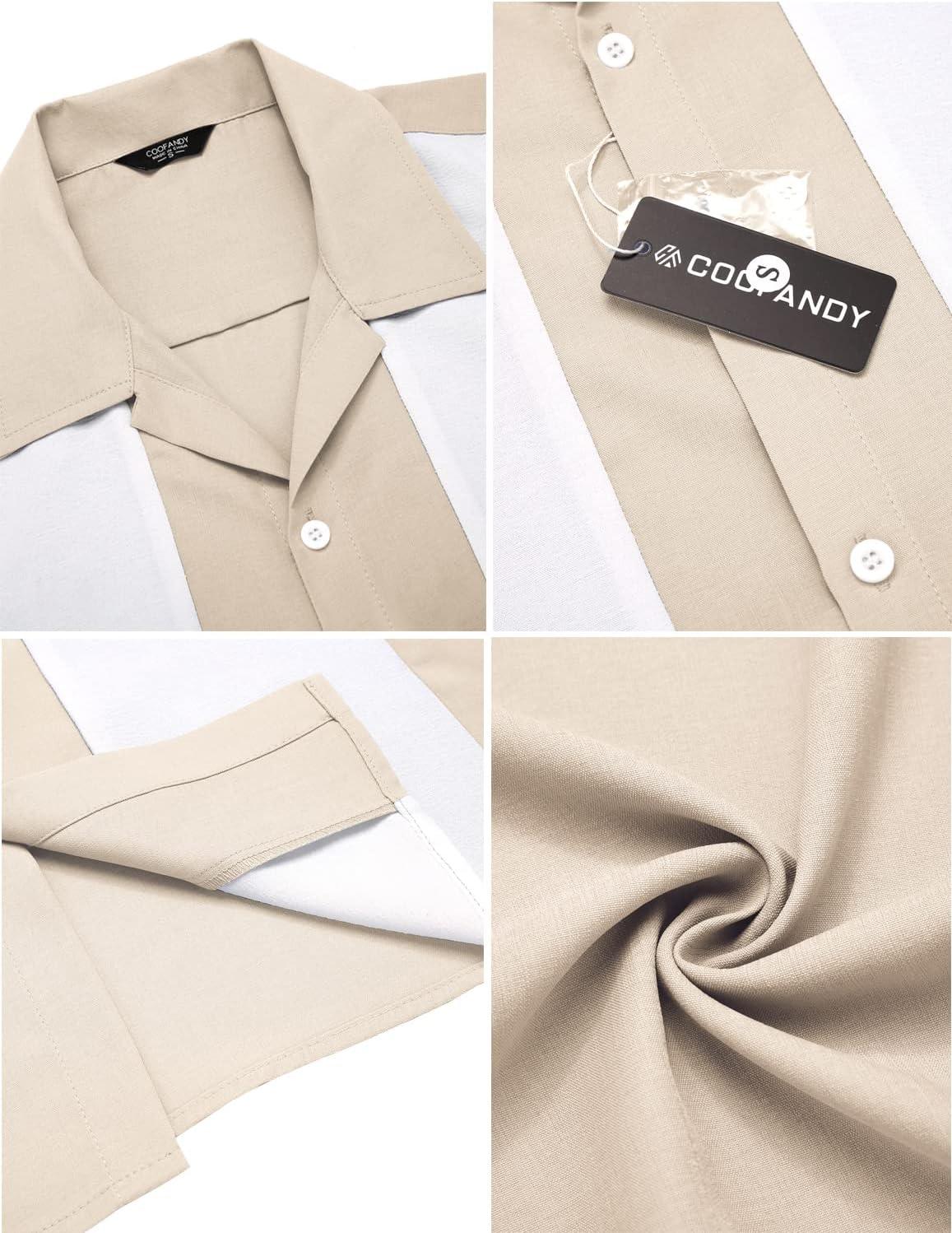 imageCOOFANDY Mens Vintage Bowling Shirt Short Sleeve Button Down Summer Cuba Beach ShirtsKhaki White