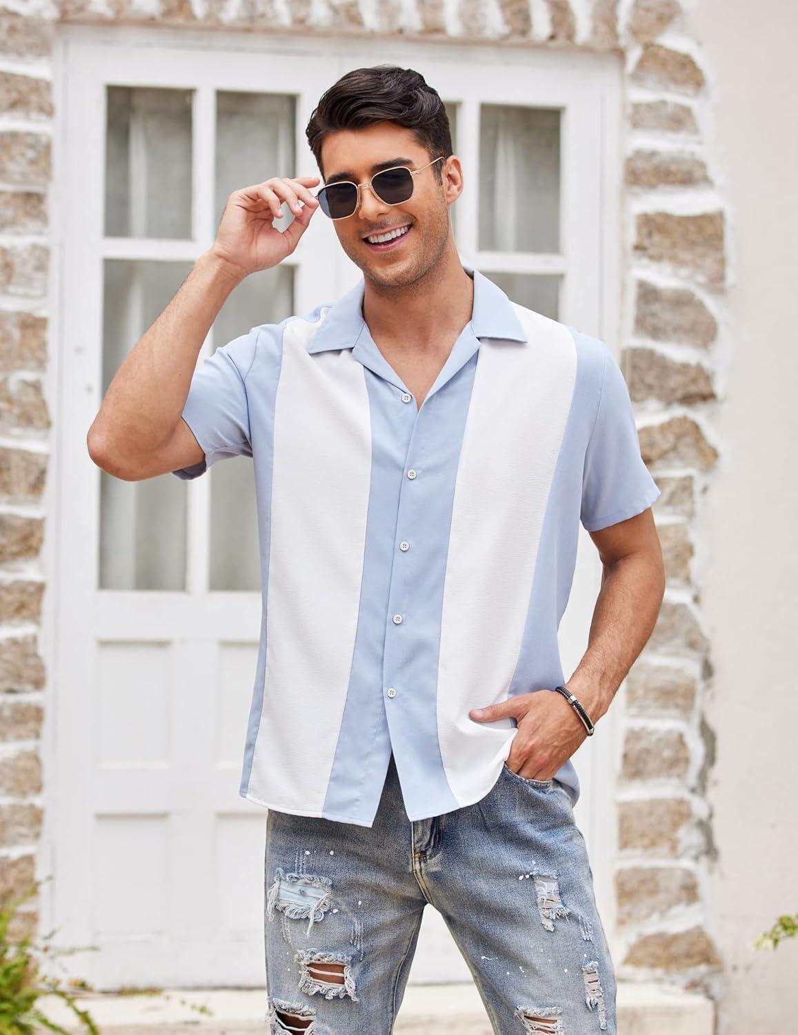 Get up to 70% off on COOFANDY Men’s Vintage Bowling Shirt Short Sleeve Button Down Summer Cuba Beach Shirts(Light Blue White) styles during our end-of-season clearance event.