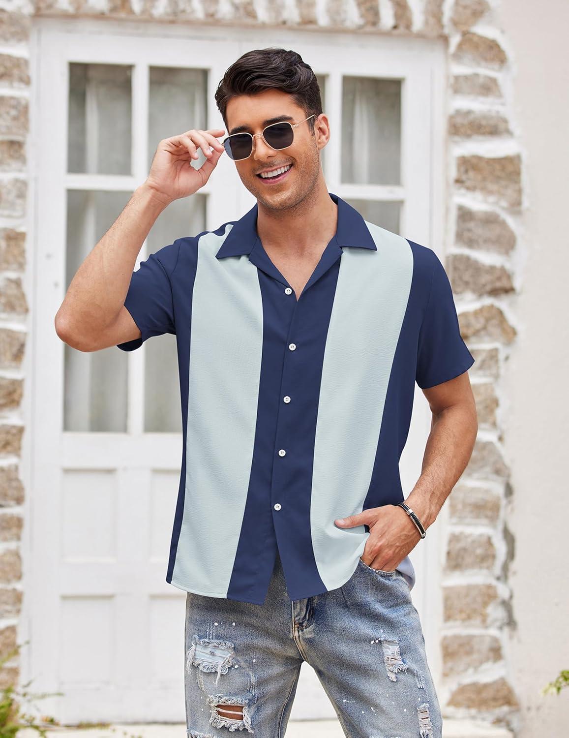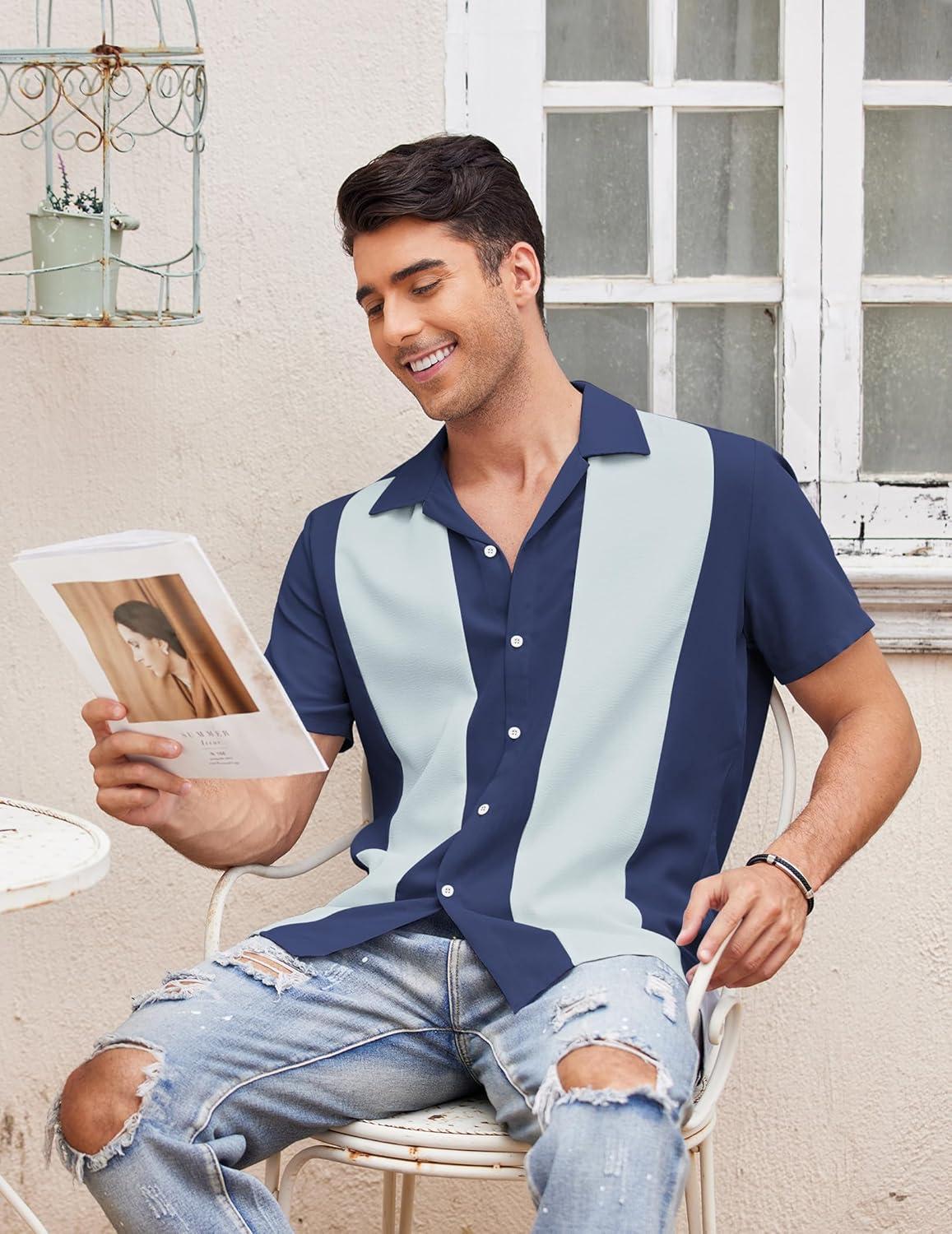 COOFANDY Men's Vintage Bowling Shirt 1950s Retro Short Sleeve Button Down Summer Beach Shirts