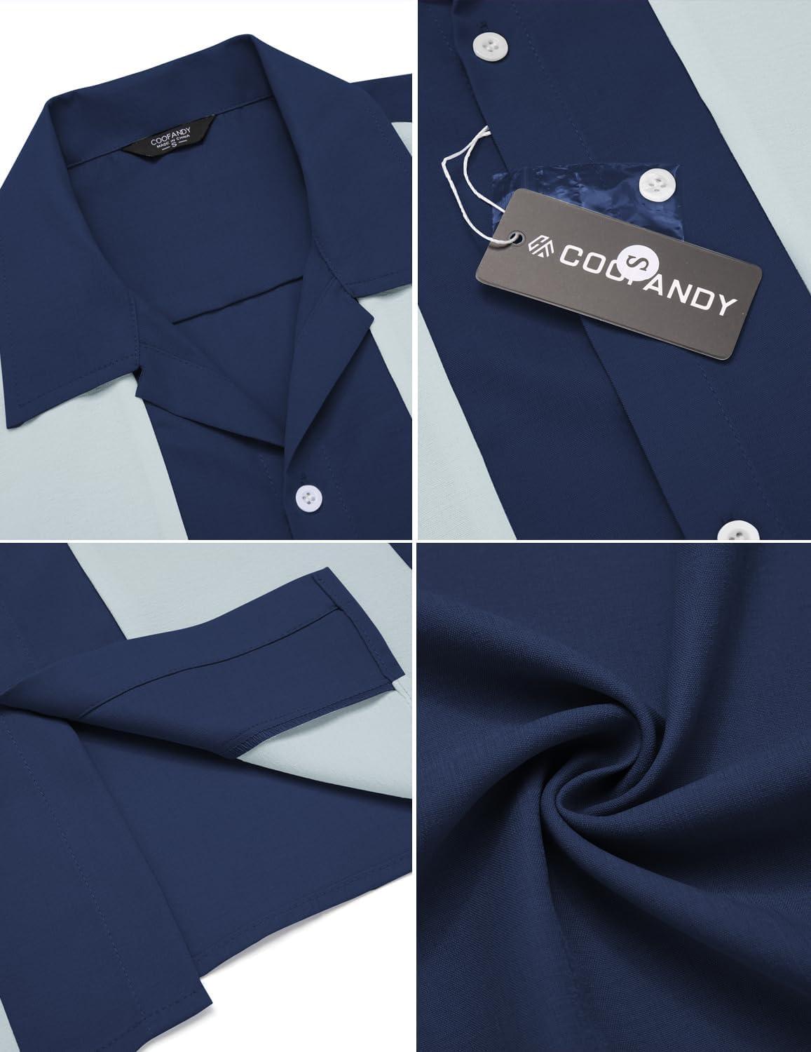 COOFANDY Men’s Vintage Bowling Shirt Short Sleeve Button Down Summer Cuba Beach Shirts(Navy Blue Light Blue)