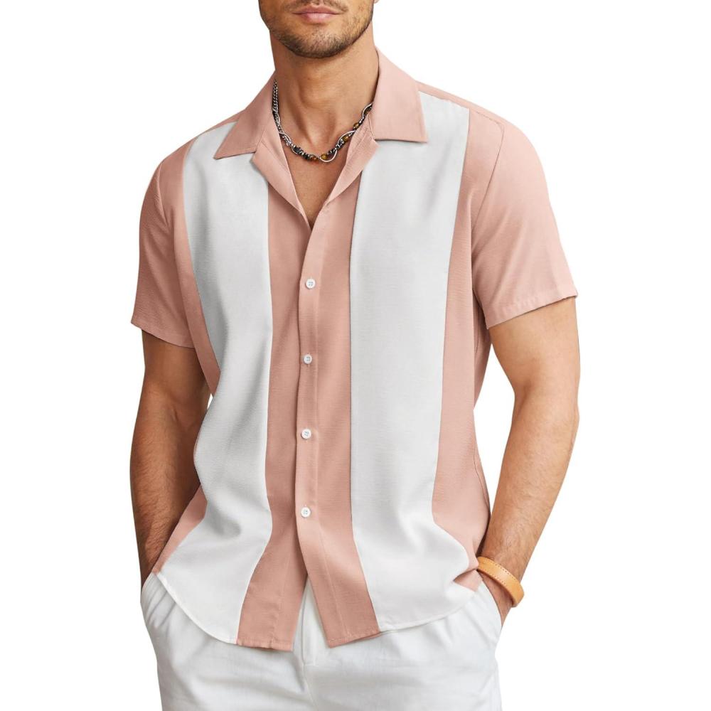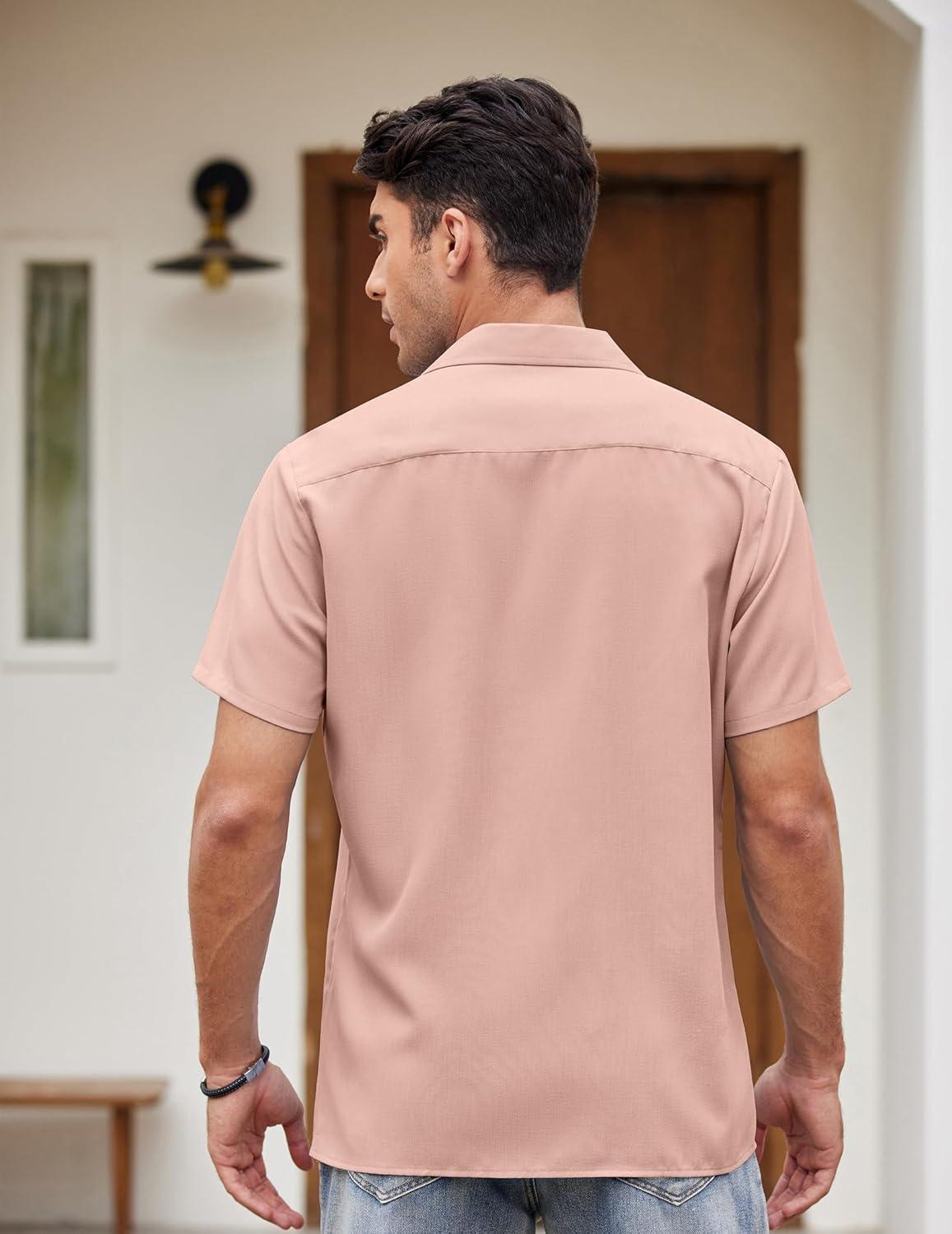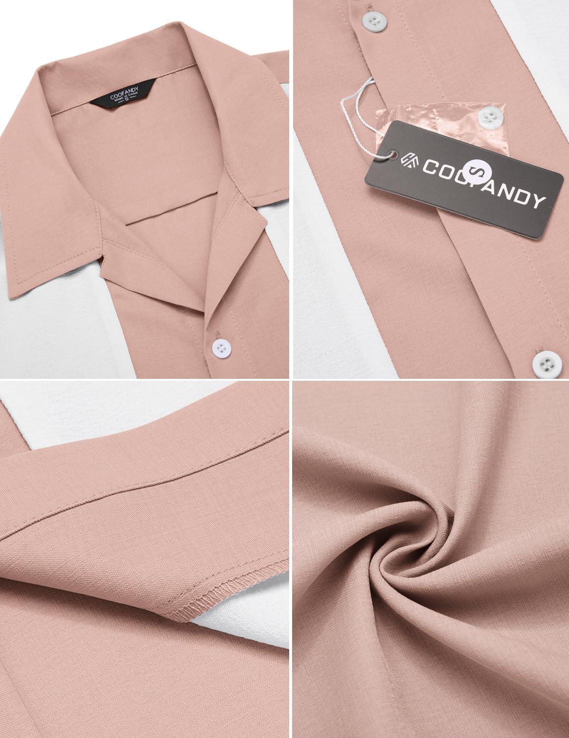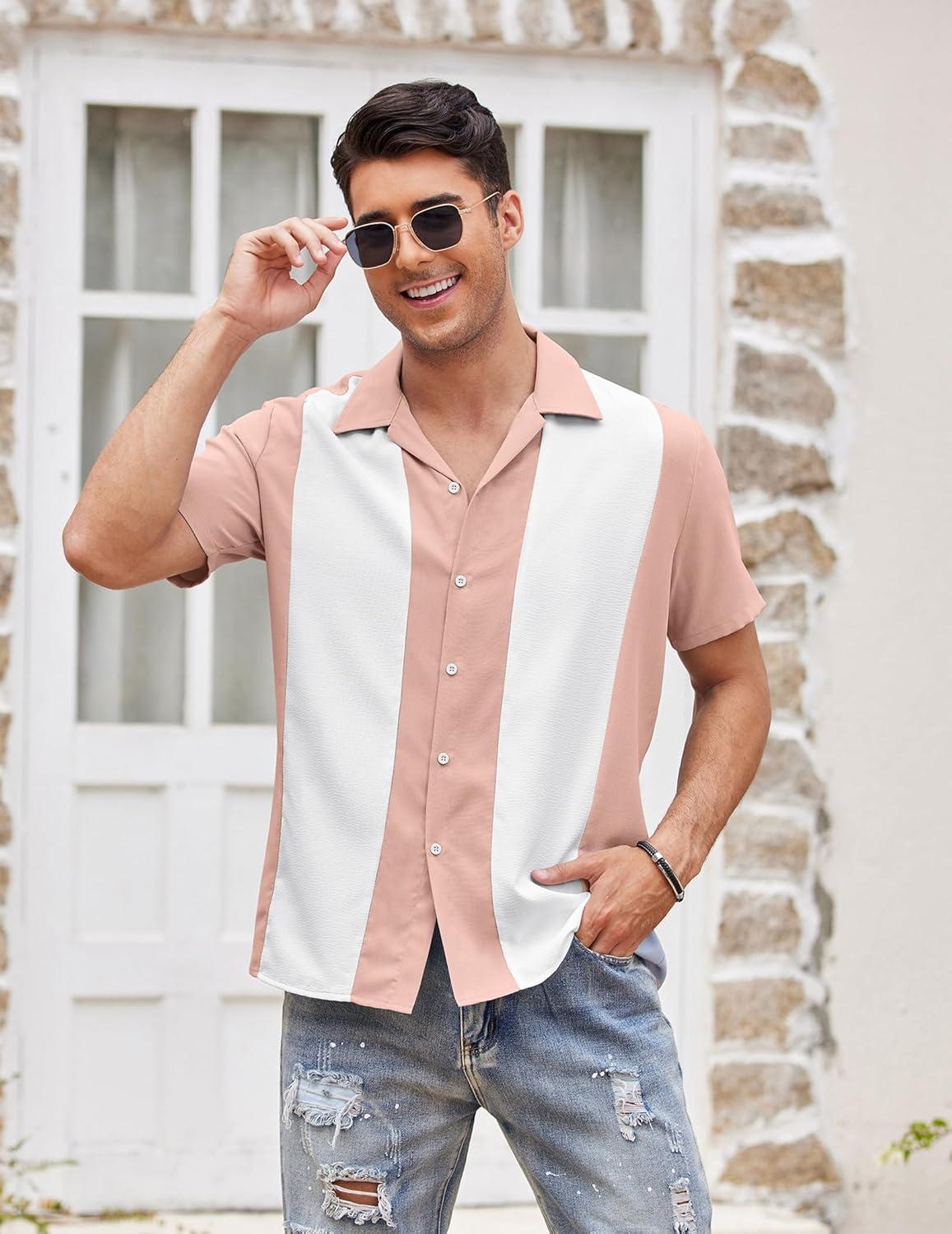 imageCOOFANDY Mens Vintage Bowling Shirt Short Sleeve Button Down Summer Cuba Beach ShirtsPink White