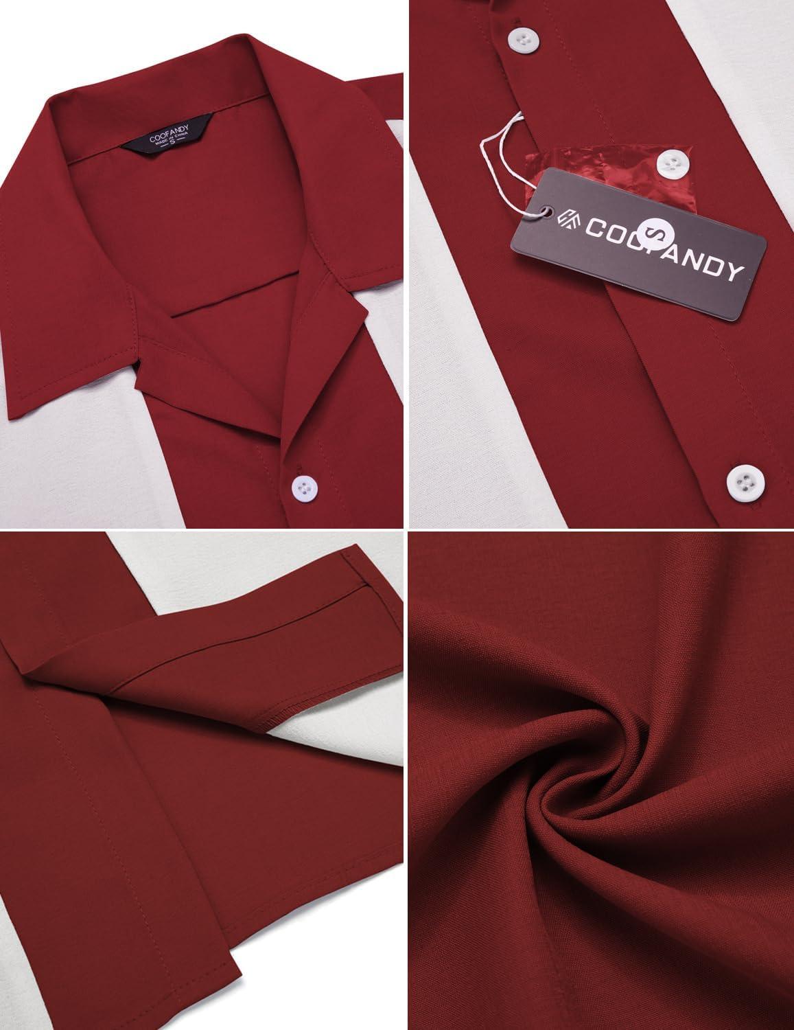 COOFANDY Men’s Vintage Bowling Shirt Short Sleeve Button Down Summer Cuba Beach Shirts(Wine Red White)