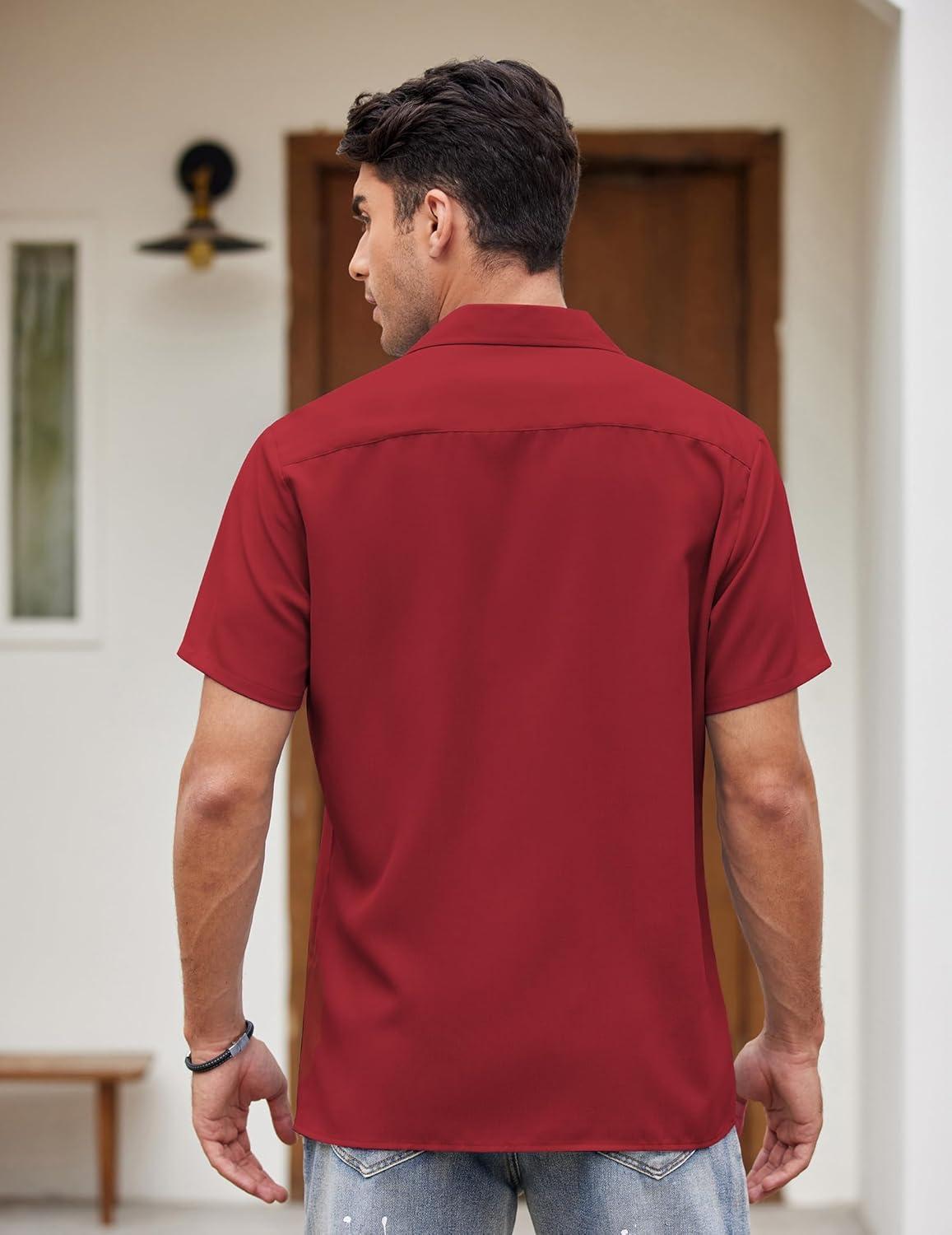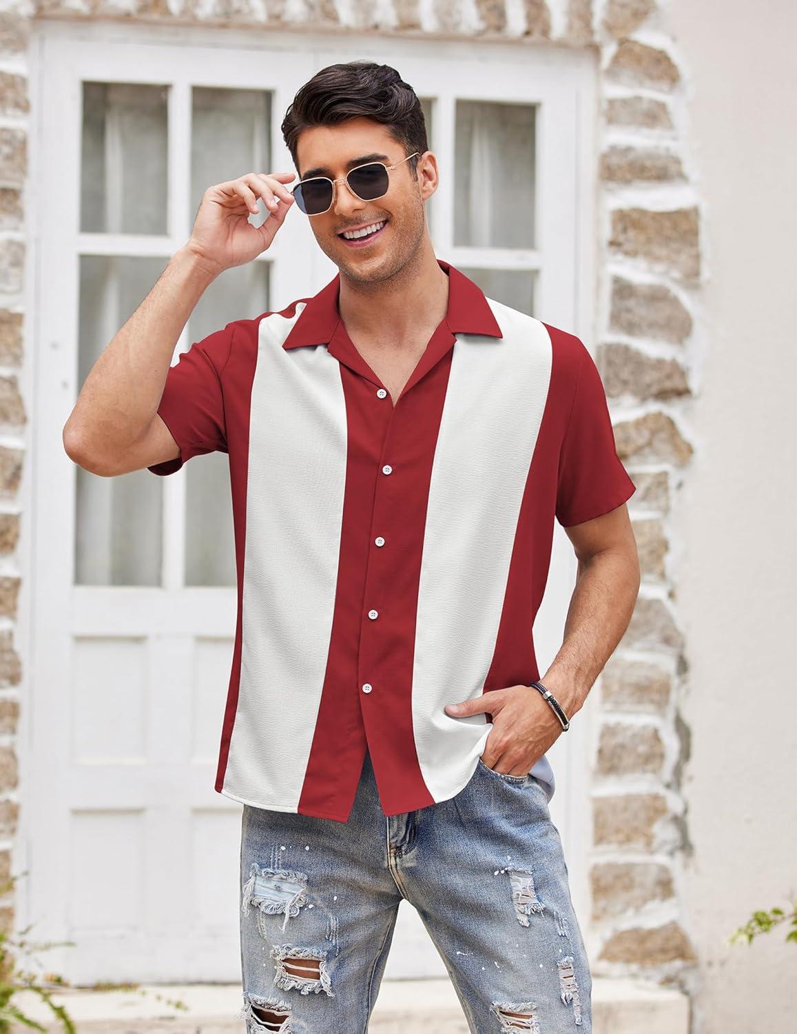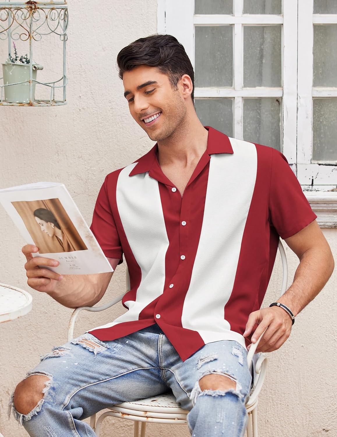 COOFANDY Men's Vintage Bowling Shirt 1950s Retro Short Sleeve Button Down Summer Beach Shirts