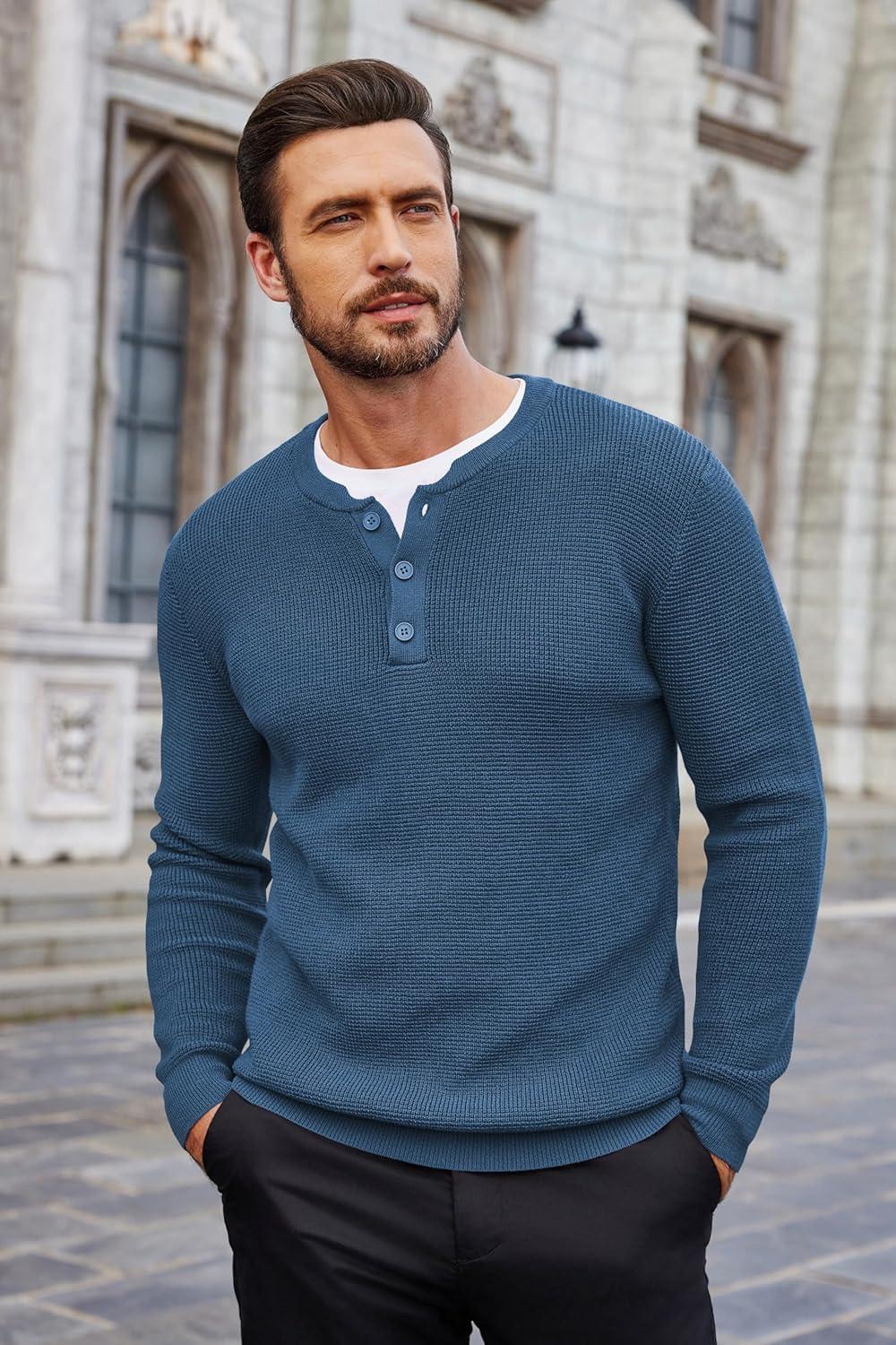 Save up to 40% on COOFANDY Men’s Waffle Henley Shirts Crewneck Lightweight Sweater Long Sleeve Causal Knitted Pullover T Shirt(Dark Blue) styles during our end-of-season sale.