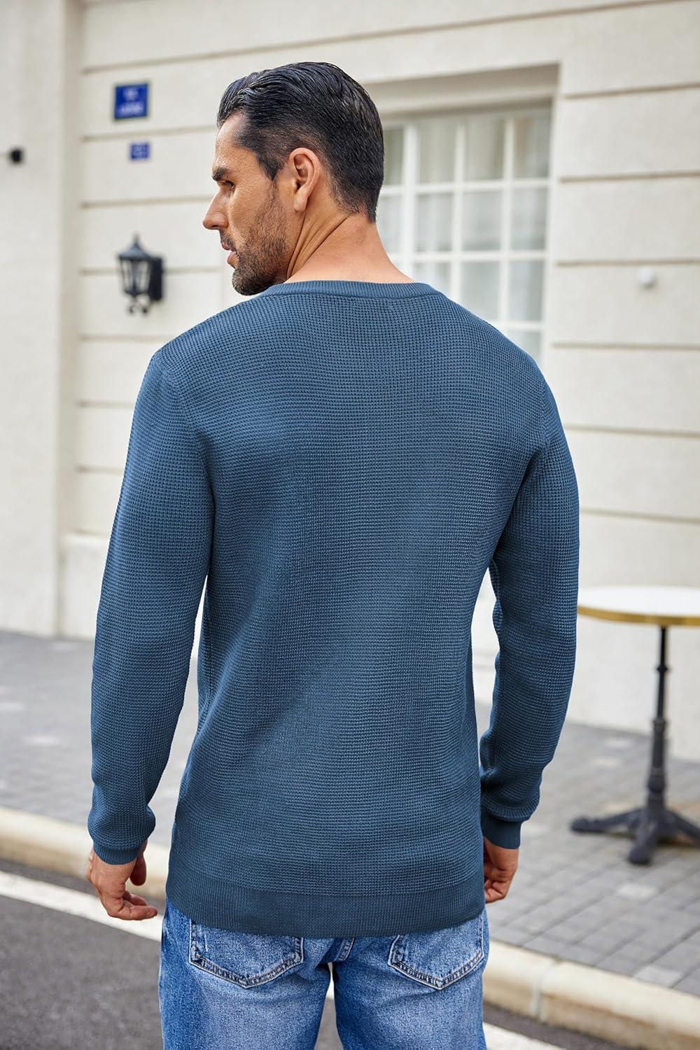 COOFANDY Men's Waffle Henley Shirts Crewneck Lightweight Sweater Long Sleeve Causal Knitted Pullover T Shirt(Dark Blue)