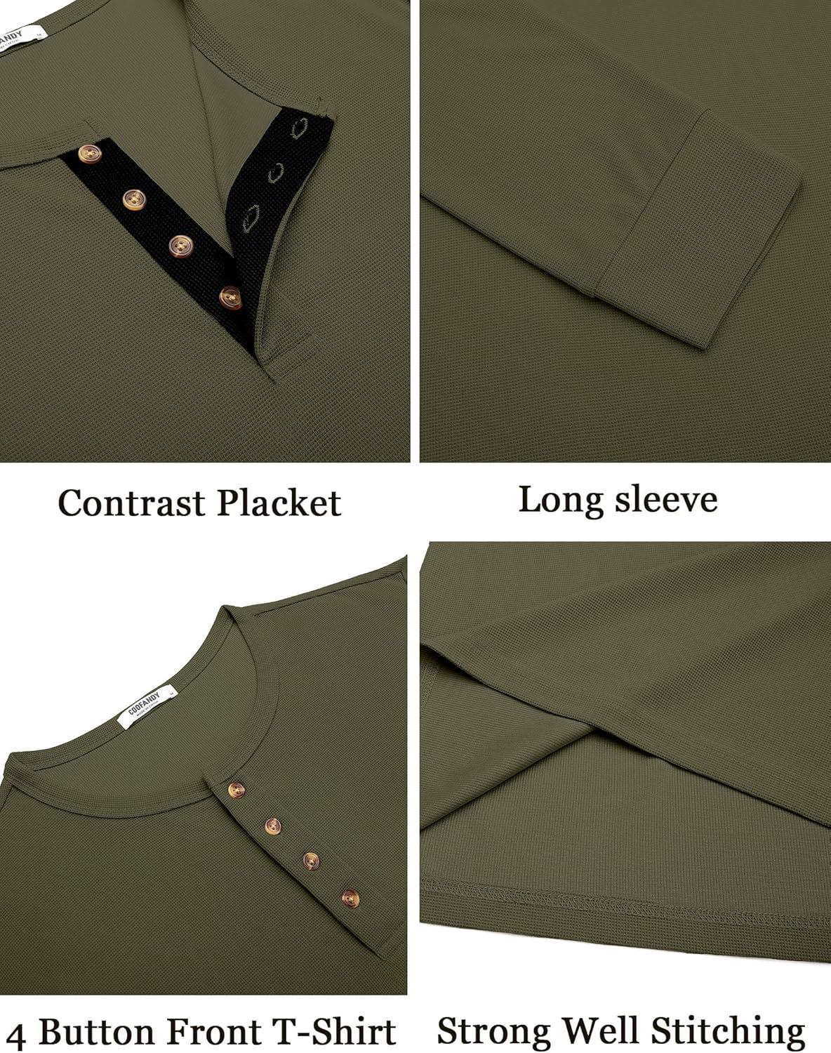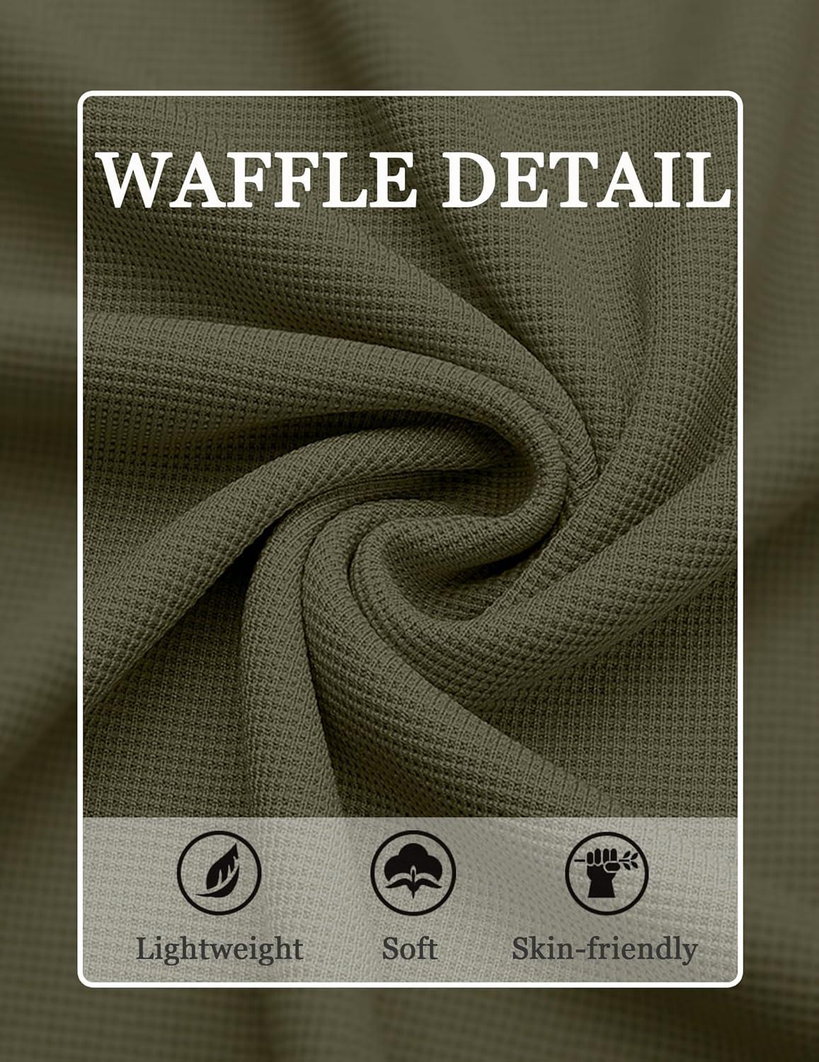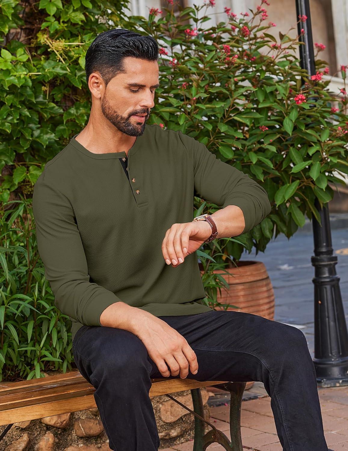 COOFANDY Mens Waffle Henley Shirts Long Sleeve Casual T-Shirt Basic Lightweight Pullover Tees(Army Green)