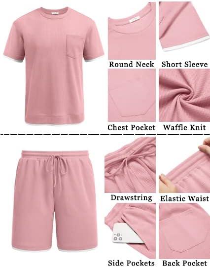 imageCOOFANDY Mens Waffle Shirt and Shorts Set 2 Piece Outfits Casual Summer Tracksuits Set with PocketsPink