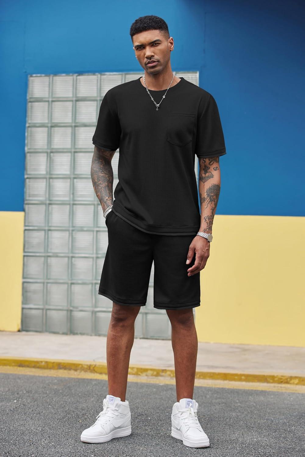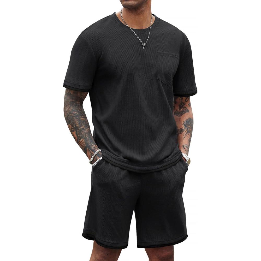 Be the first to review “COOFANDY Men’s Waffle Shirt and Shorts Set 2 Piece Outfits Casual Summer Tracksuits Set with Pockets(Pure Black)”